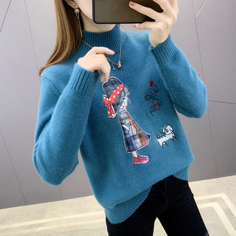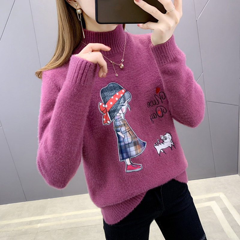 Бархатный утепленный удерживающий тепло трикотажный демисезонный базовый приятный телу свитер, коллекция 2021, высокий воротник
