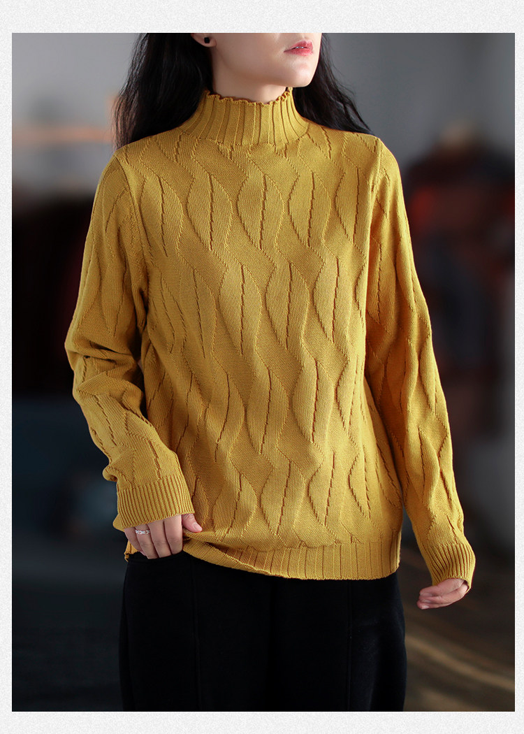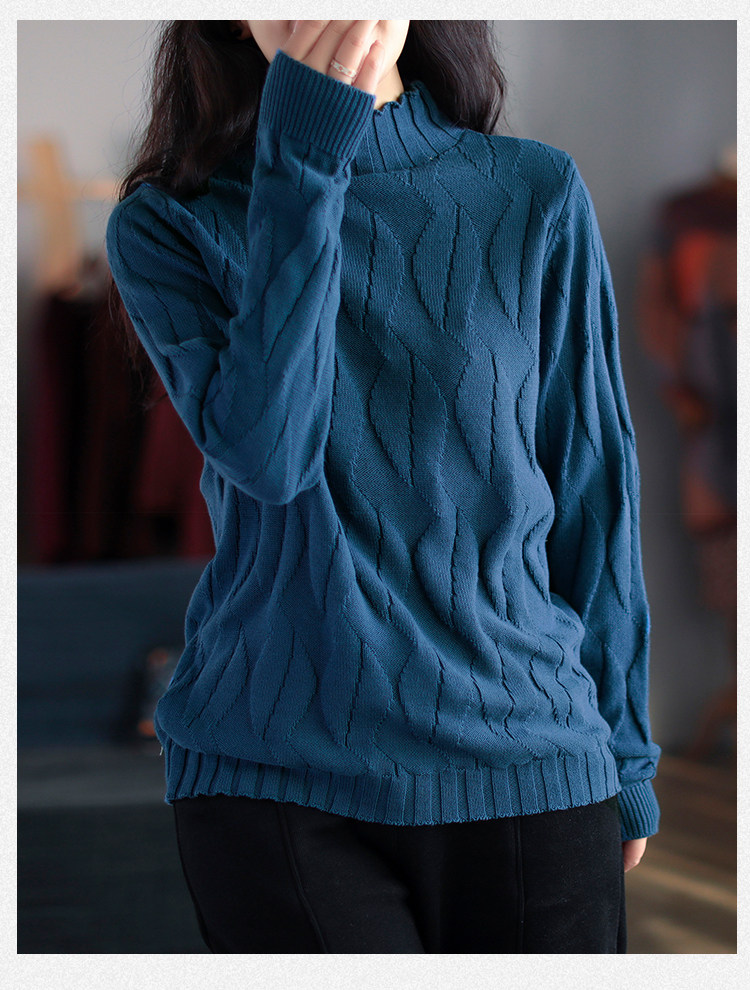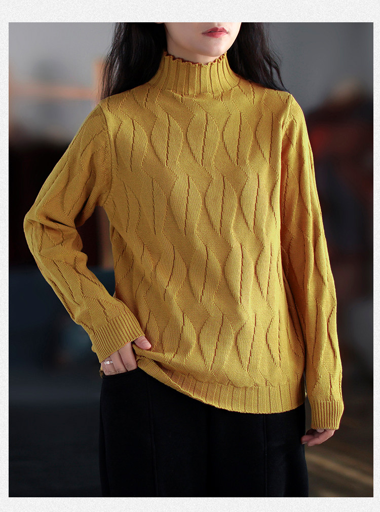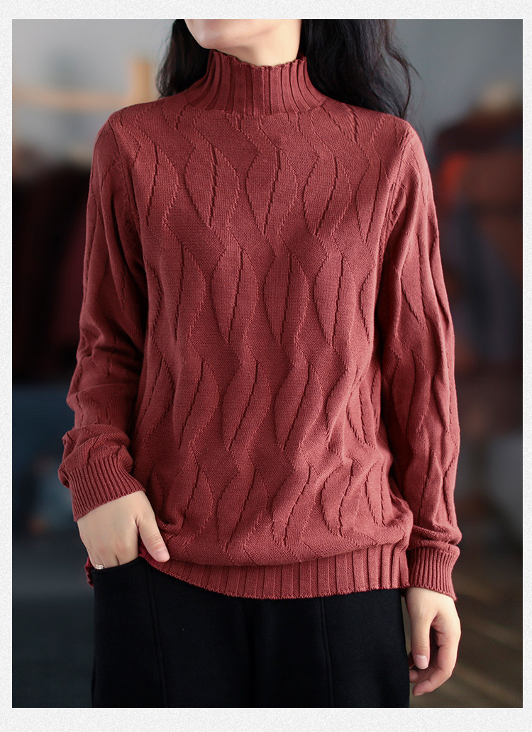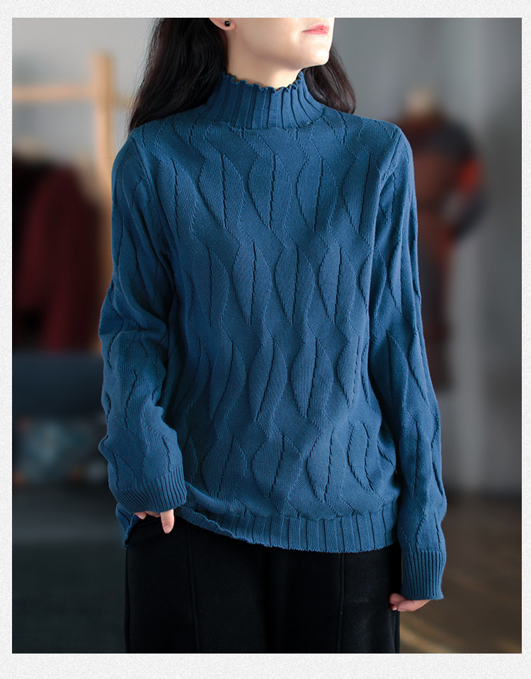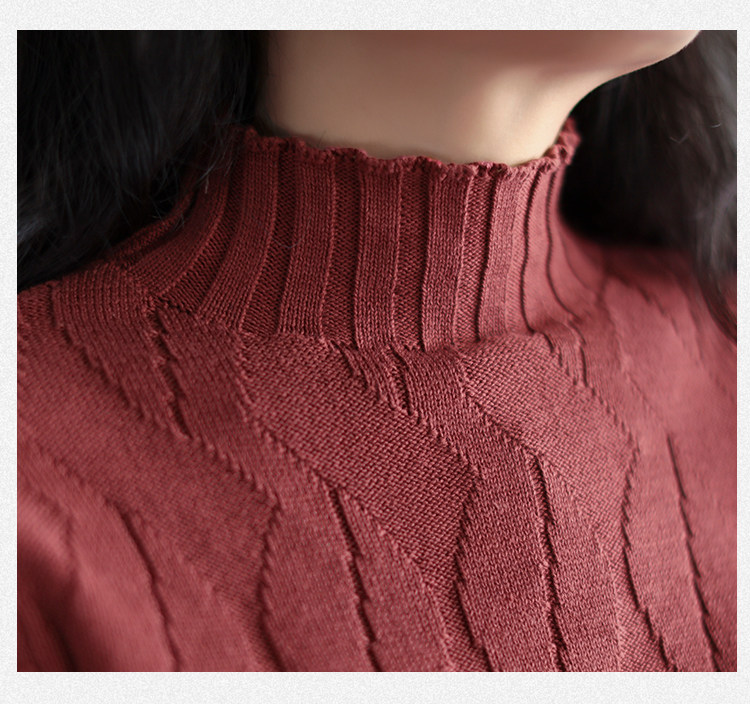 Зимний ретро хлопковый трикотажный свитер, высокий воротник