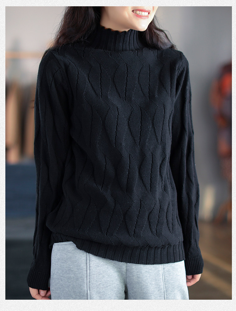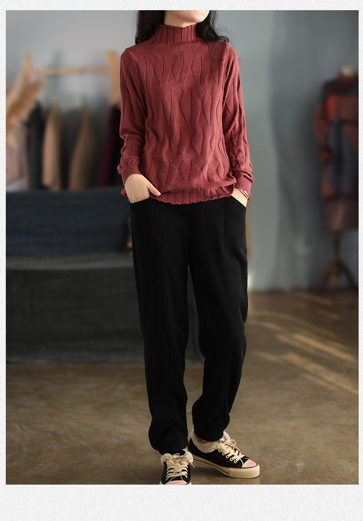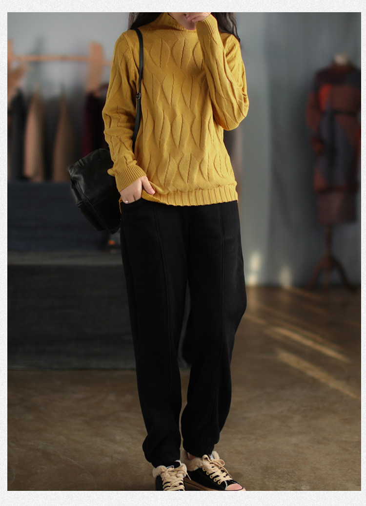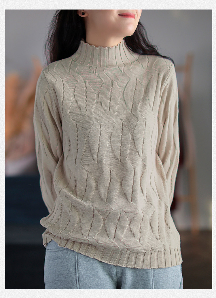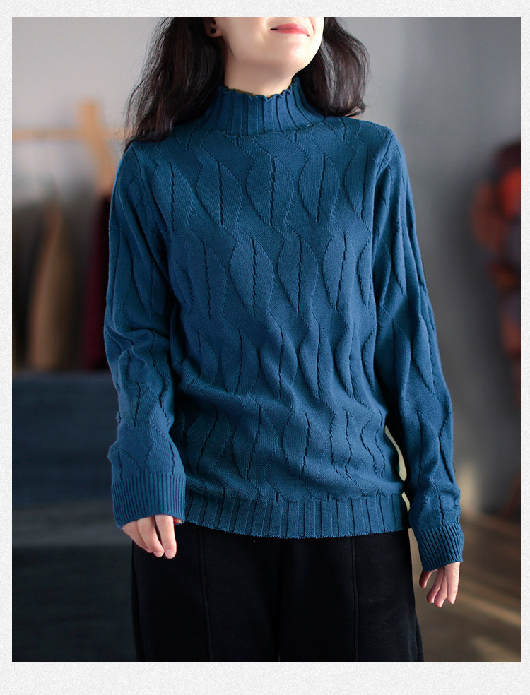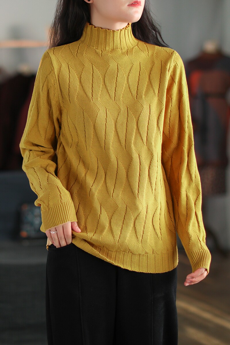 Зимний ретро хлопковый трикотажный свитер, высокий воротник