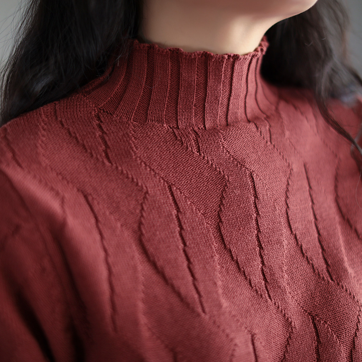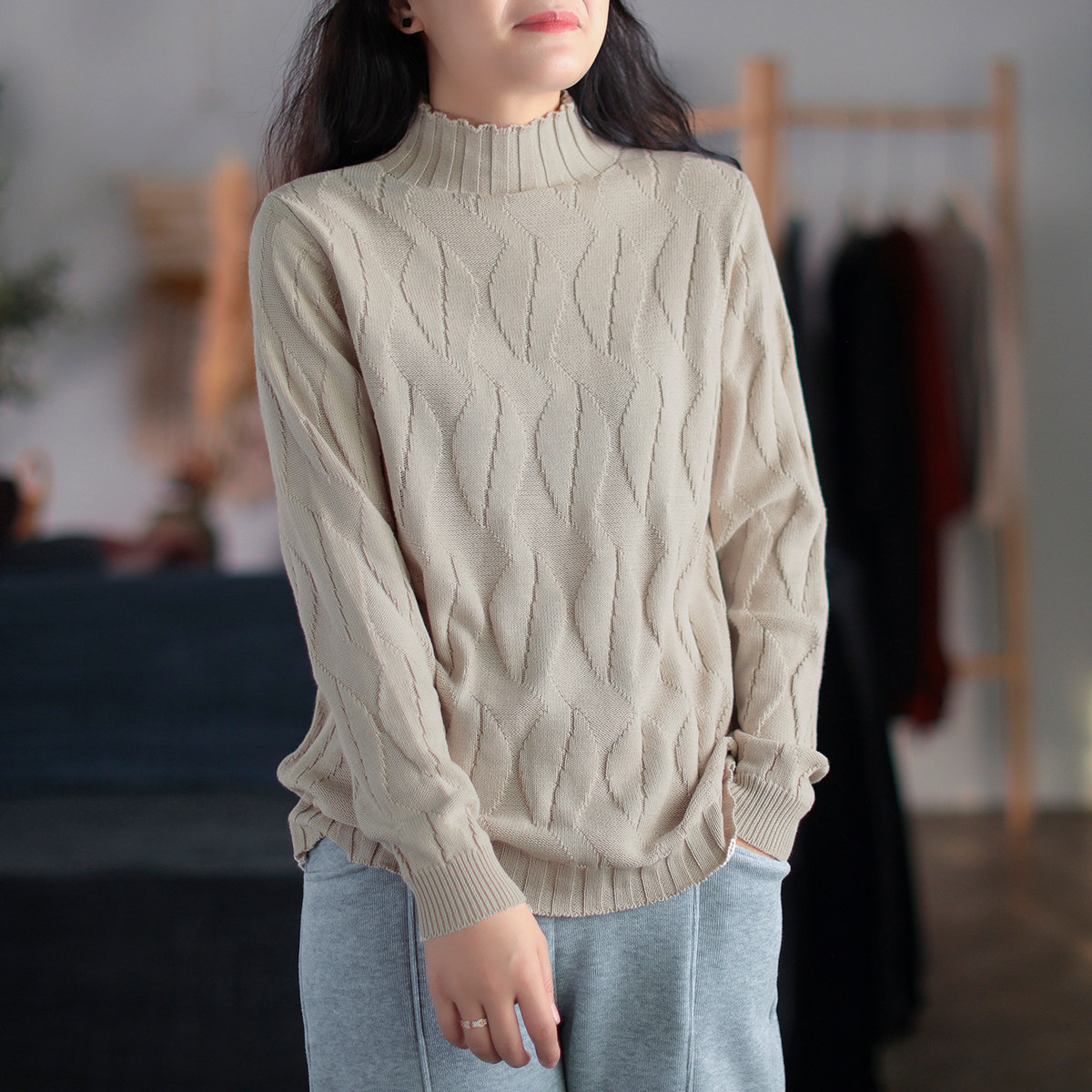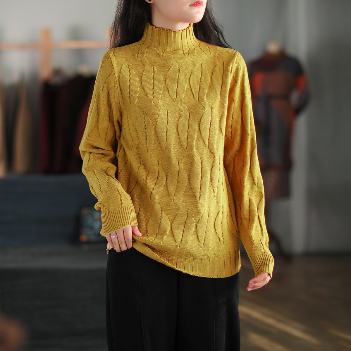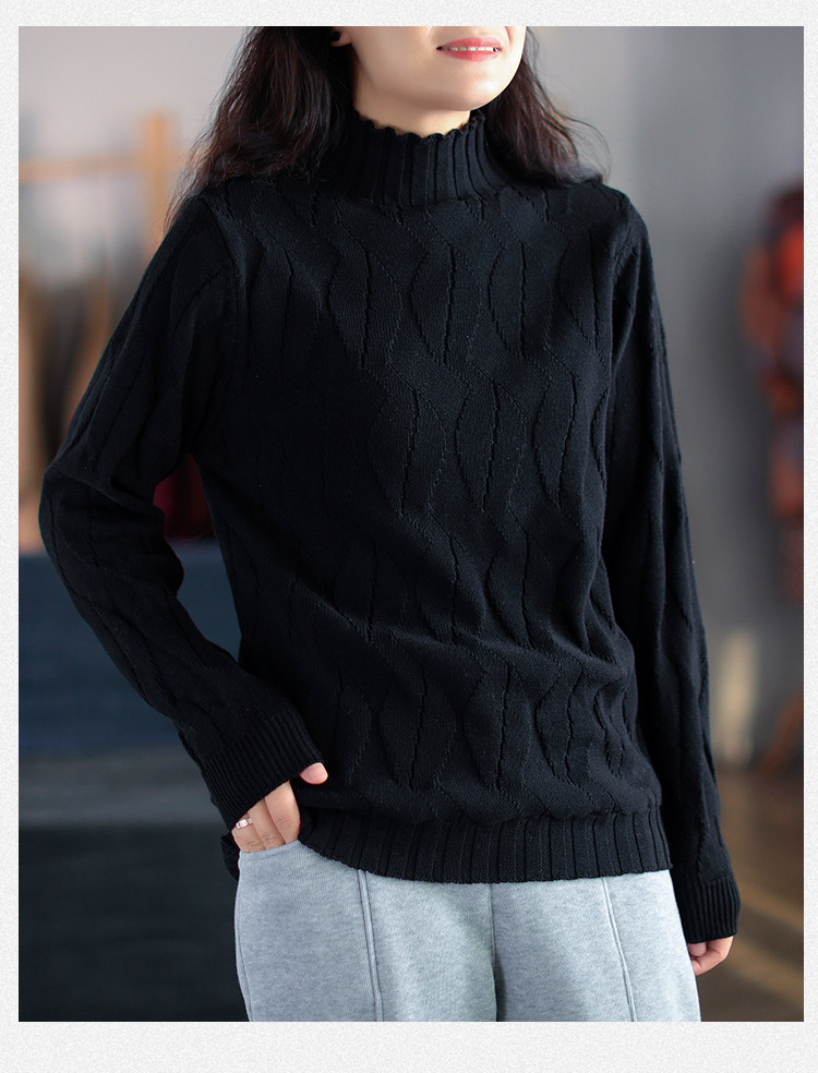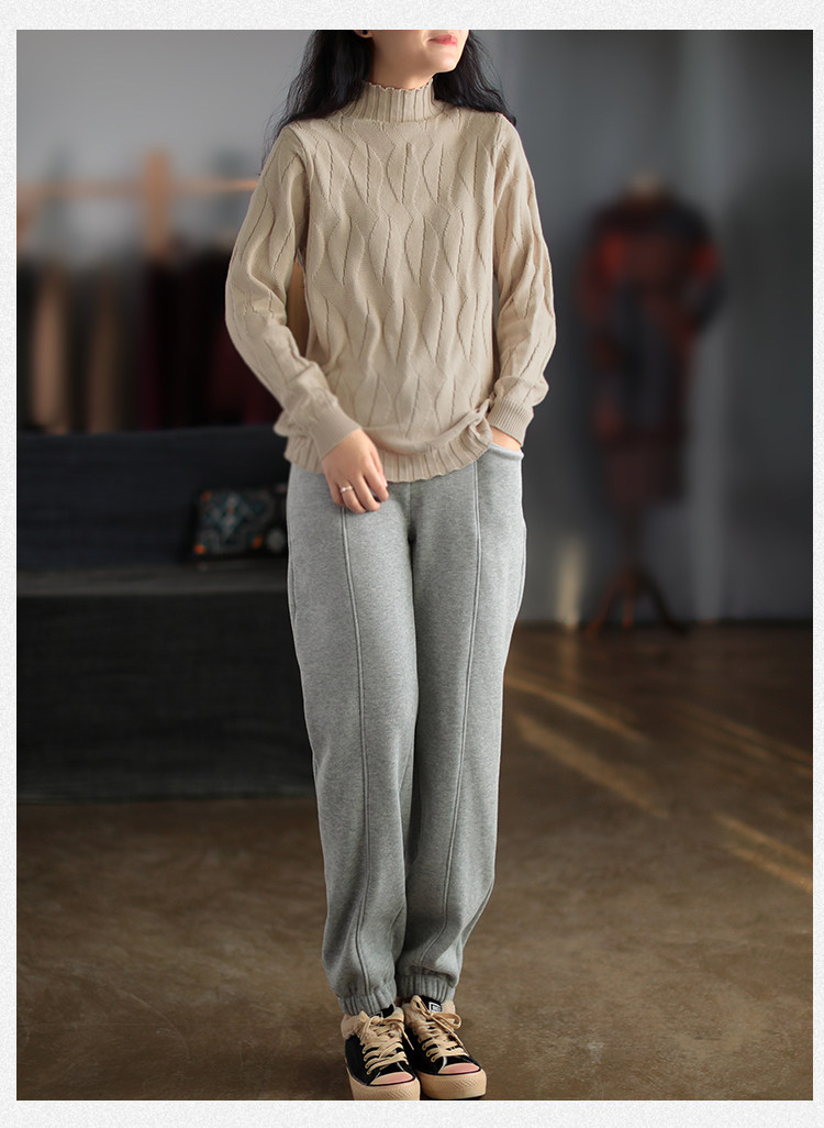 Зимний ретро хлопковый трикотажный свитер, высокий воротник