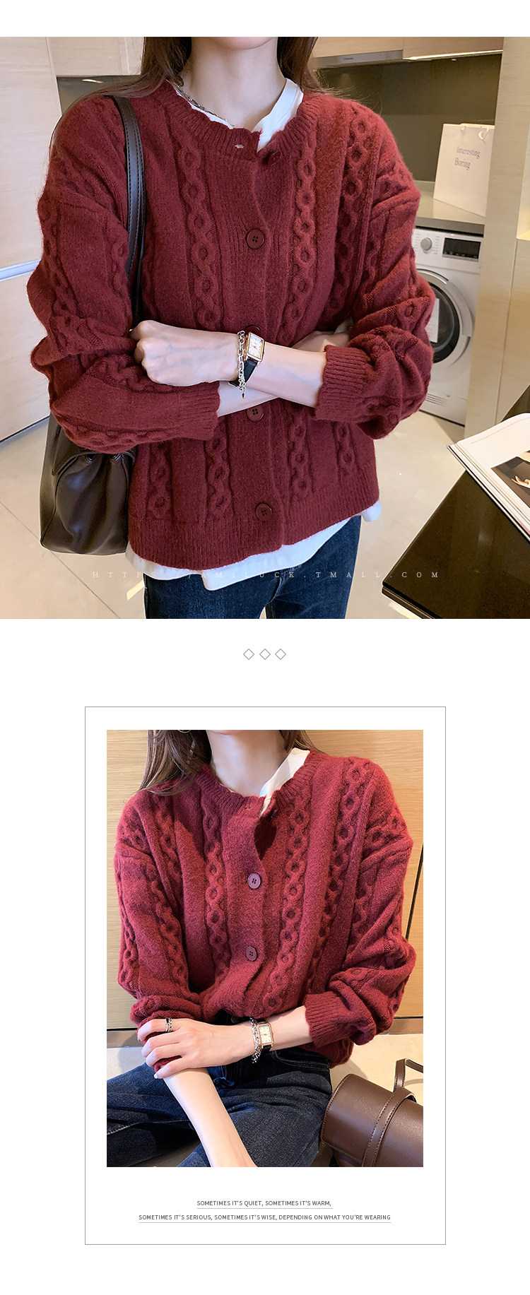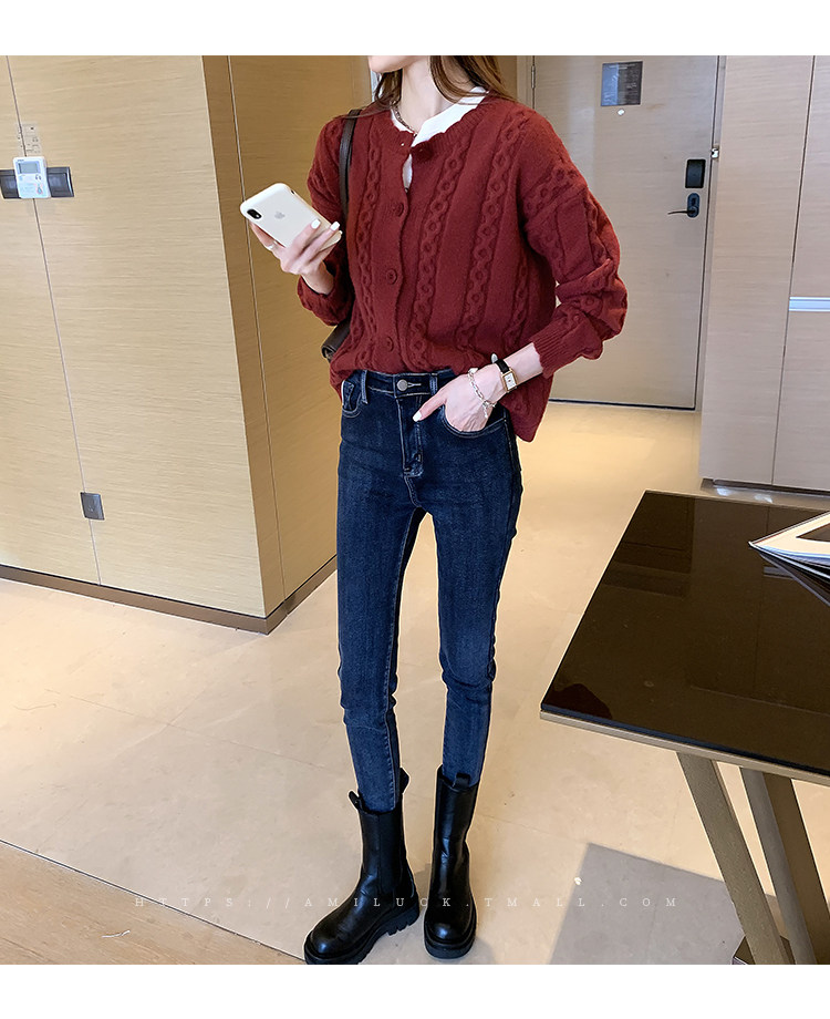 Красный осенний ретро свитер, трикотажный кардиган, коллекция 2021, оверсайз