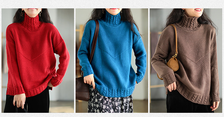 Зимний ретро свитер, трикотажный лонгслив, свободный крой