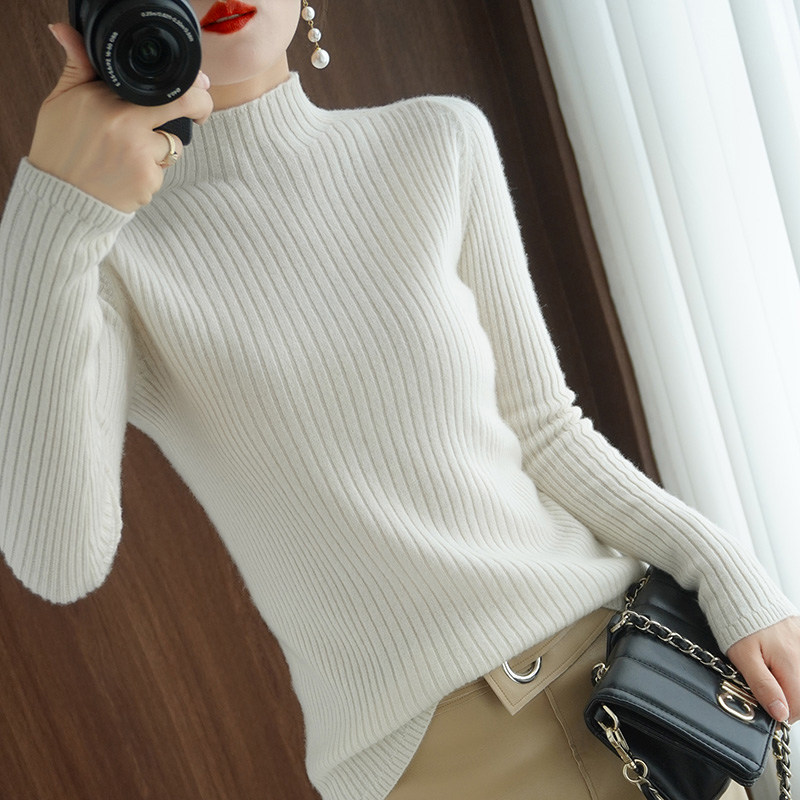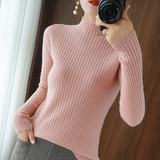 Демисезонный базовый приятный телу черный трикотажный свитер, в западном стиле, высокий воротник, облегающий крой
