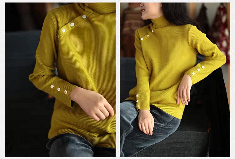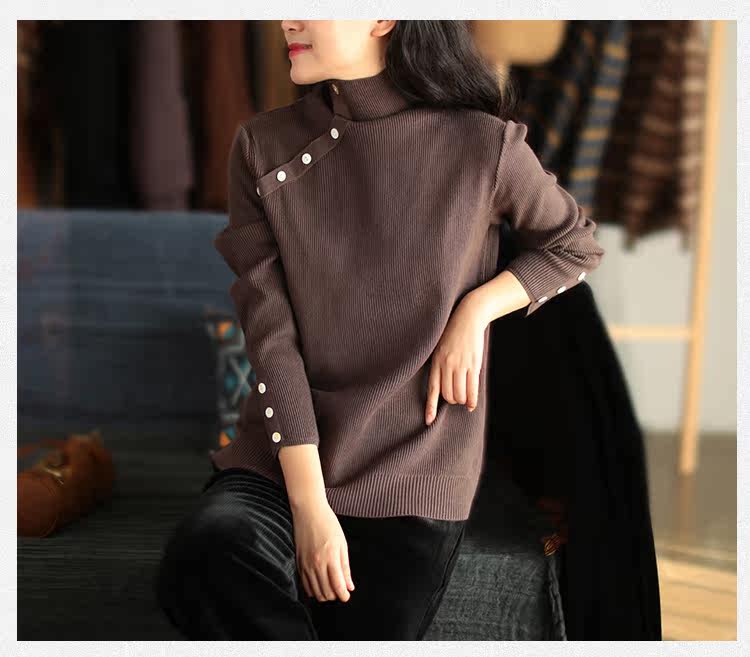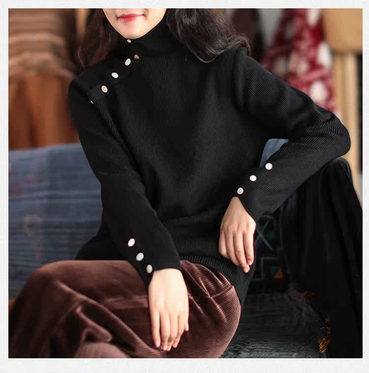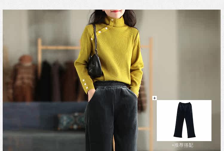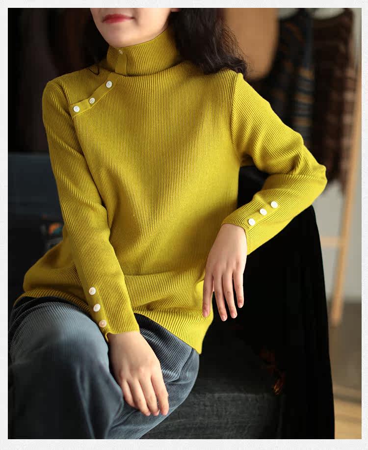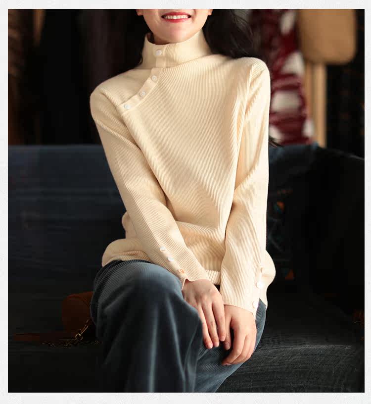 Зимний ретро трикотажный свитер, высокий воротник