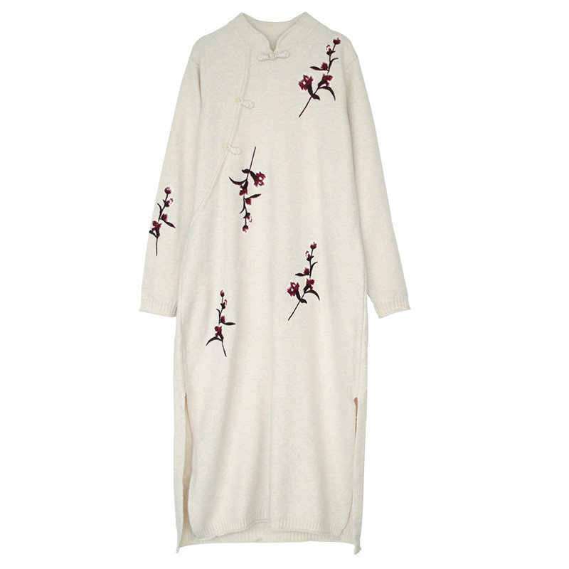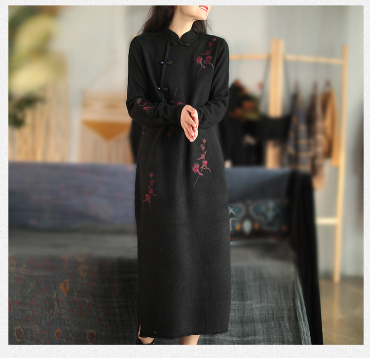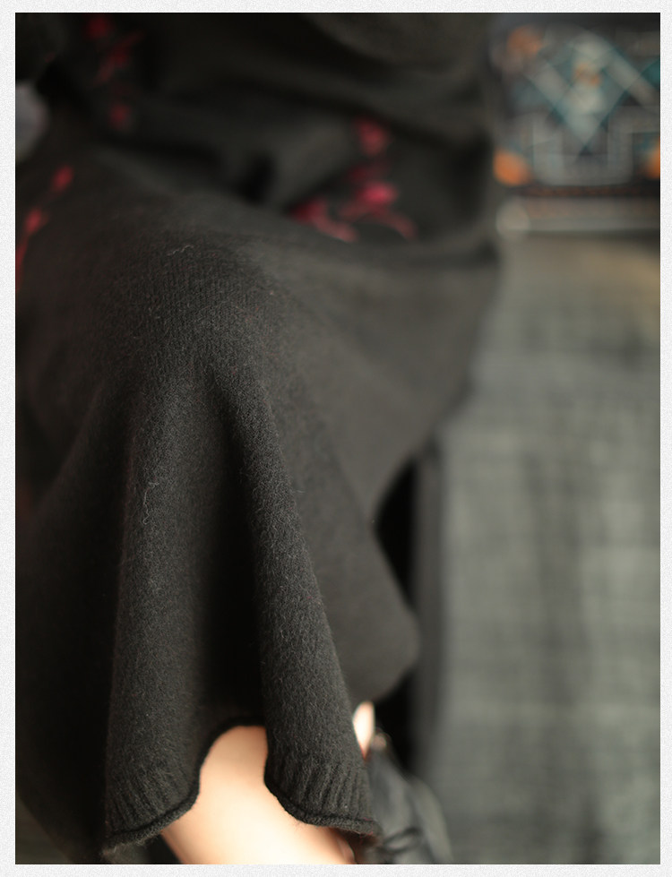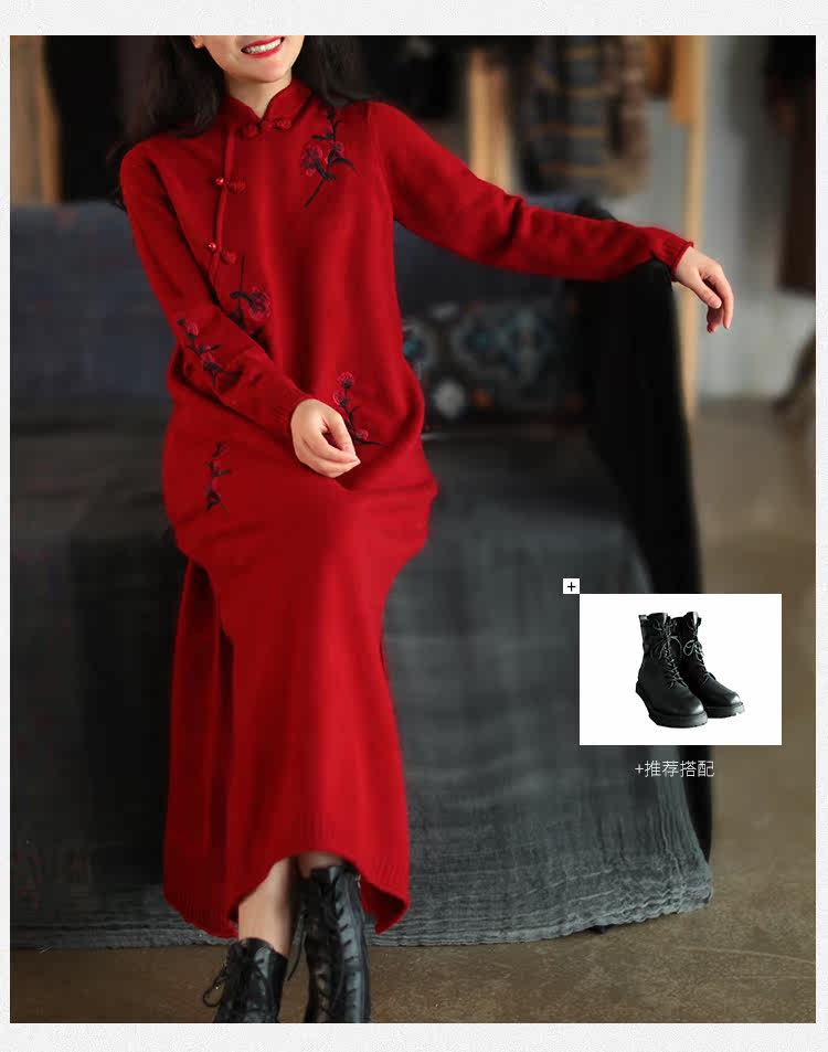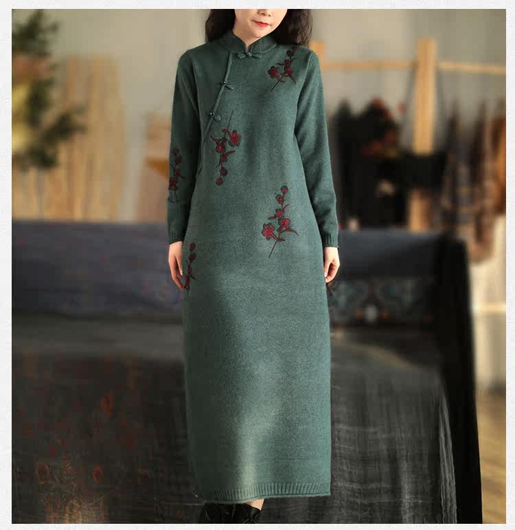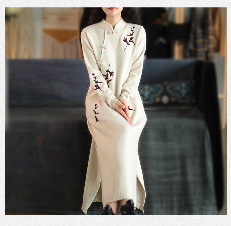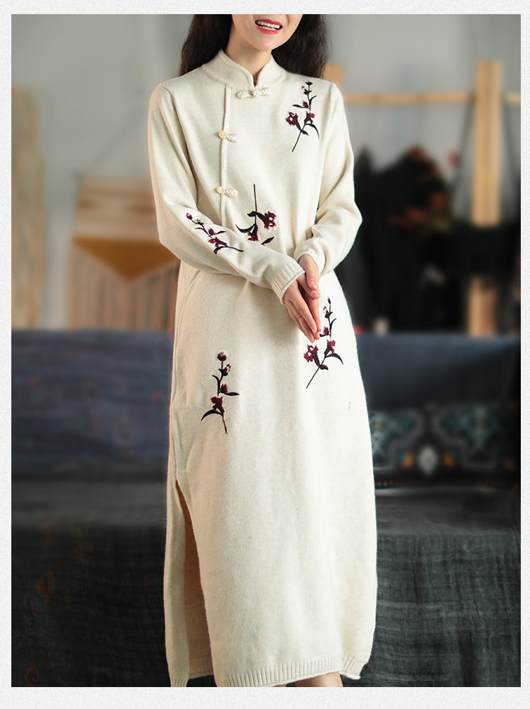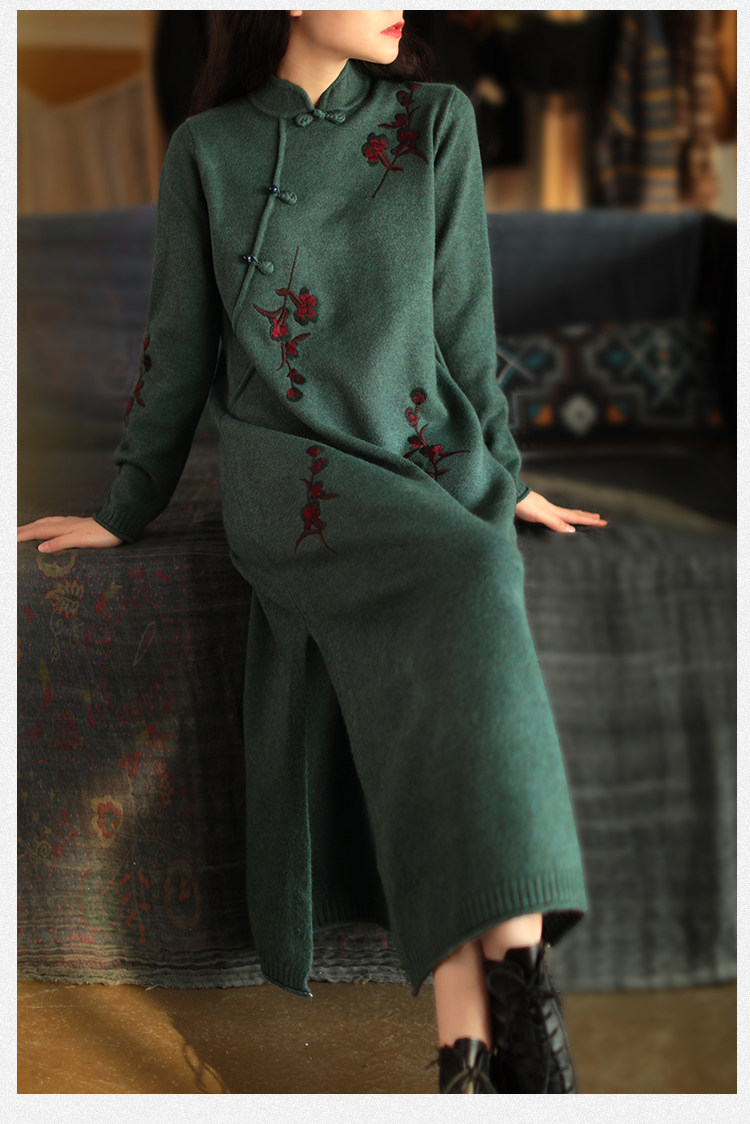Шерстяной зимний ретро длинный трикотажный свитер, с вышивкой