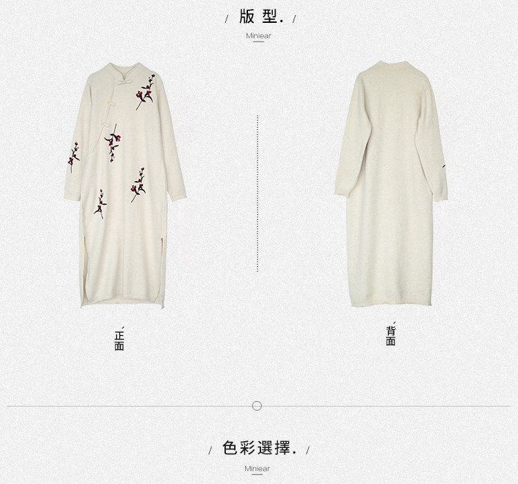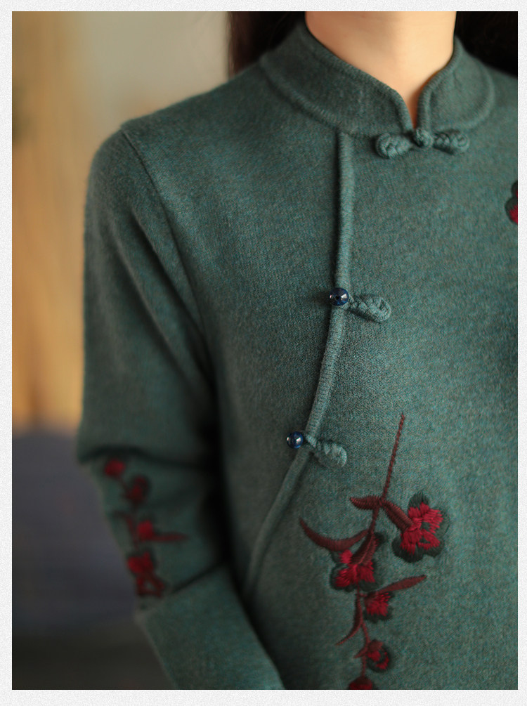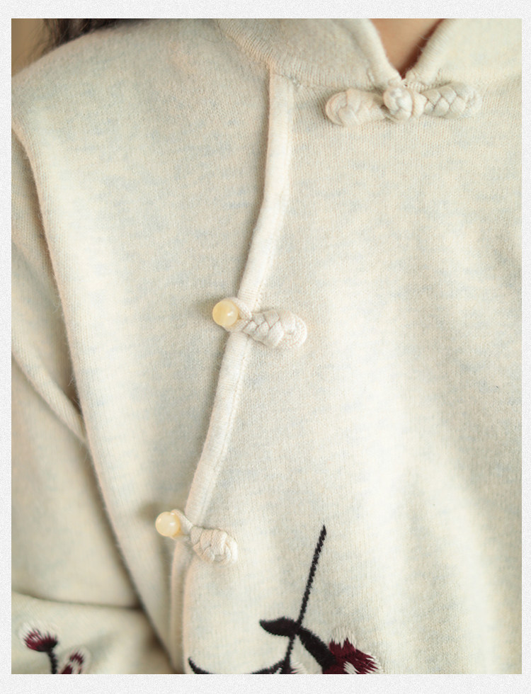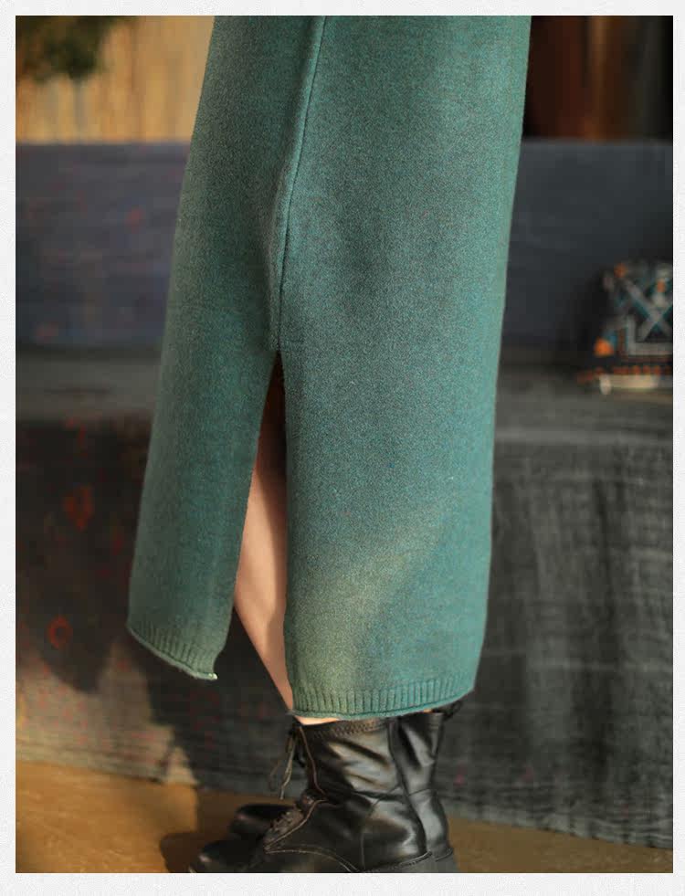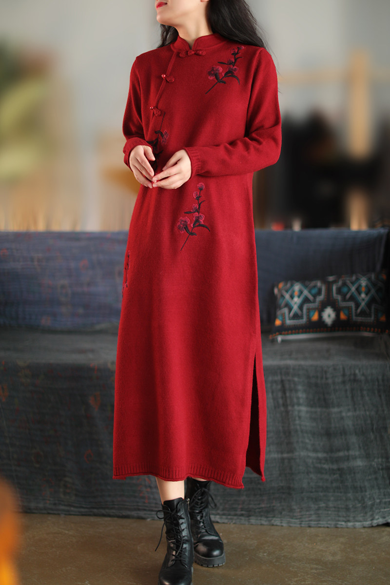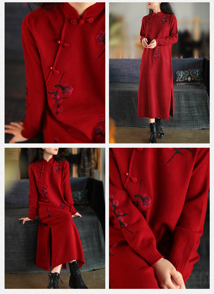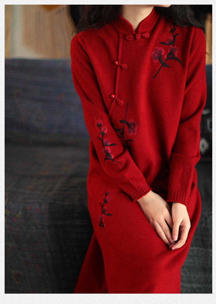 Шерстяной зимний ретро длинный трикотажный свитер, с вышивкой