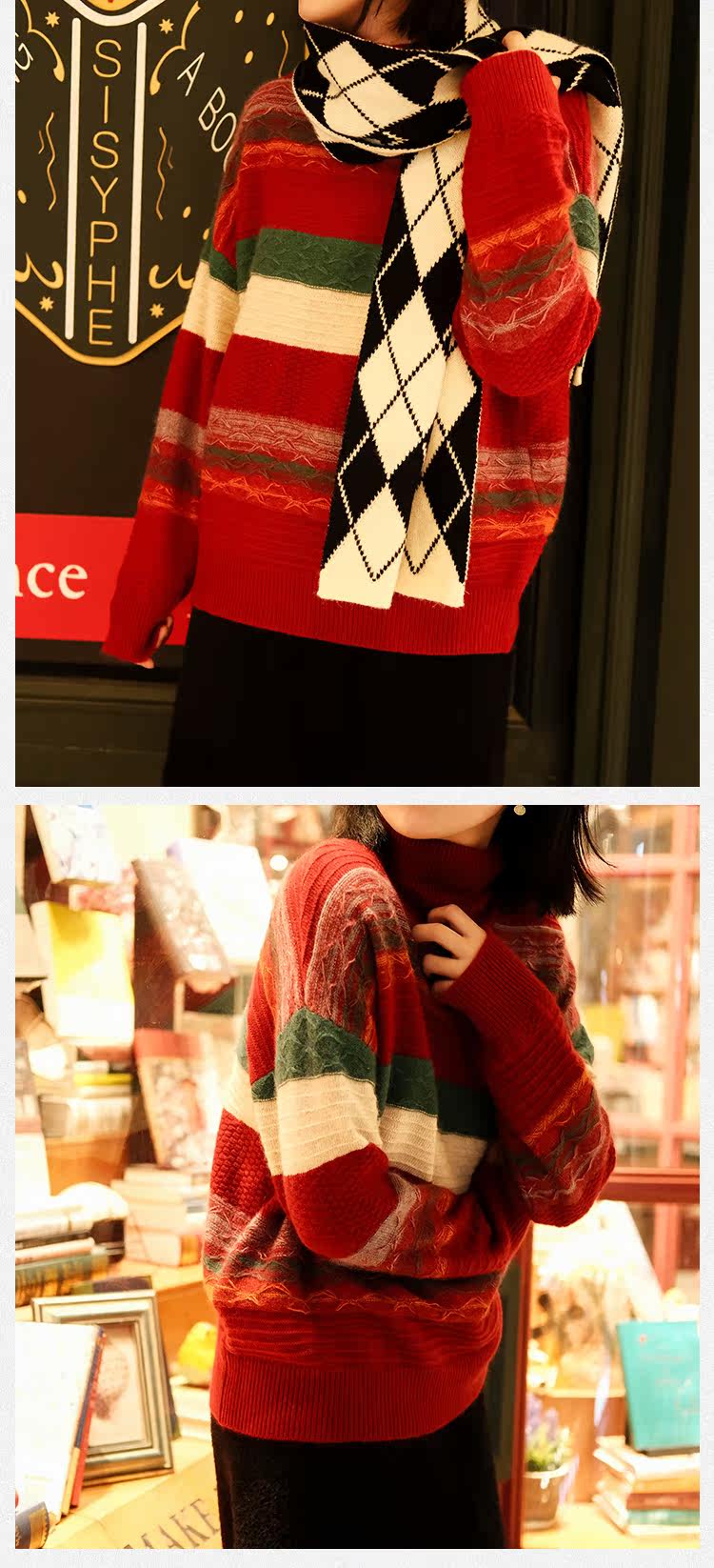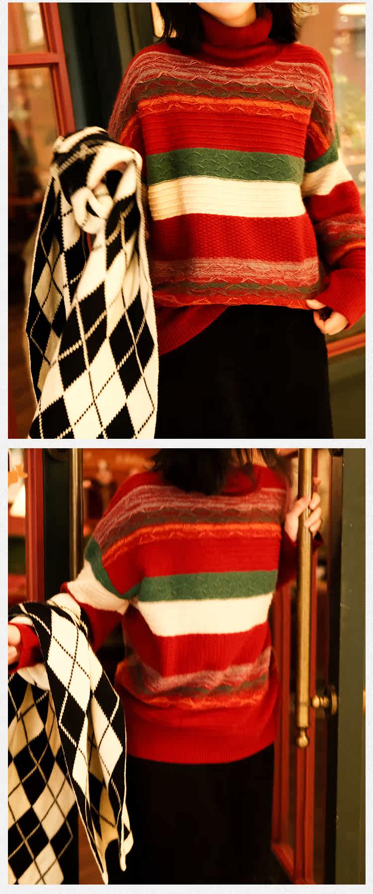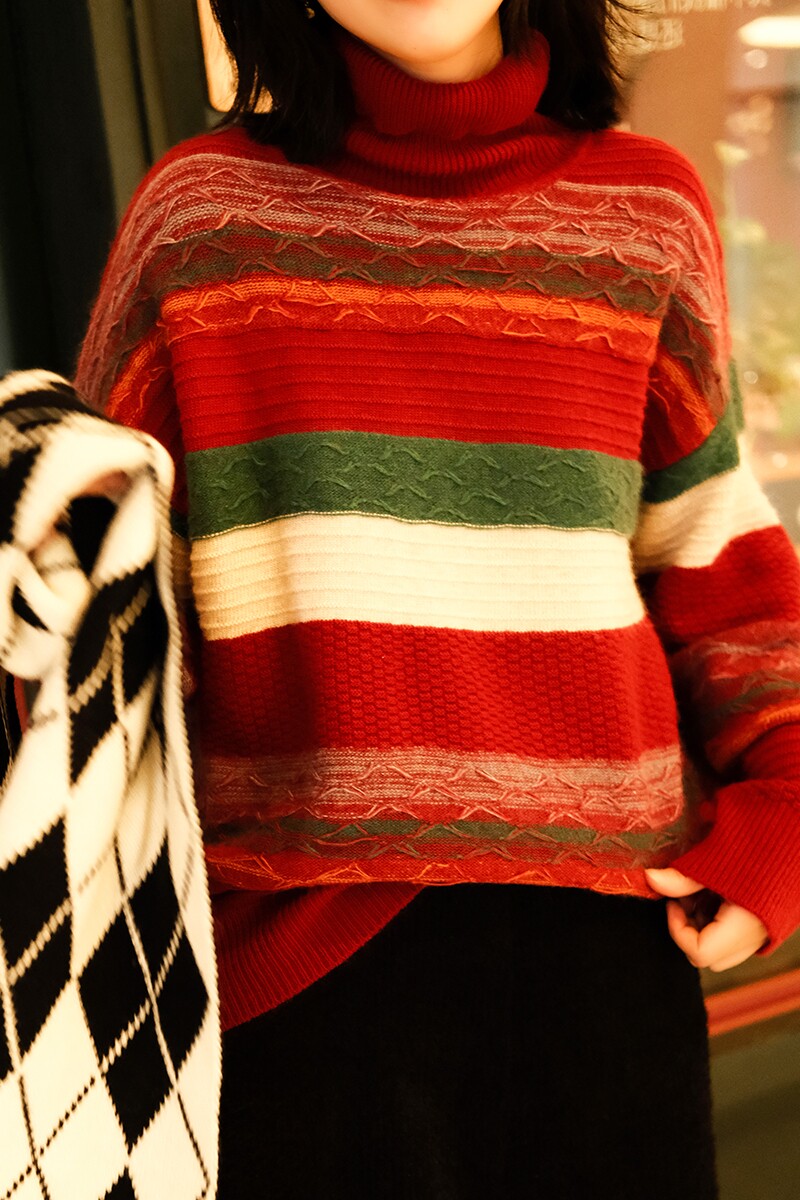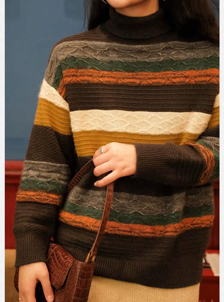 Маленькие ушки производят узор в стиле барокко, полосатую нить енота и кашемировый жаккардовый свитер, женский пуловер, универсальную женскую одежду