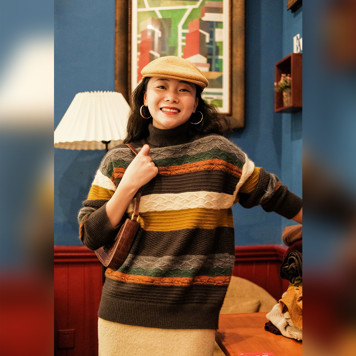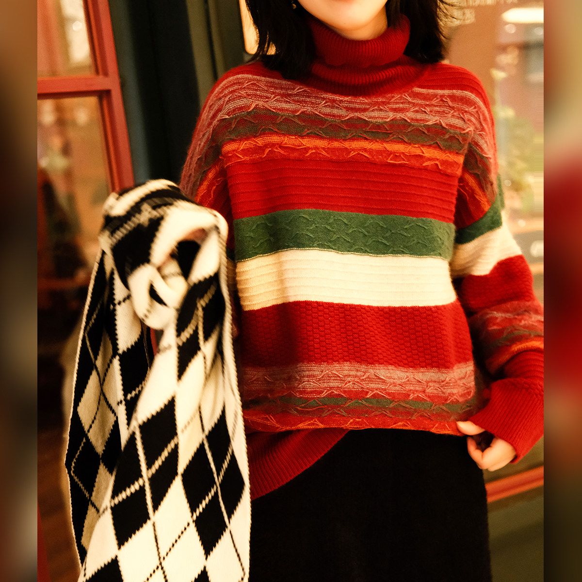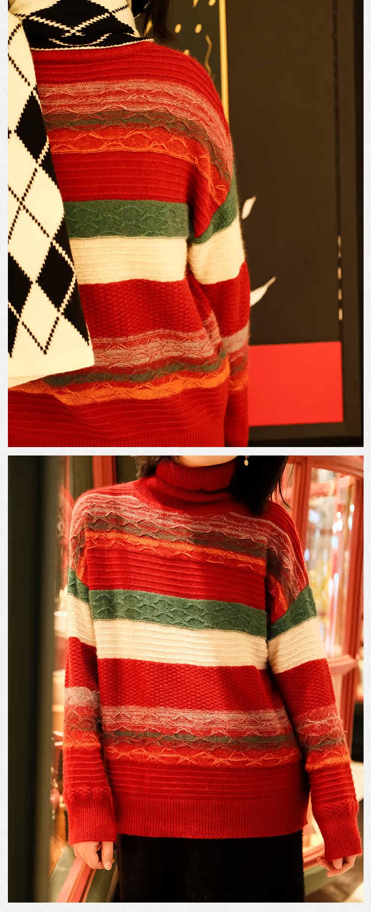 Маленькие ушки производят узор в стиле барокко, полосатую нить енота и кашемировый жаккардовый свитер, женский пуловер, универсальную женскую одежду
