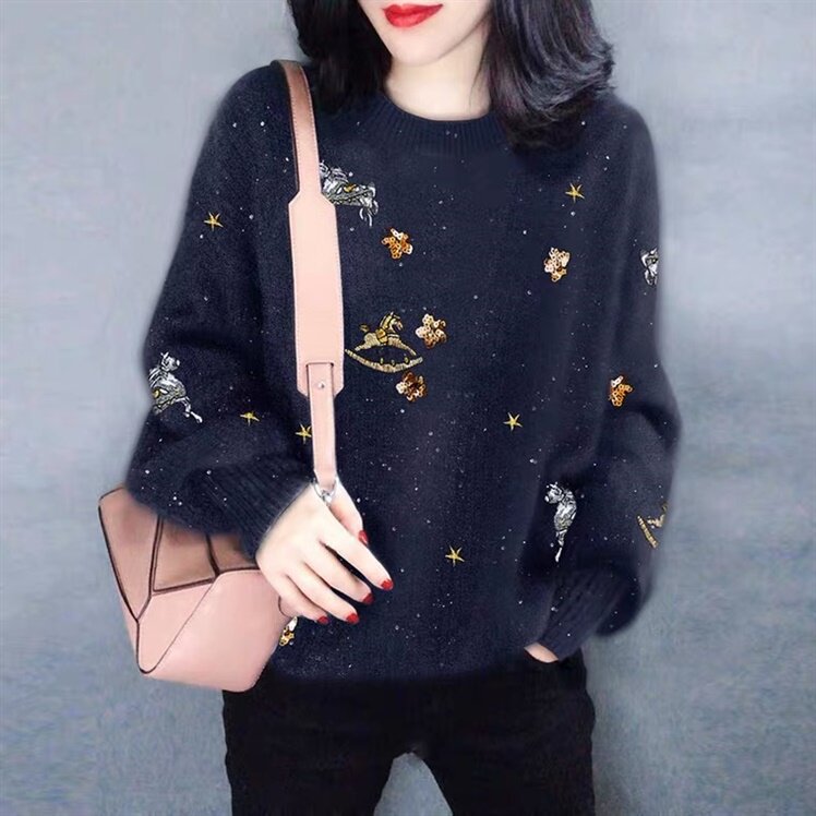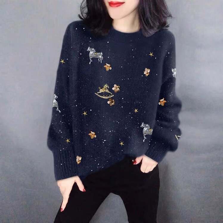 Европейская станция европейская модная женская свитер Seahorse 2024 Новый осенний и зимний Гуанчжоу 13-row Big Loft