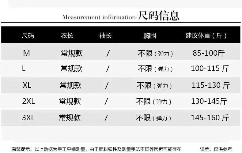 | Размер: | М рекомендуется 80-100 кот, L предложил 100-115 кот, XL рекомендовал 115-130 кот, 2xl предложение 130-145 кот, 3xl Предложение 145-160 Catties |