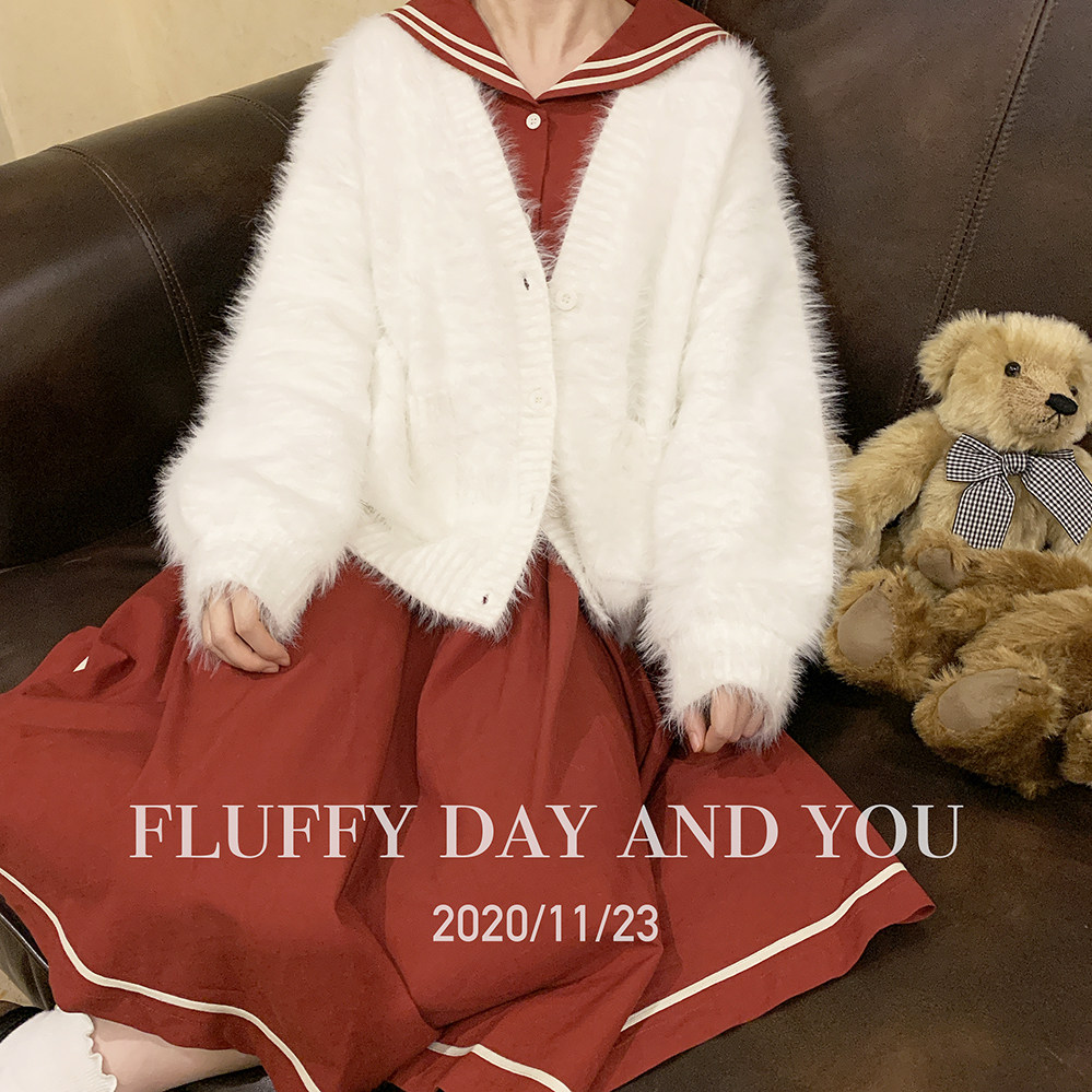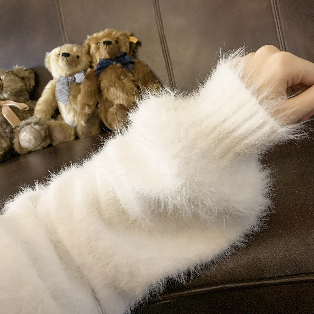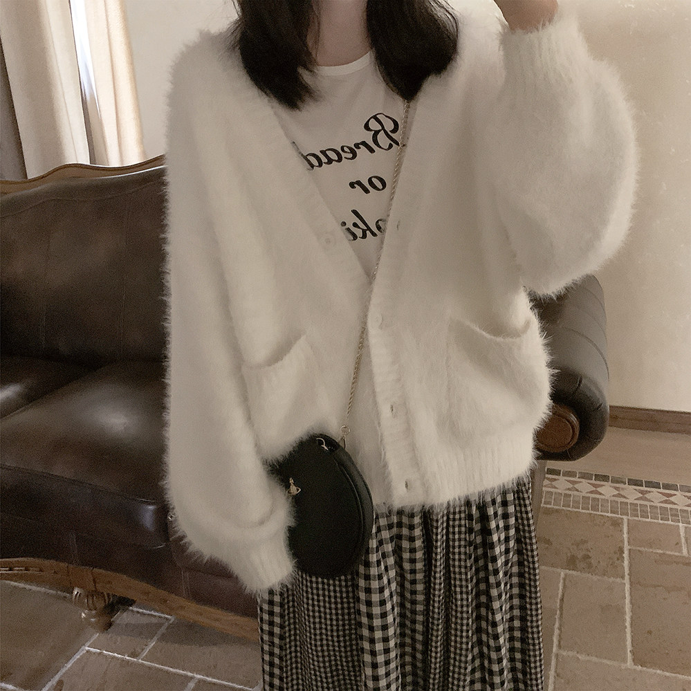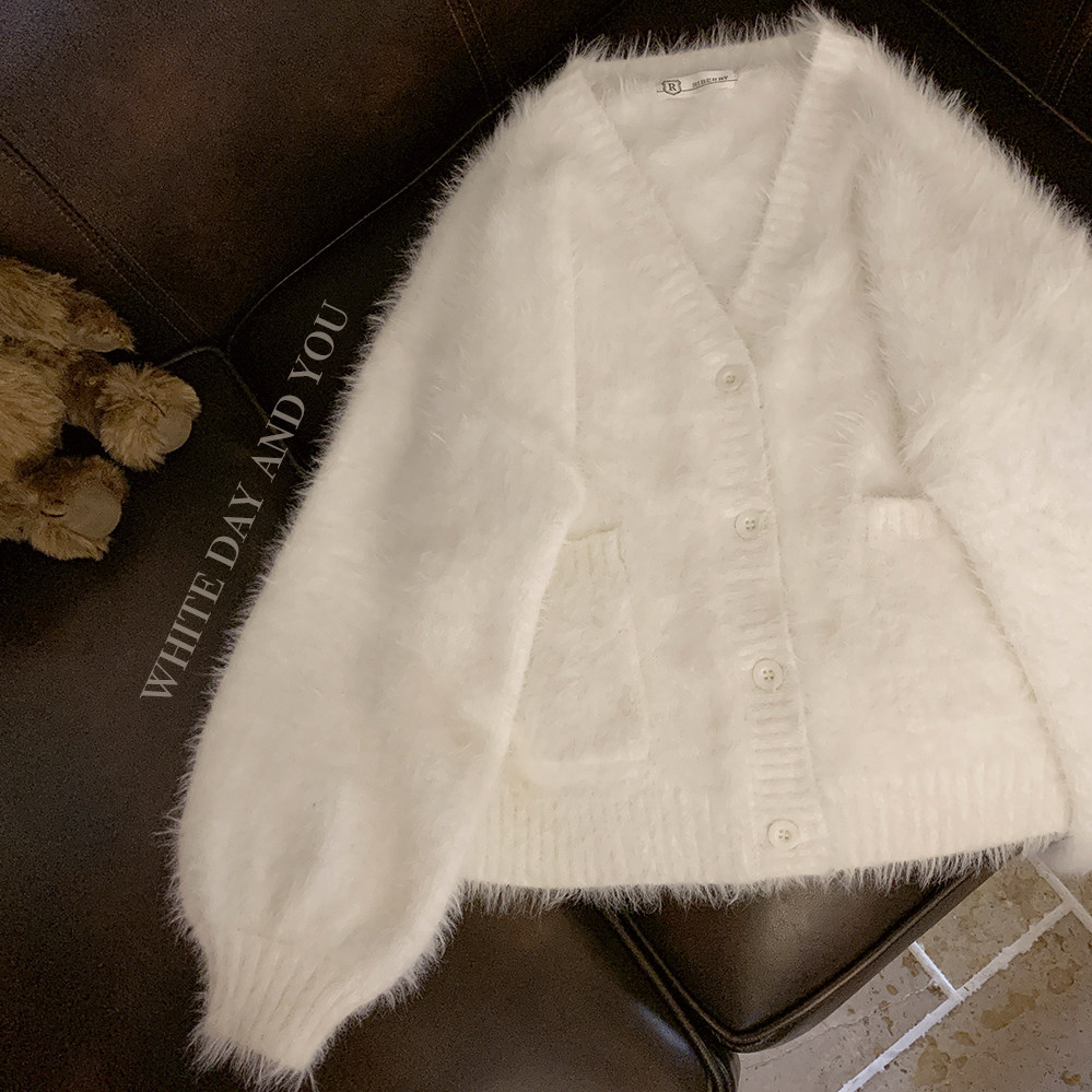 Бархатный белый трикотажный свитер, кардиган, куртка, искусственный мех, свободный крой