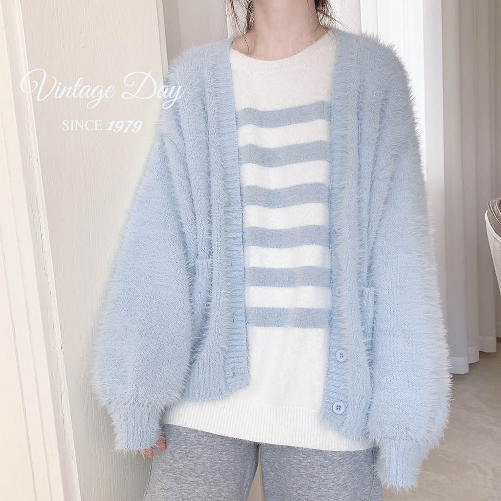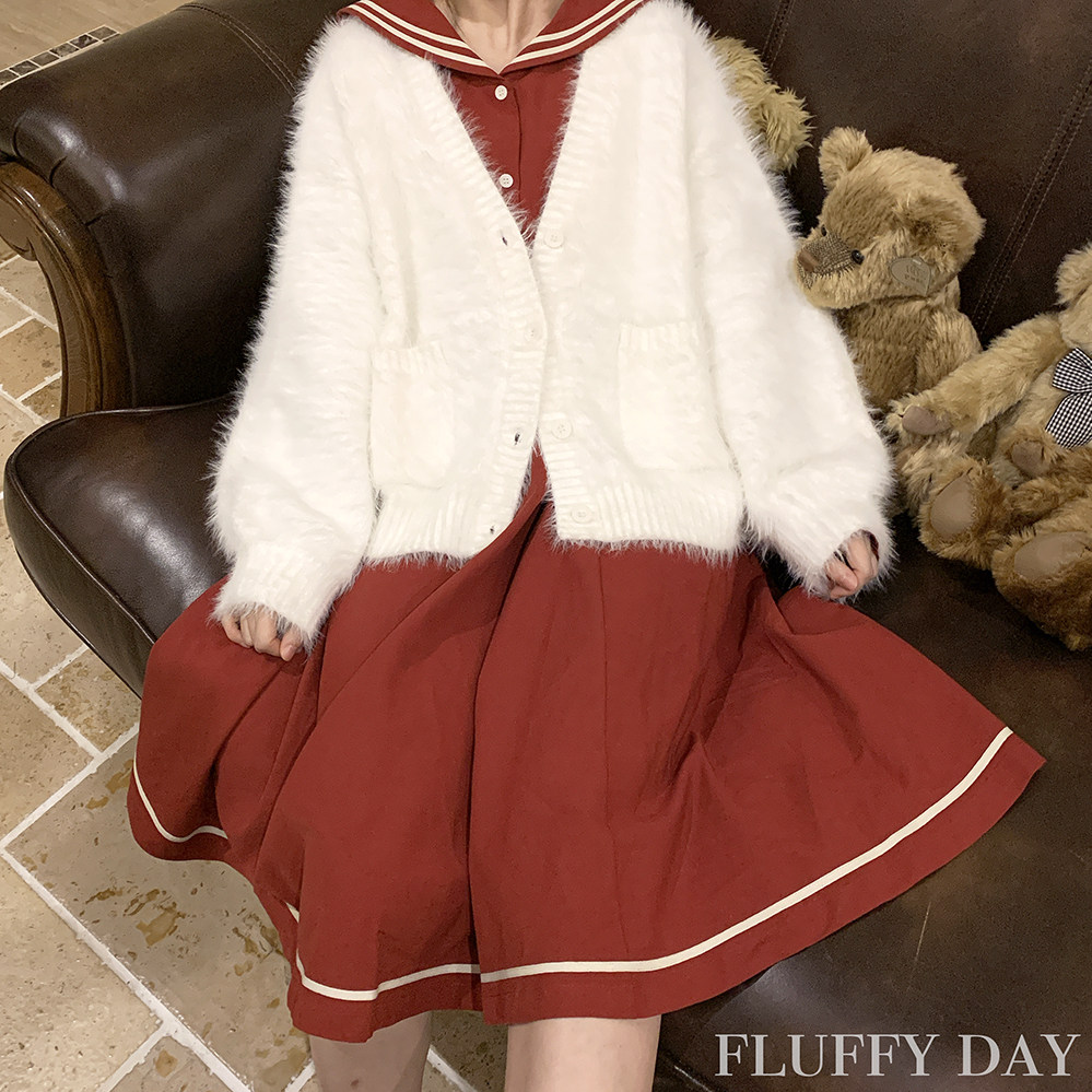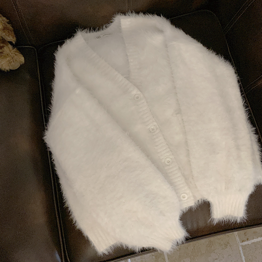 Бархатный белый трикотажный свитер, кардиган, куртка, искусственный мех, свободный крой