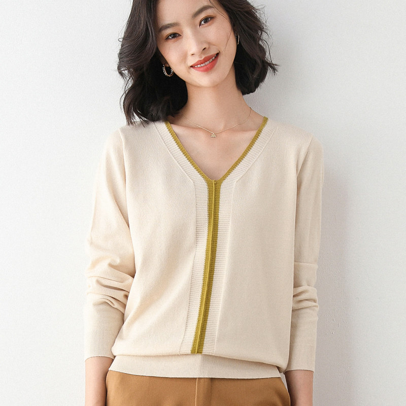 Демисезонный цветной трикотажный свитер, кашемировый короткий шерстяной лонгслив, оверсайз, V-образный вырез