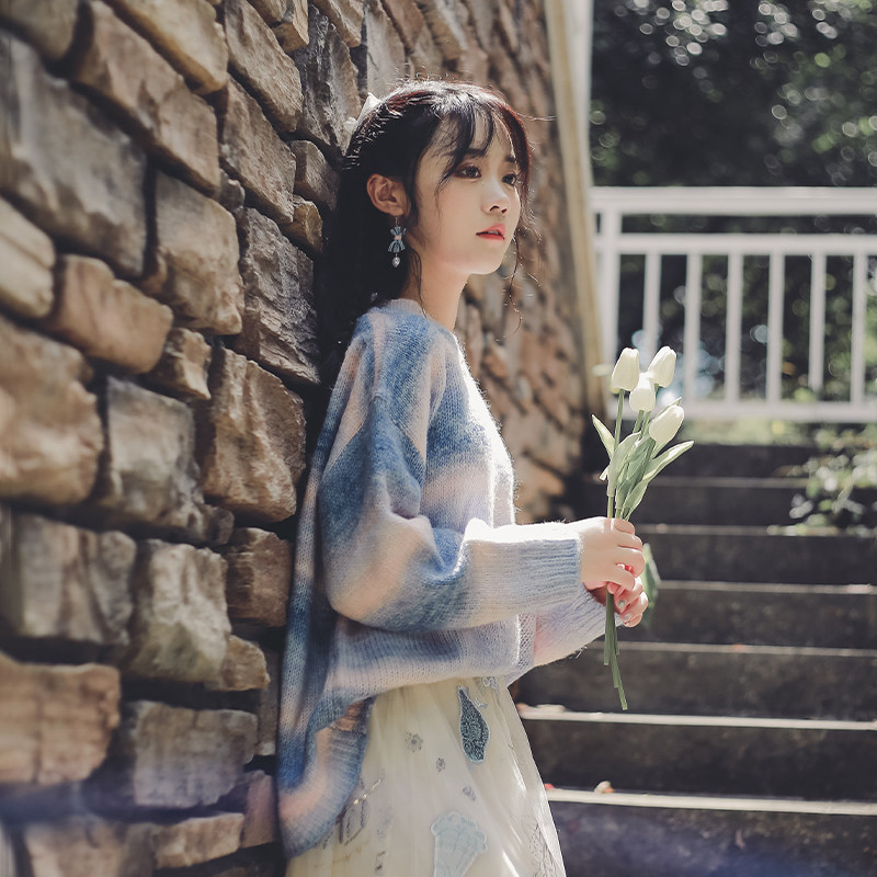 Демисезонный дизайнерский трикотажный свитер, градиент, оверсайз, коллекция 2021, тренд сезона