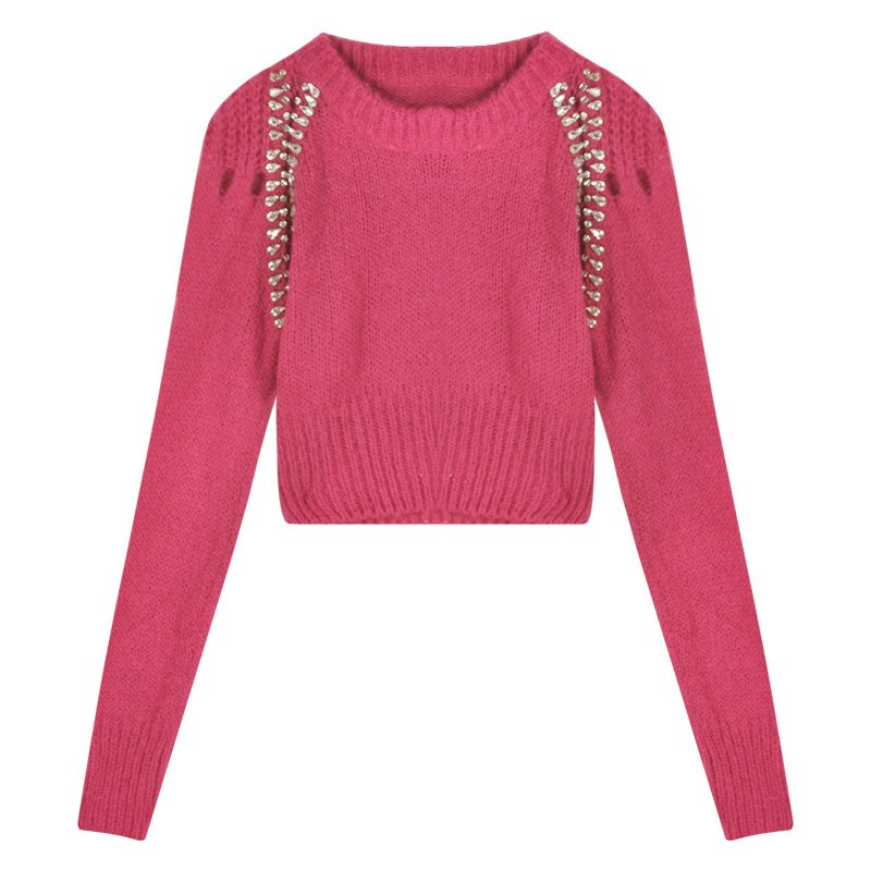 Трикотажный осенний дизайнерский свитер, красный короткий лонгслив, тренд сезона, облегающий крой