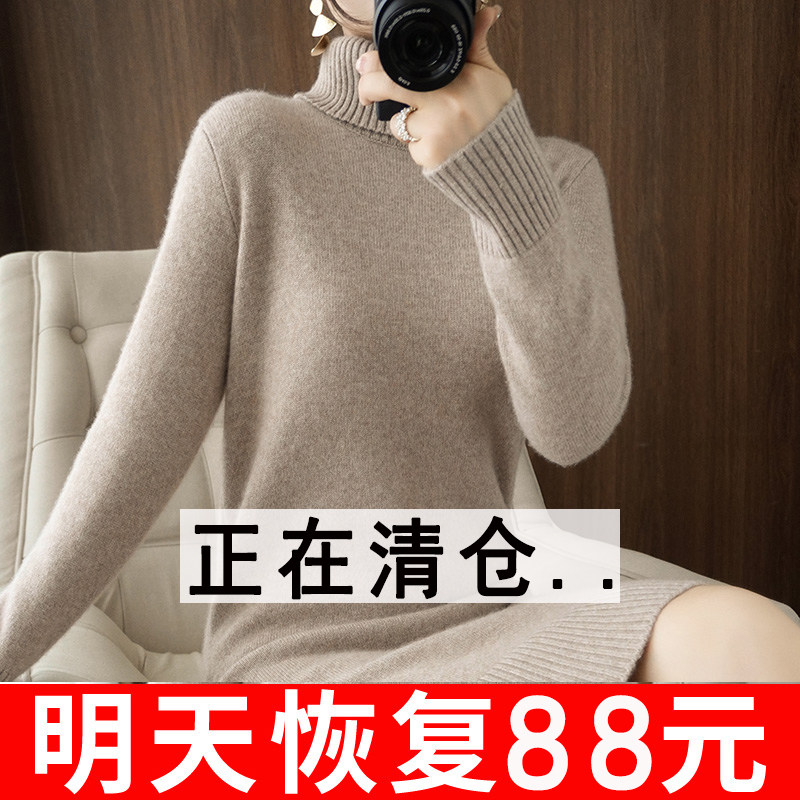 Демисезонное длинное однотонное трикотажное платье, длинный трикотажный свитер, лонгслив, коллекция 2021, средней длины, высокий воротник