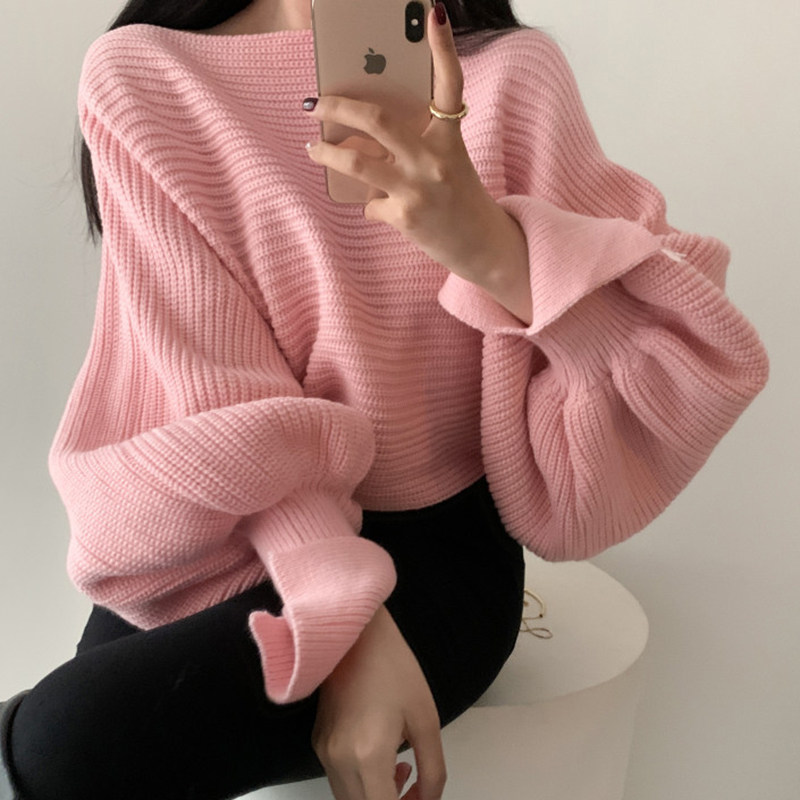 Осенний дизайнерский фонарь, трикотажный свитер, в корейском стиле, высокая талия
