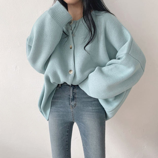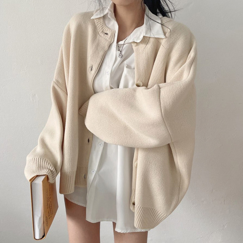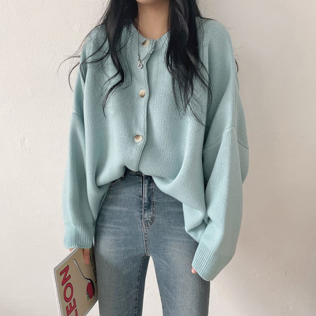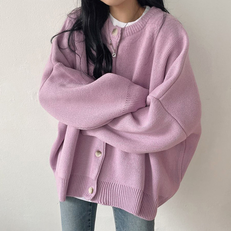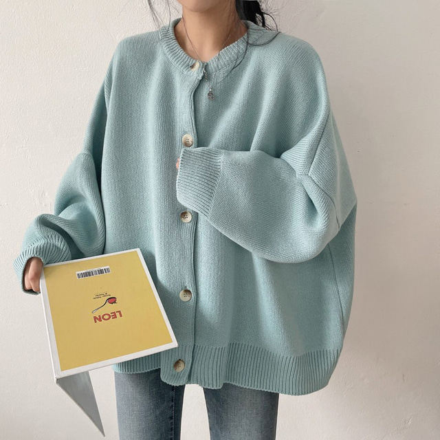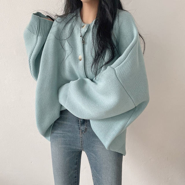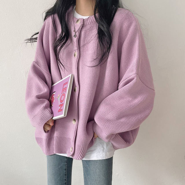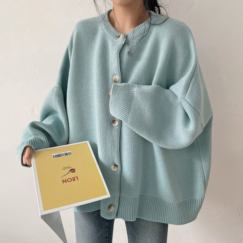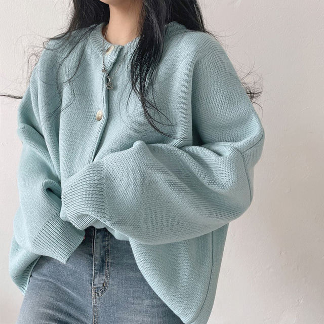 Свитер с круглым воротником для отдыха, трикотажный лонгслив, кардиган, в корейском стиле, свободный крой