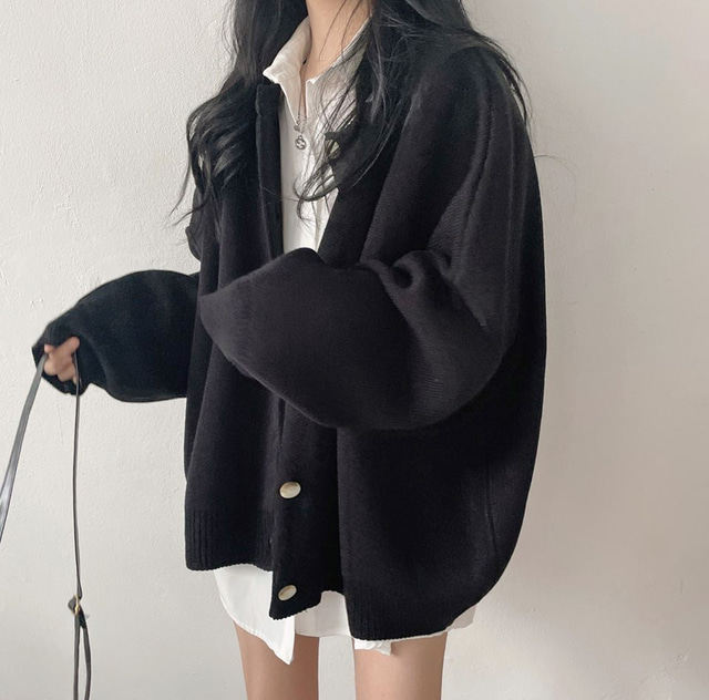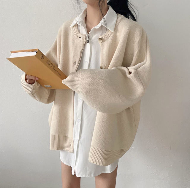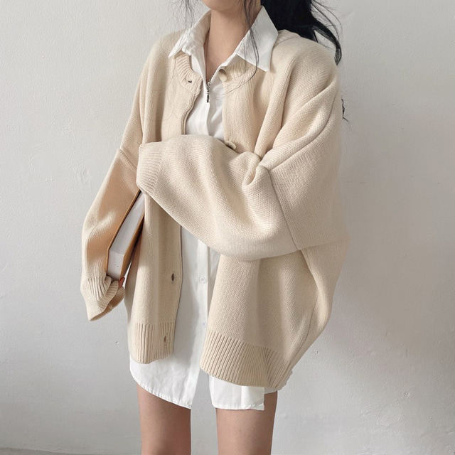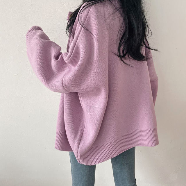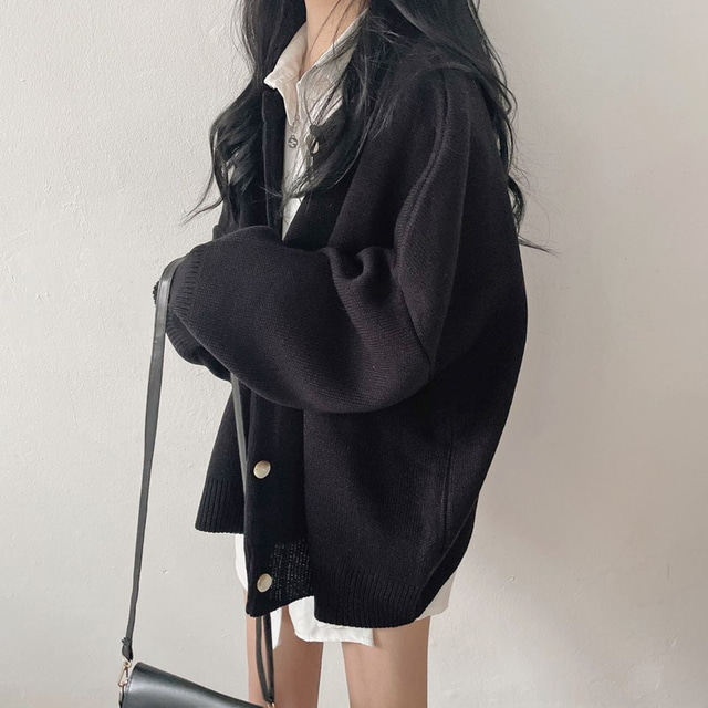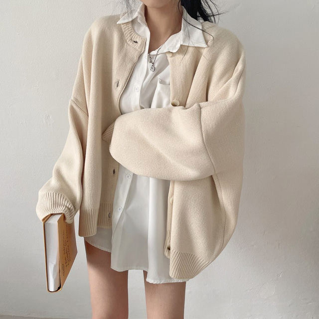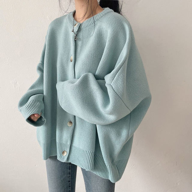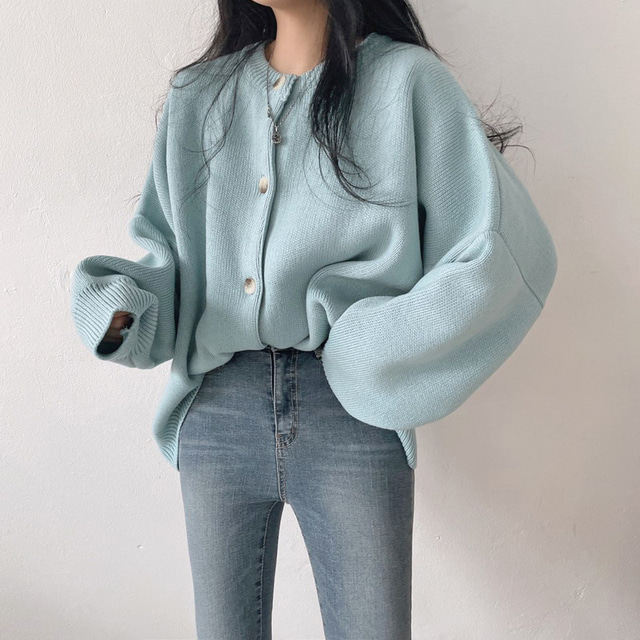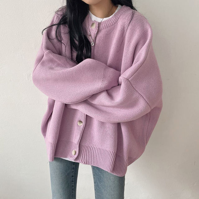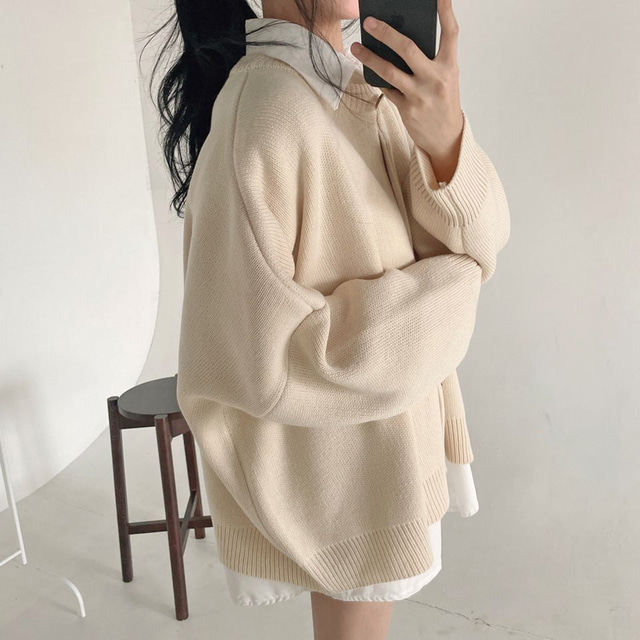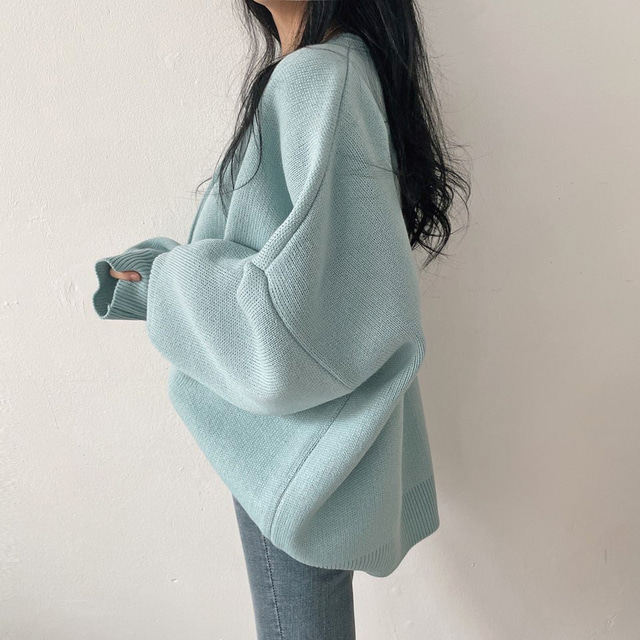 Свитер с круглым воротником для отдыха, трикотажный лонгслив, кардиган, в корейском стиле, свободный крой