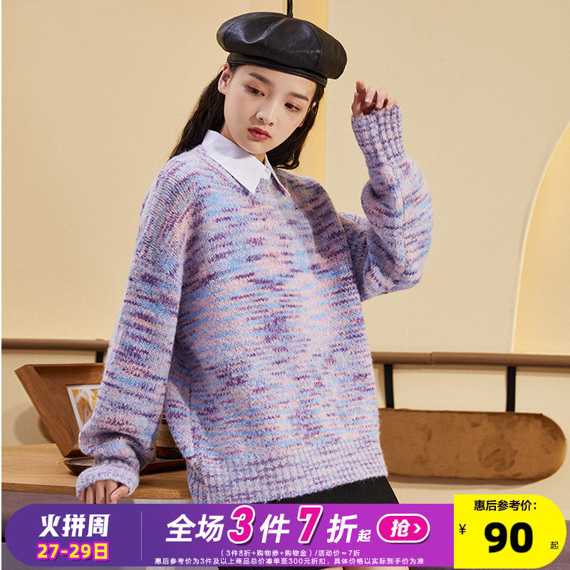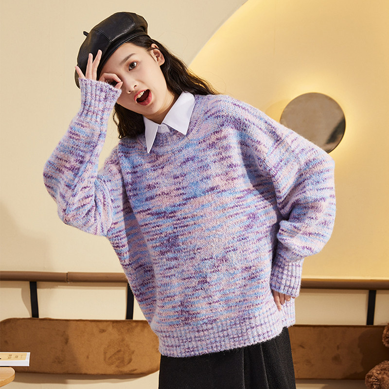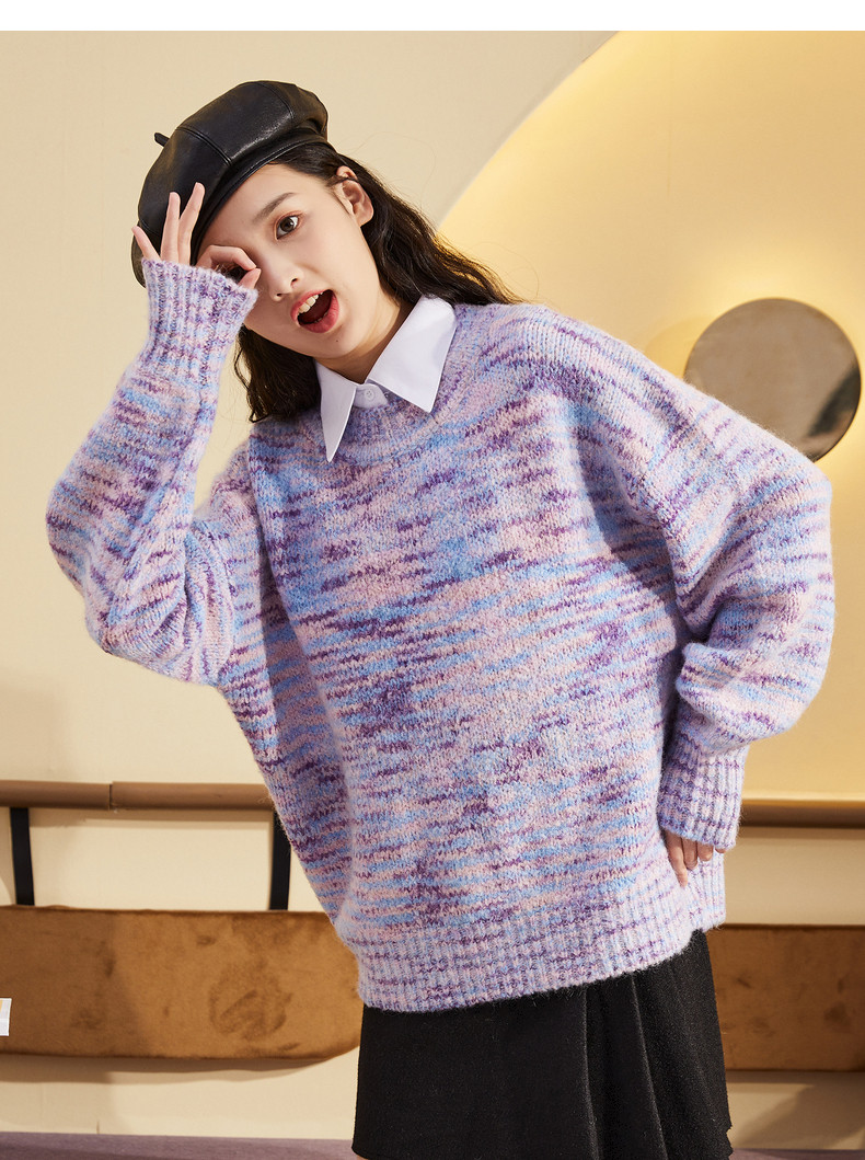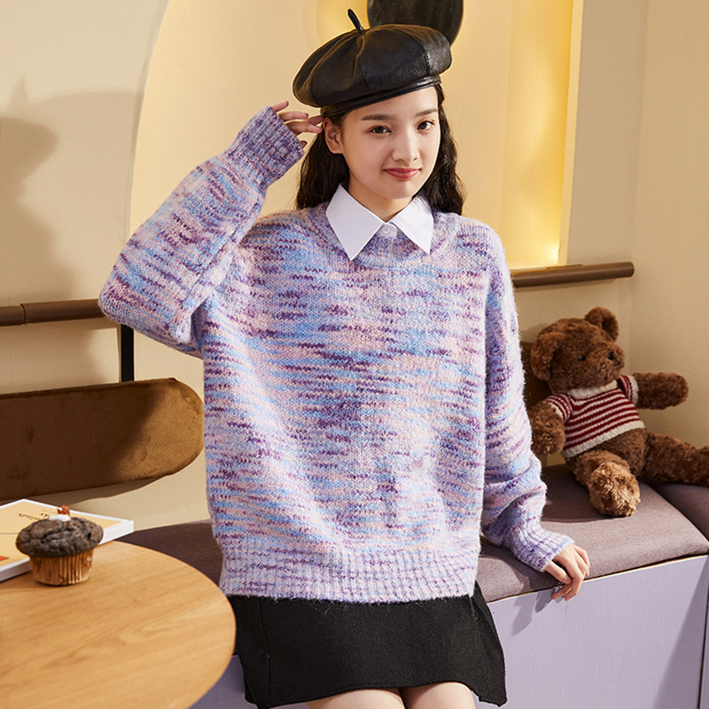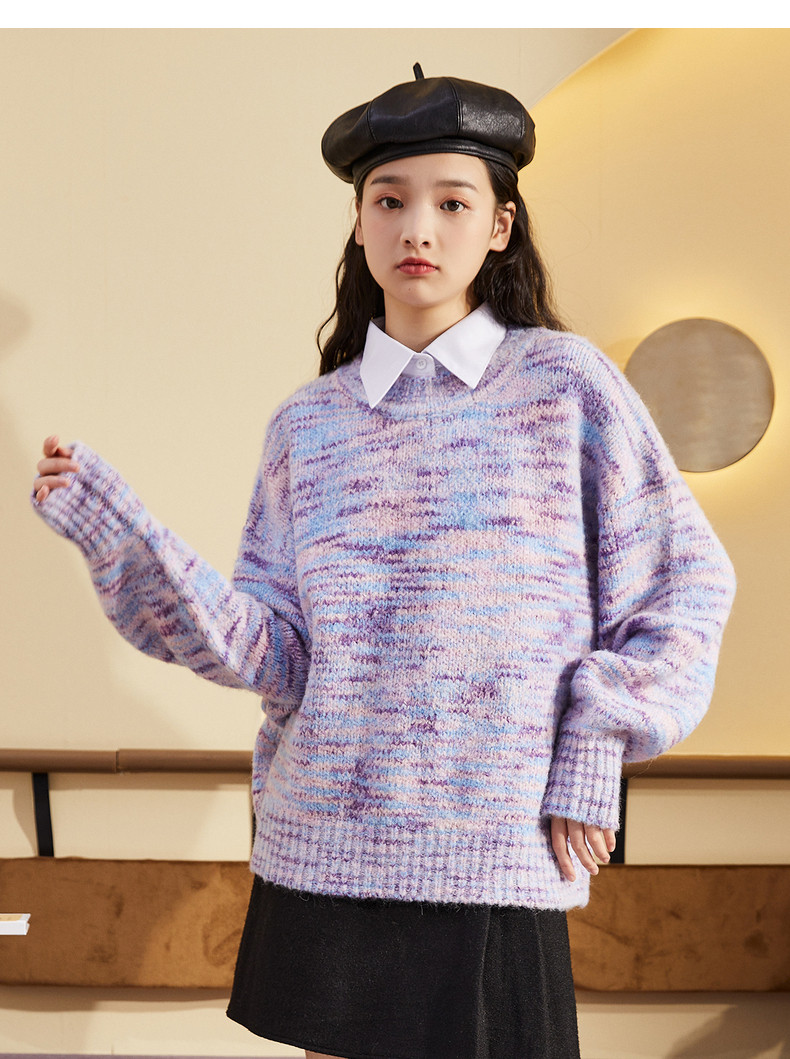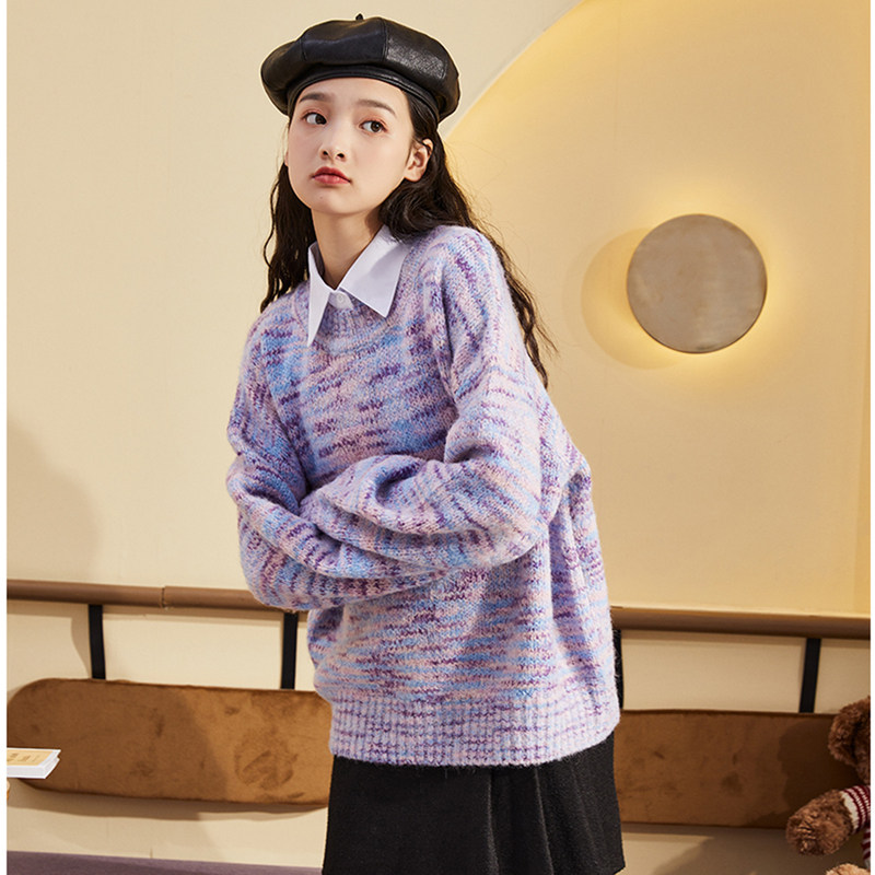 Демисезонный сиреневый трикотажный шерстяной свитер, коллекция 2021