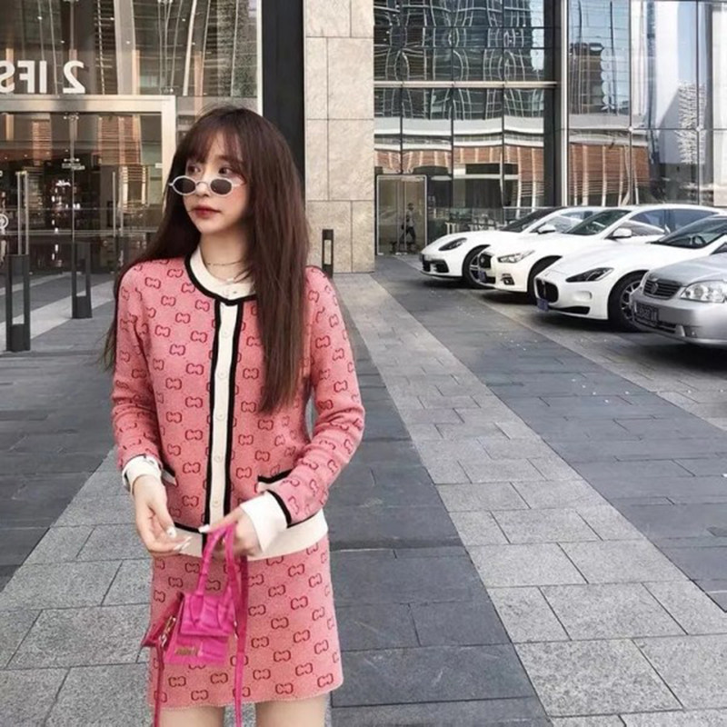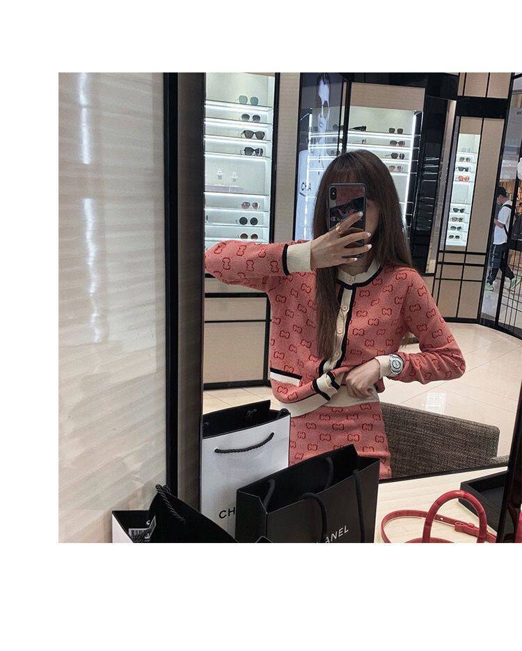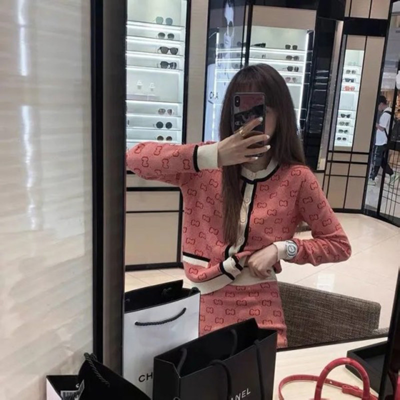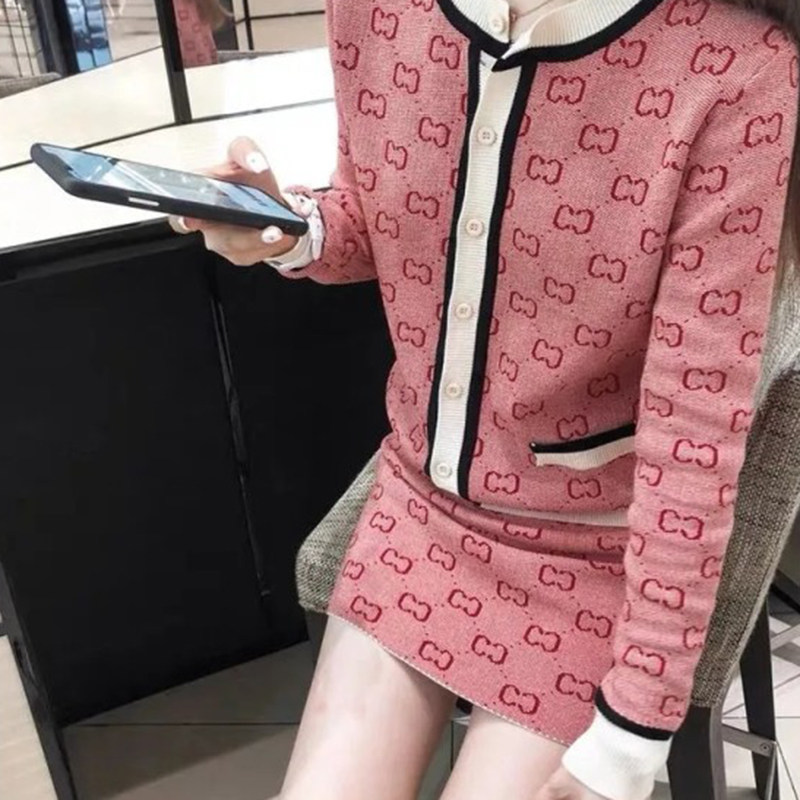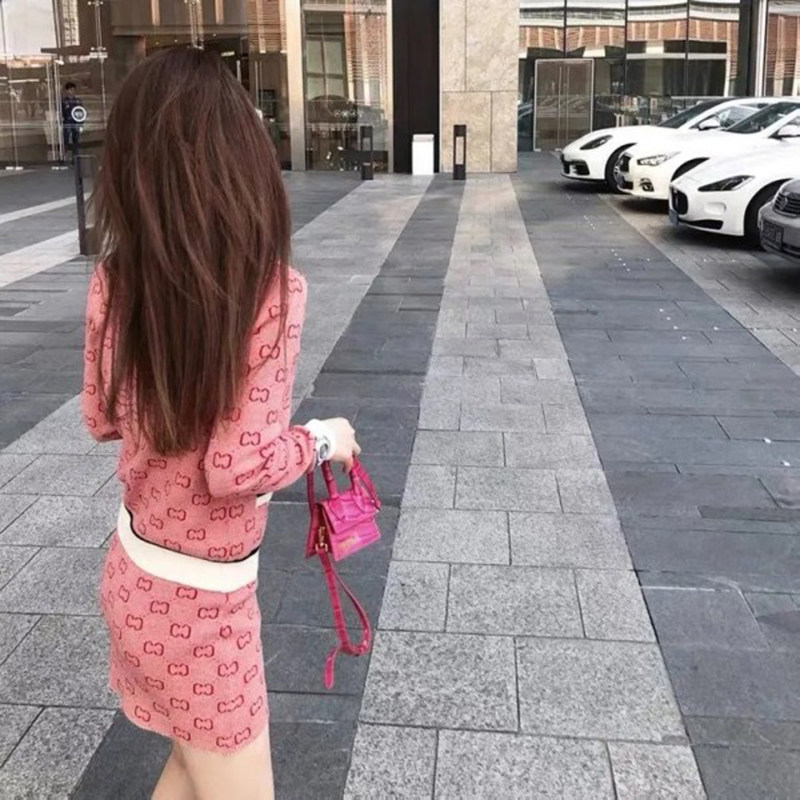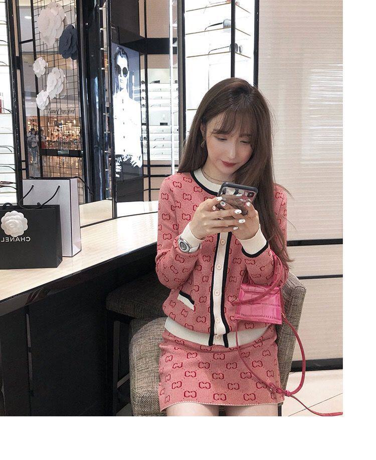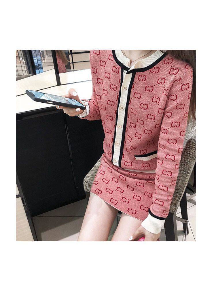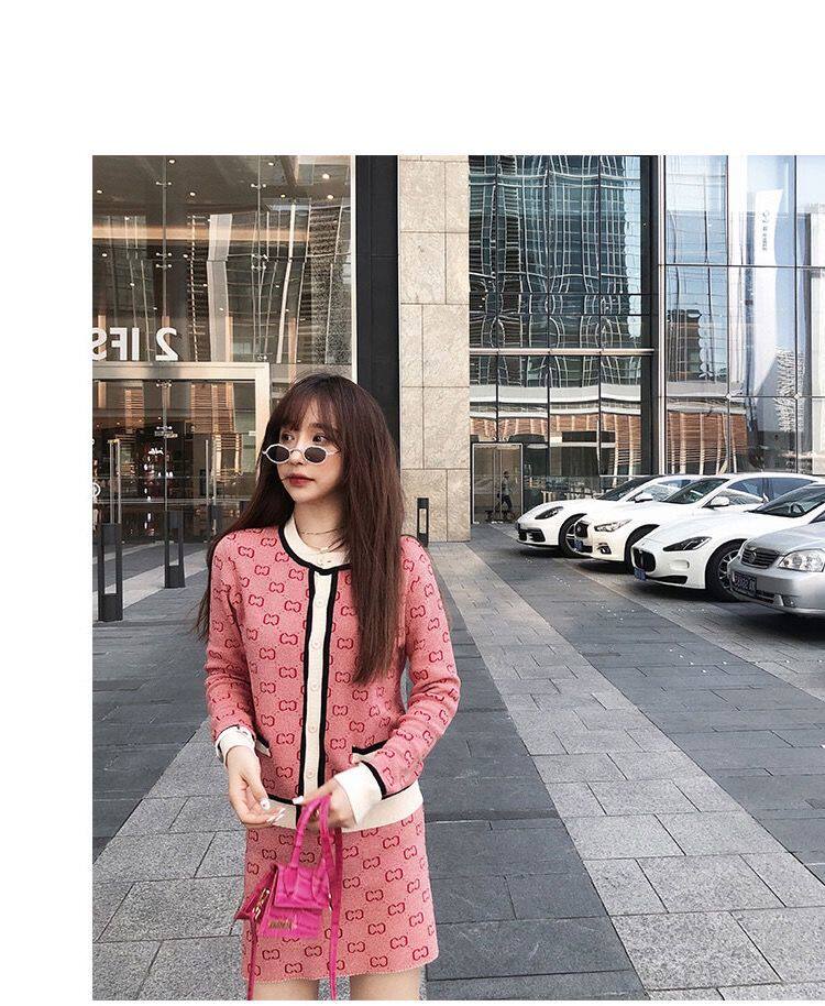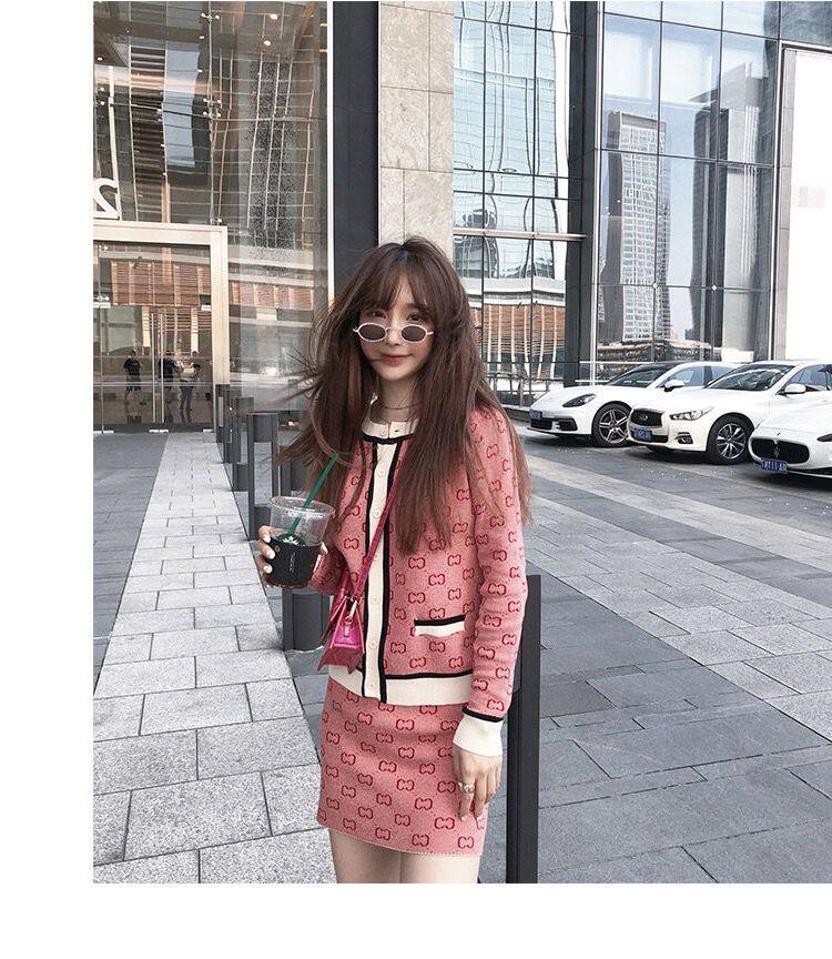 Трикотажный розовый свитер с буквами, комплект, юбка, популярно в интернете, в стиле Шанель, подходит для подростков