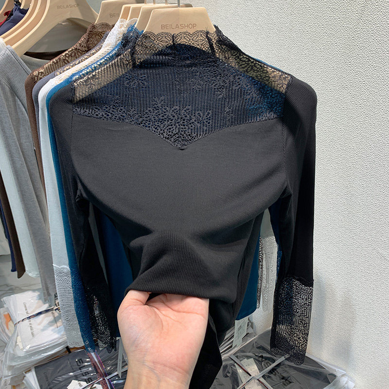 Утепленный базовый приятный телу демисезонный бархатный свитер, высокий воротник, в западном стиле