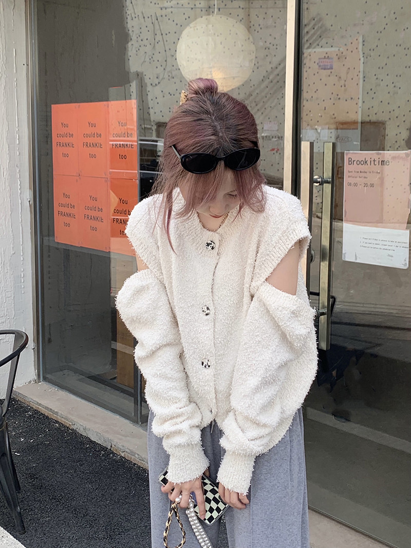 Дизайнерский свитер, съемный демисезонный осенний белый кардиган, тренд сезона