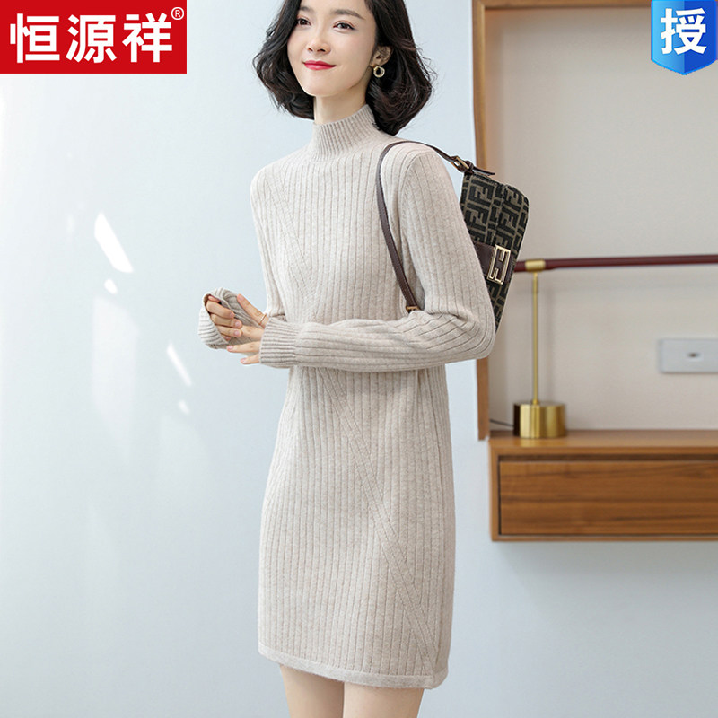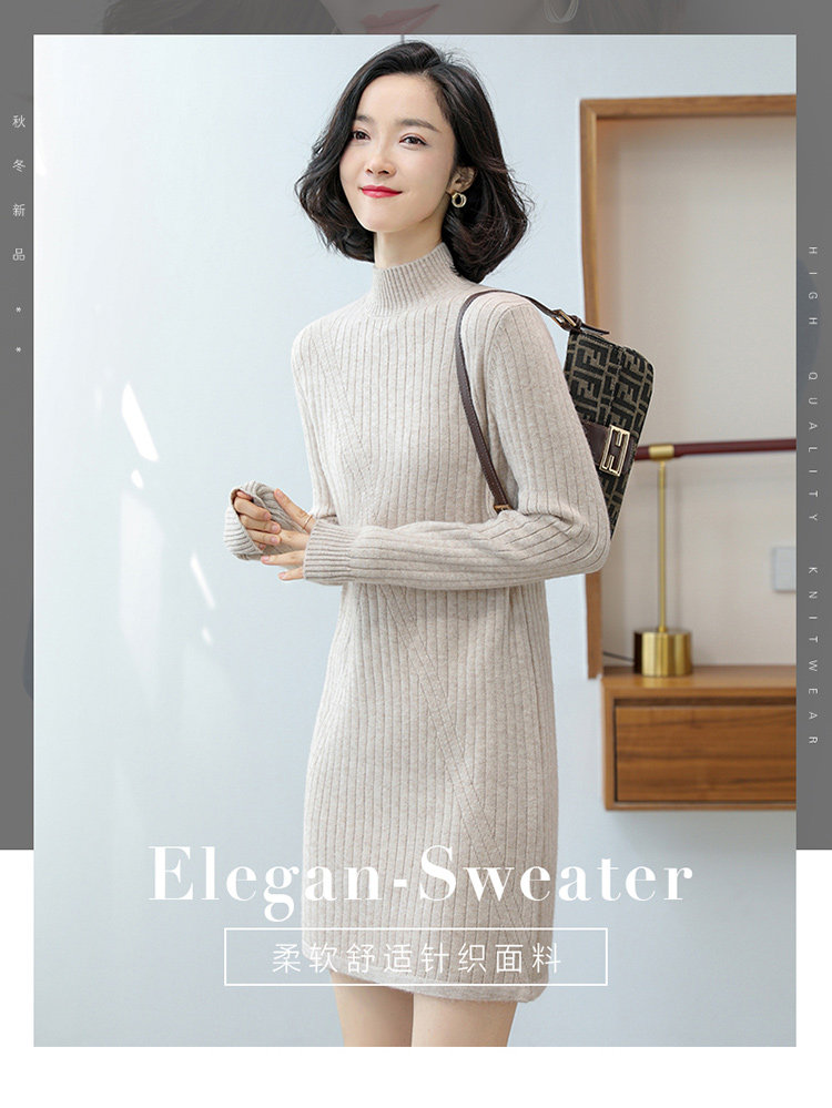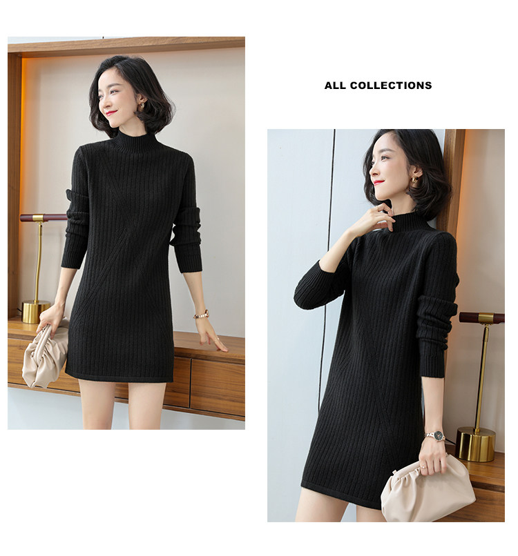 Шерстяной свитер, длинное кашемировое демисезонное трикотажное платье, средней длины