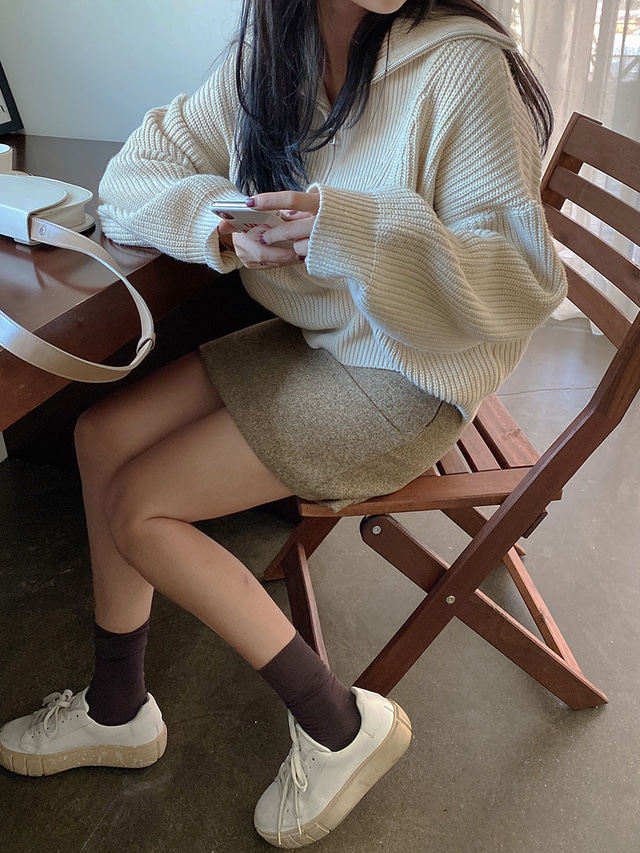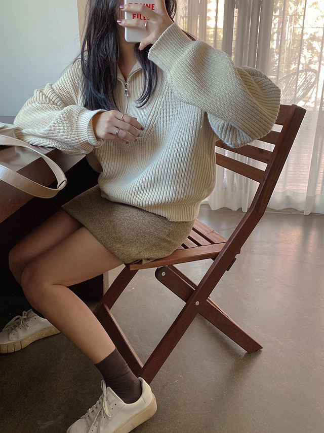 Осенний дизайнерский трикотажный свитер с молнией, в корейском стиле, оверсайз, рукава фонарики