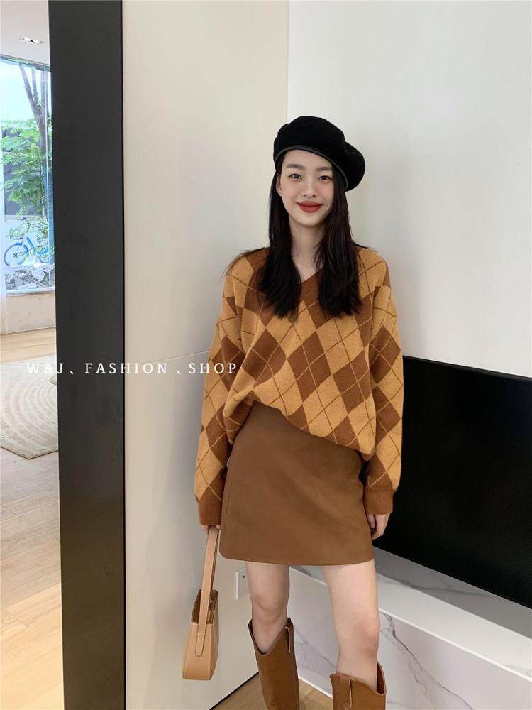 Демисезонный брендовый свитер, в корейском стиле, V-образный вырез, коллекция 2021, свободный крой