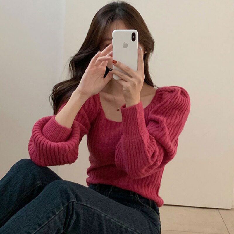 Демисезонный приталенный фонарь, трикотажные нарукавники, свитер, в корейском стиле, французский стиль