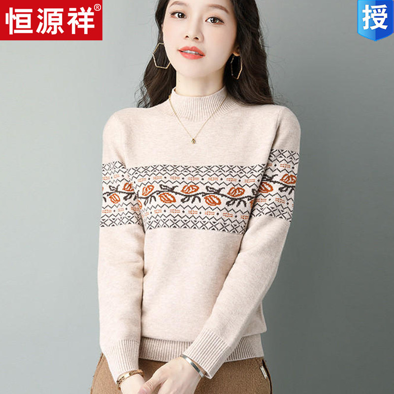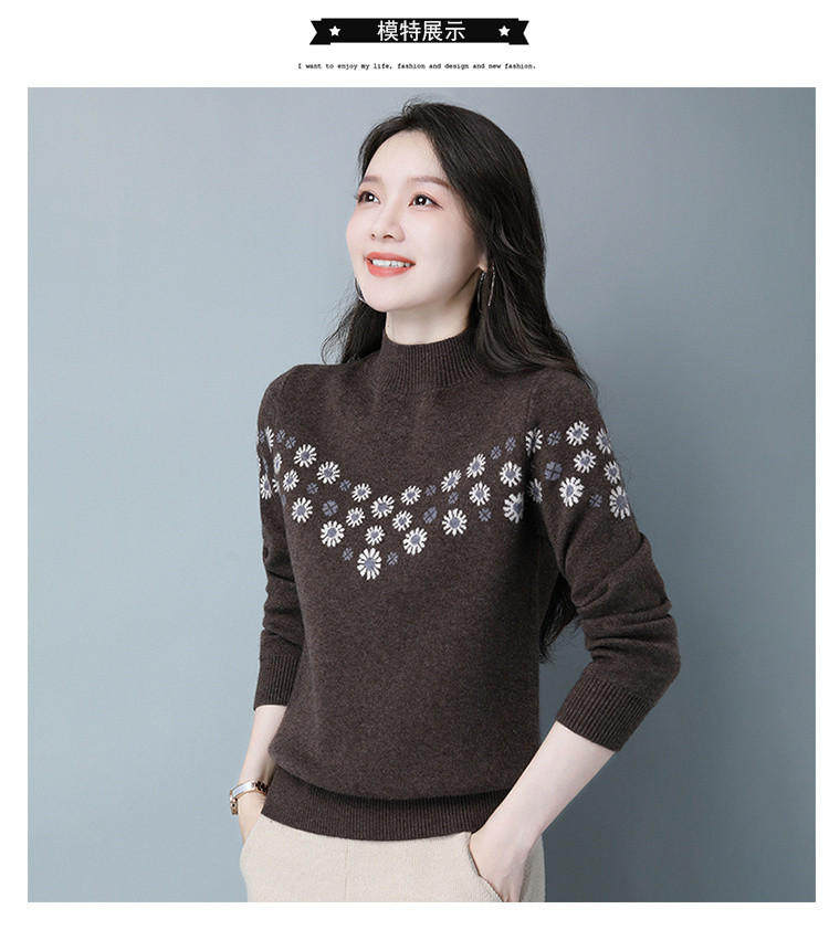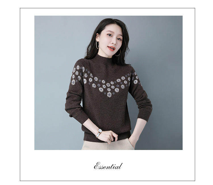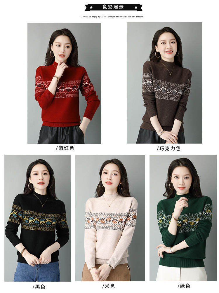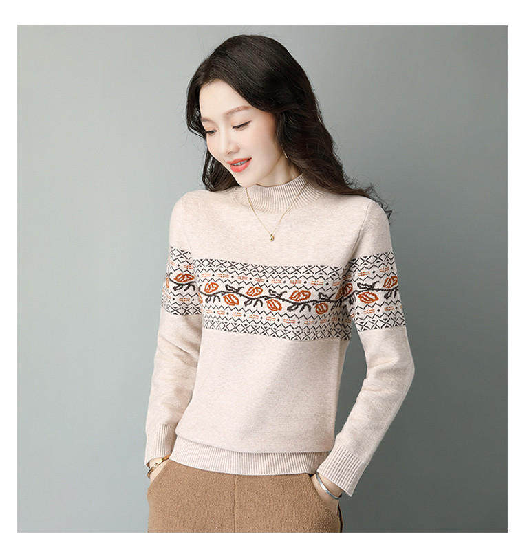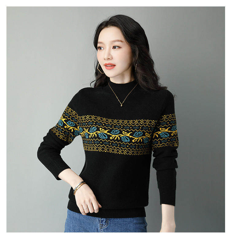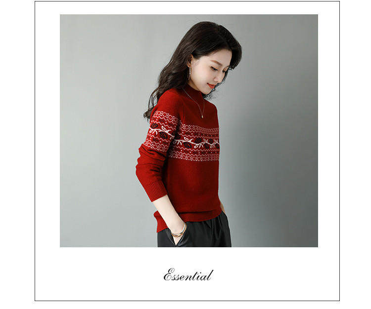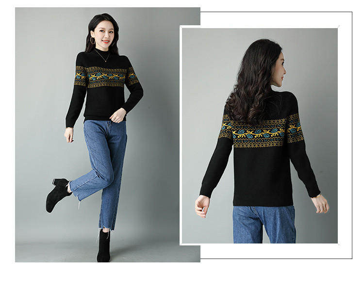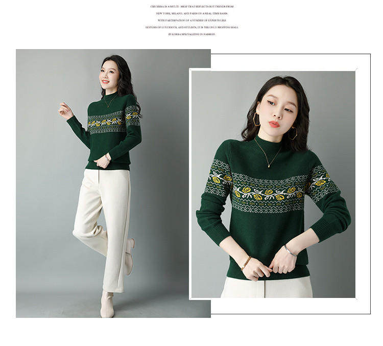 Демисезонный шерстяной свитер, базовая трикотажная рубашка, высокий воротник, с вышивкой, оверсайз