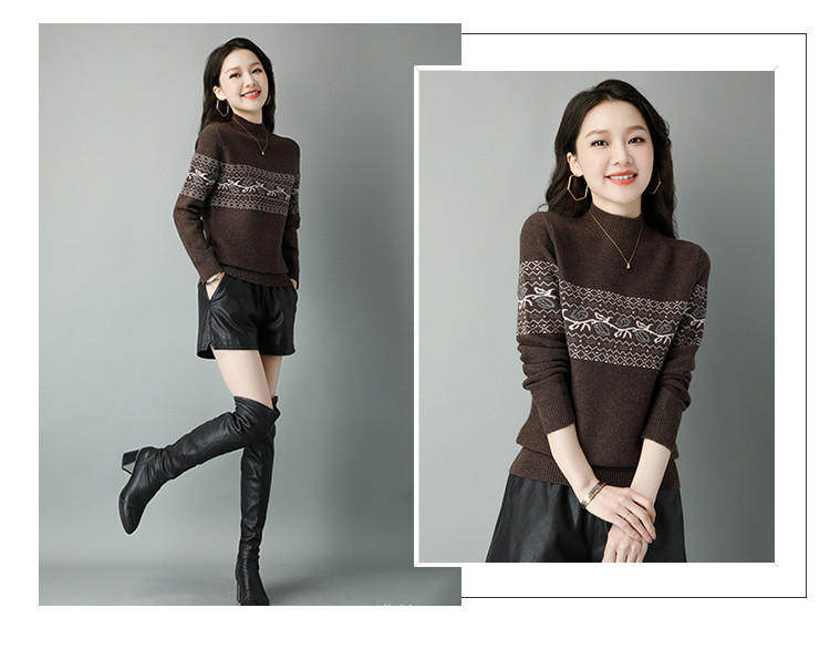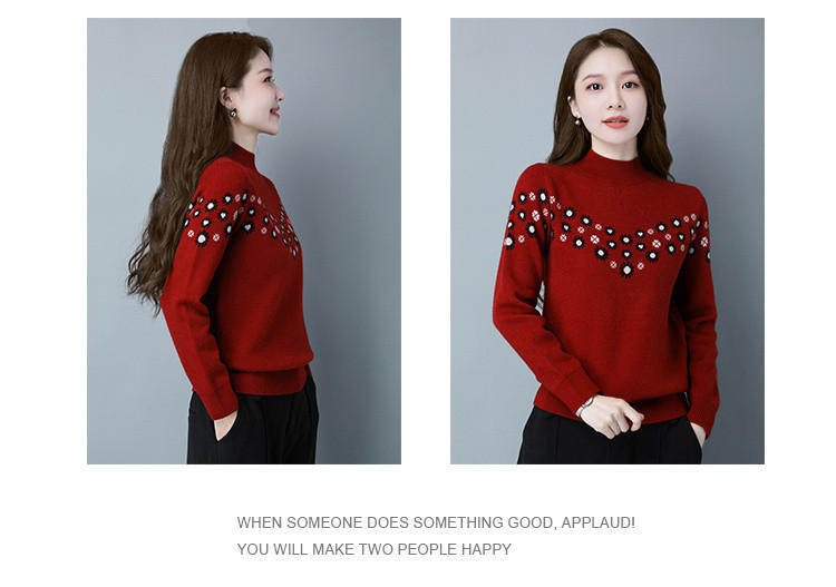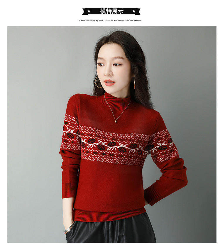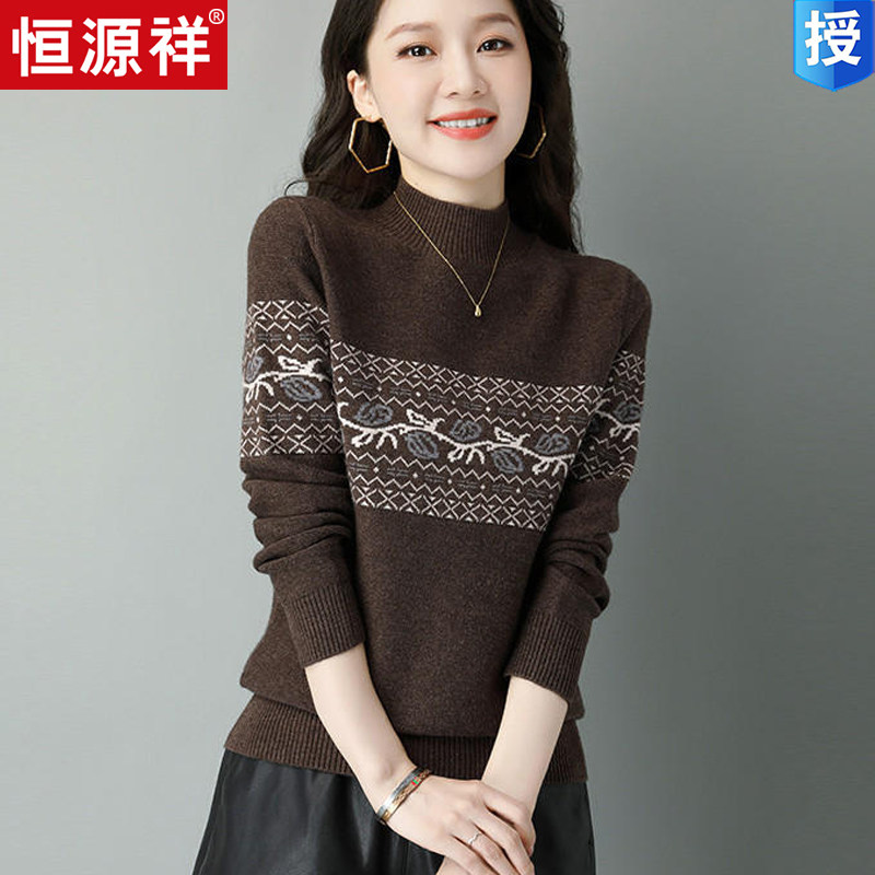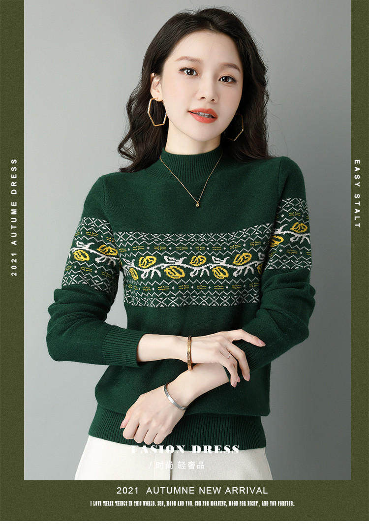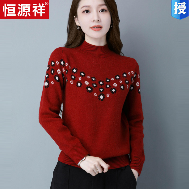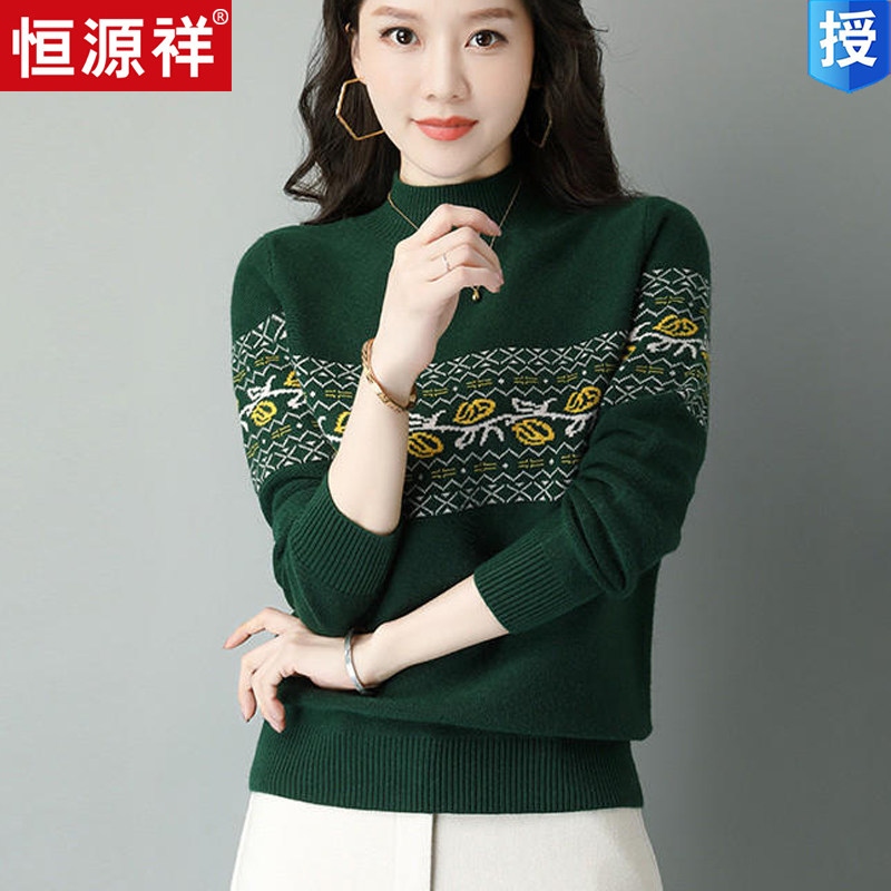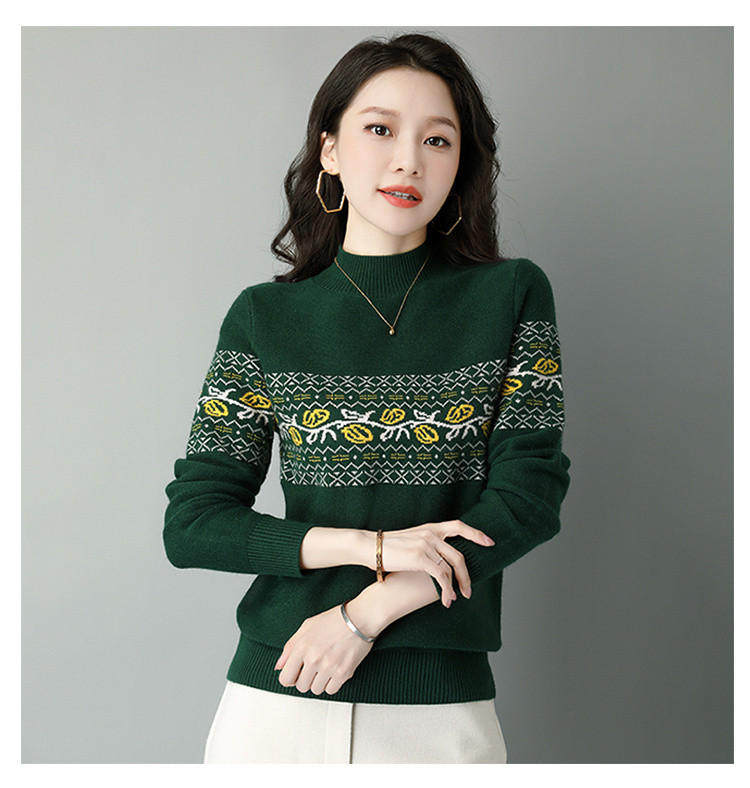 Демисезонный шерстяной свитер, базовая трикотажная рубашка, высокий воротник, с вышивкой, оверсайз