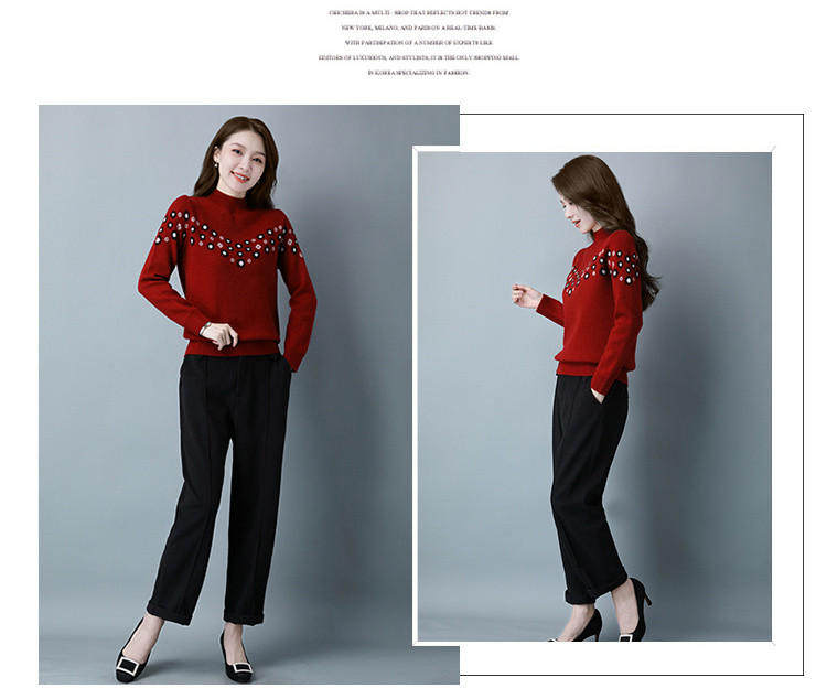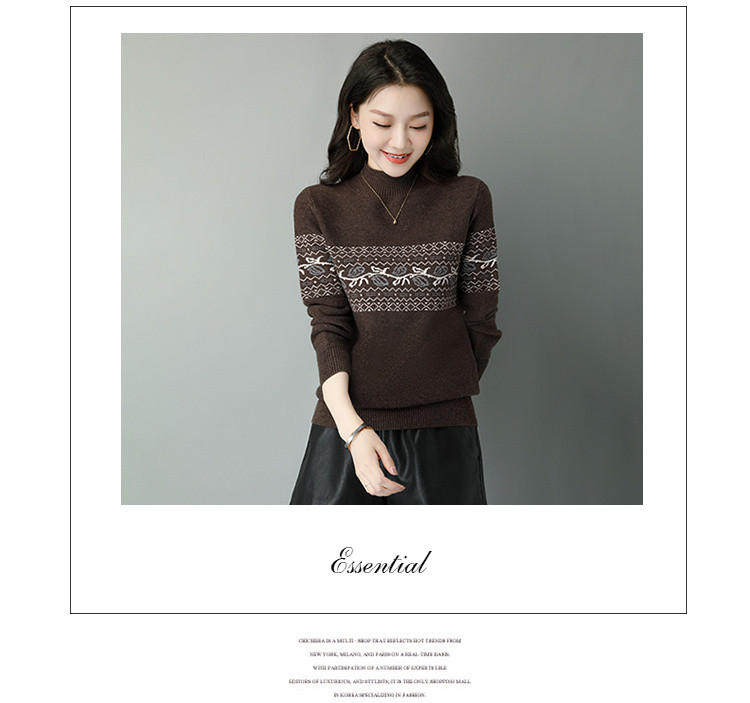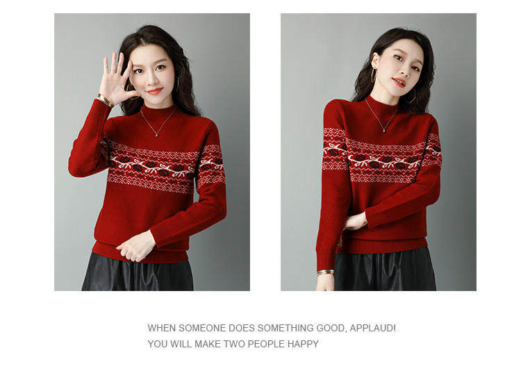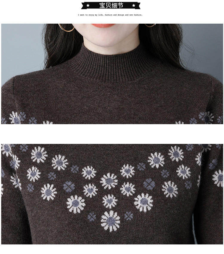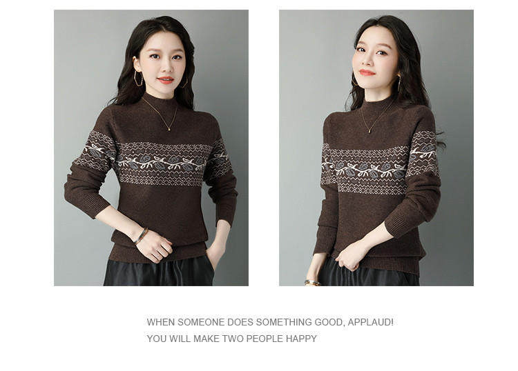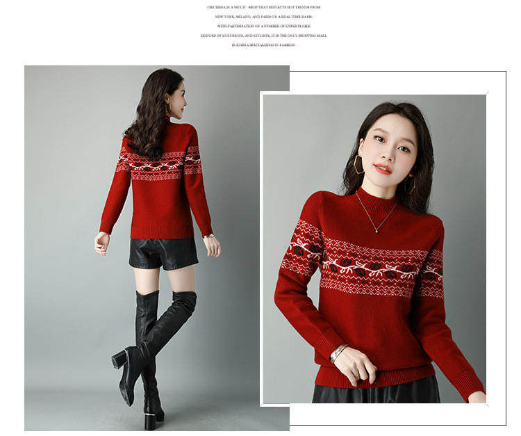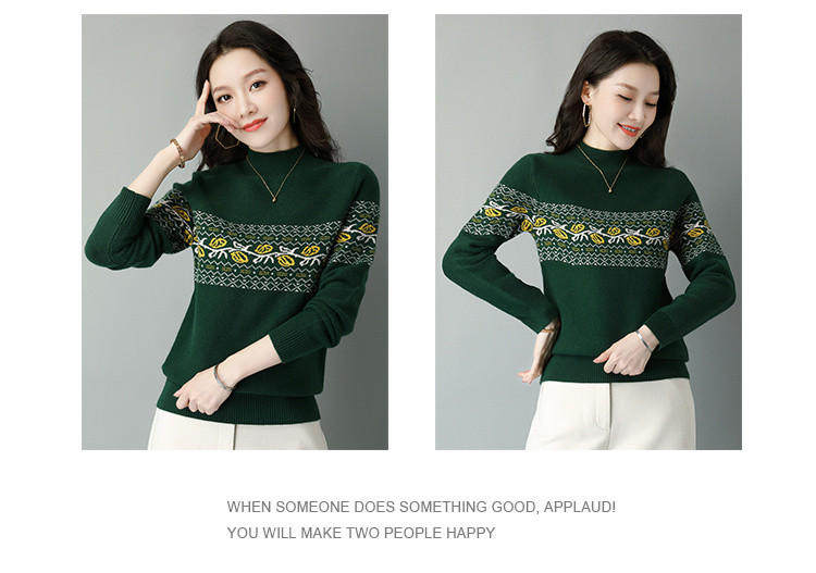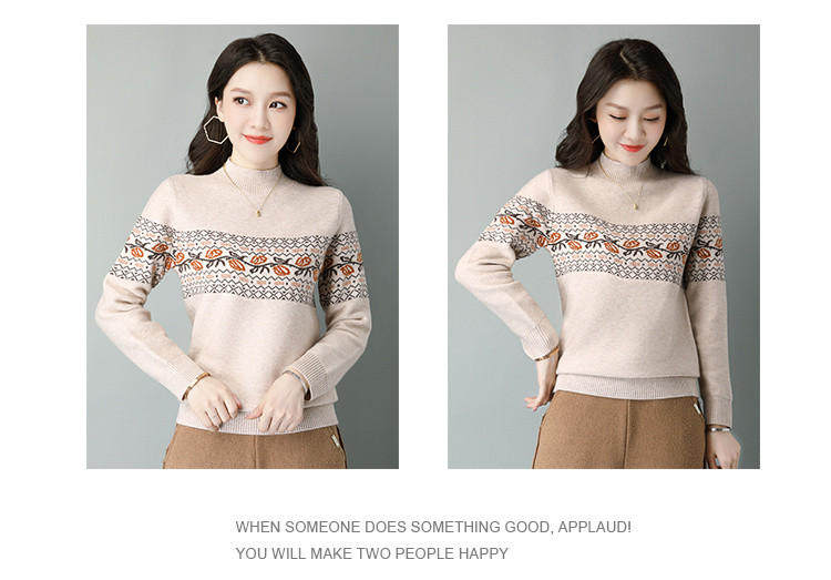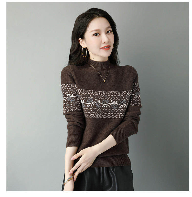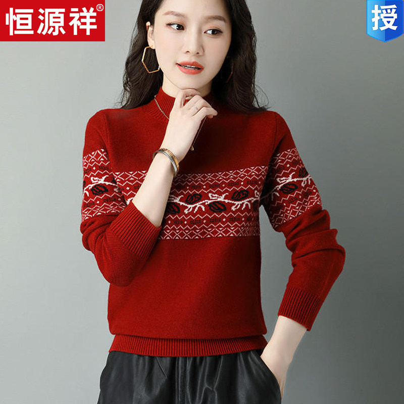 Демисезонный шерстяной свитер, базовая трикотажная рубашка, высокий воротник, с вышивкой, оверсайз