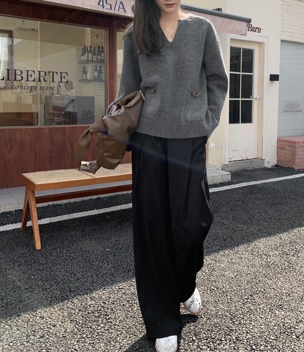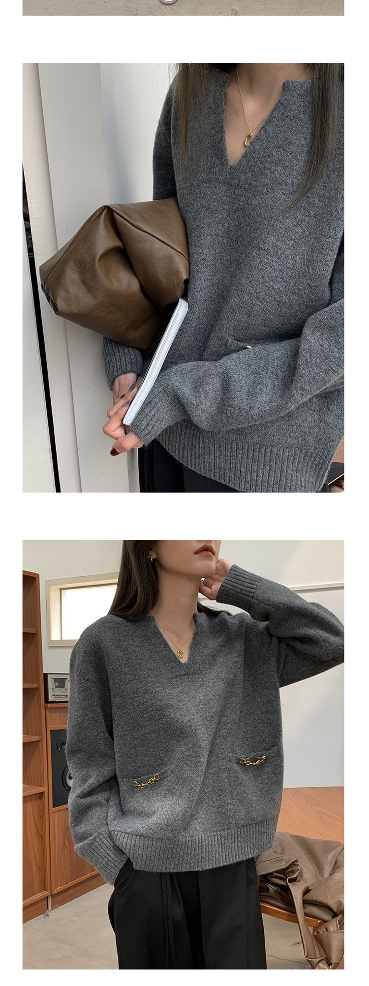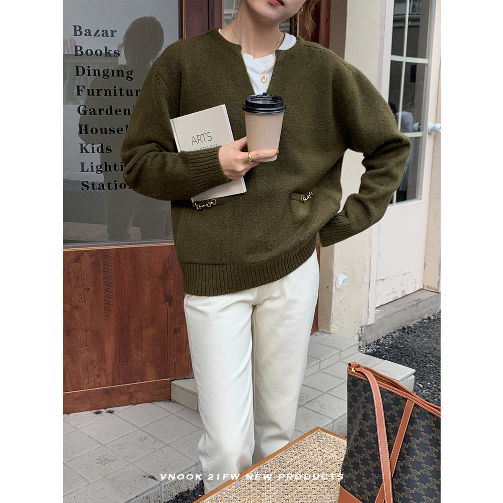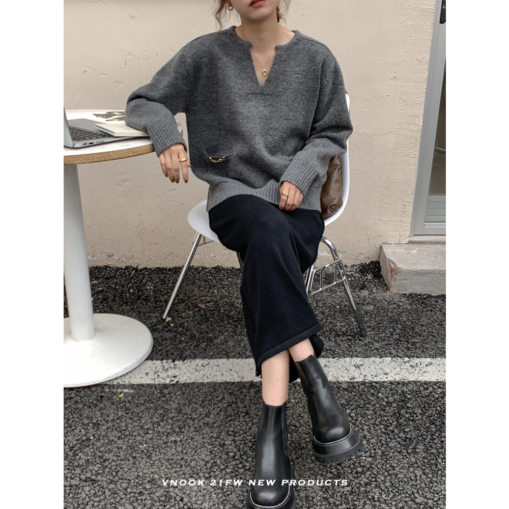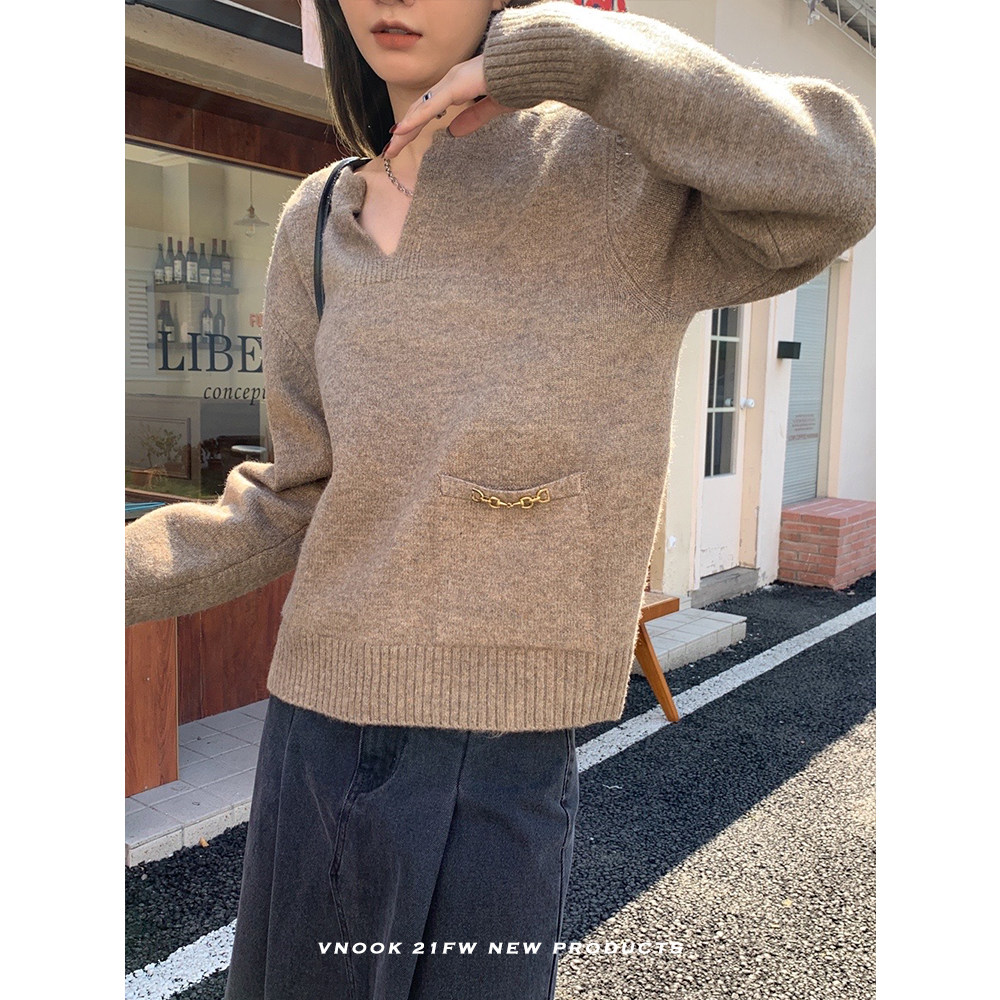 Осенний дизайнерский свитер, V-образный вырез, в корейском стиле, тренд сезона