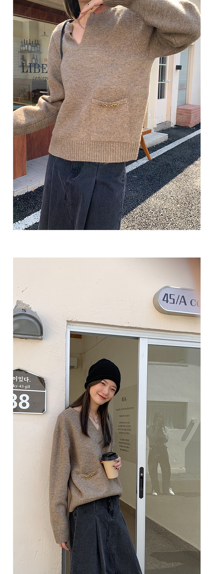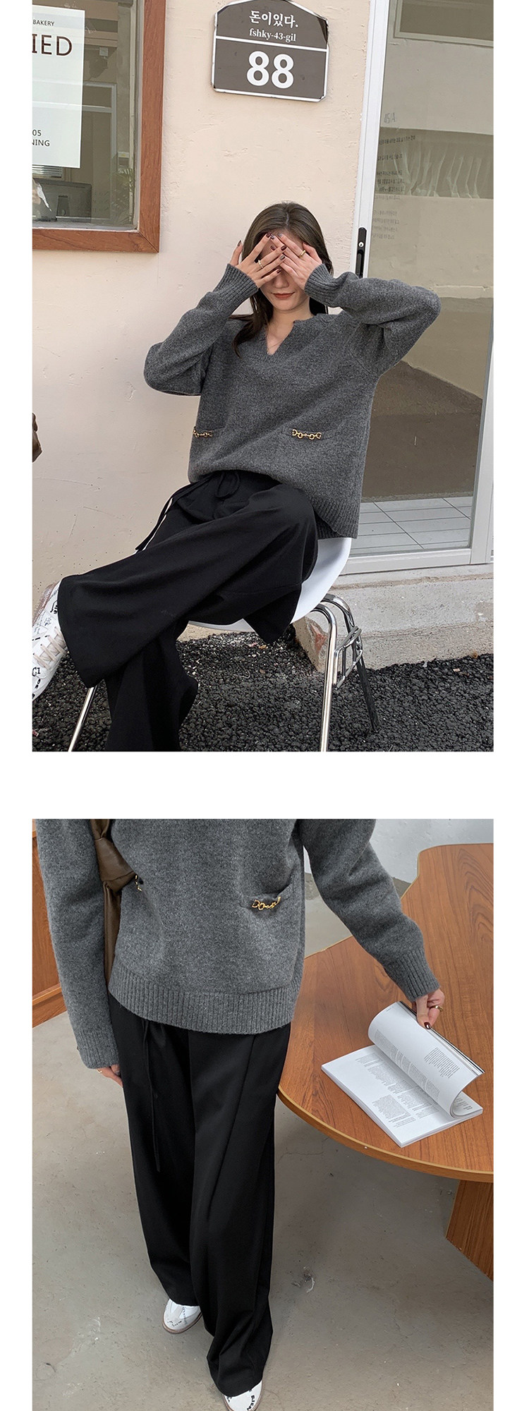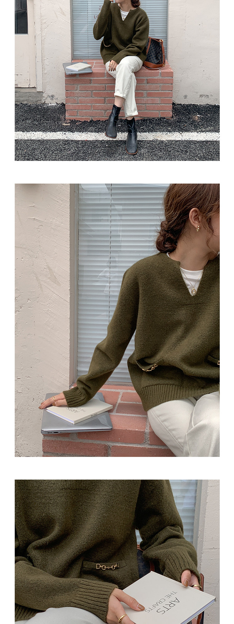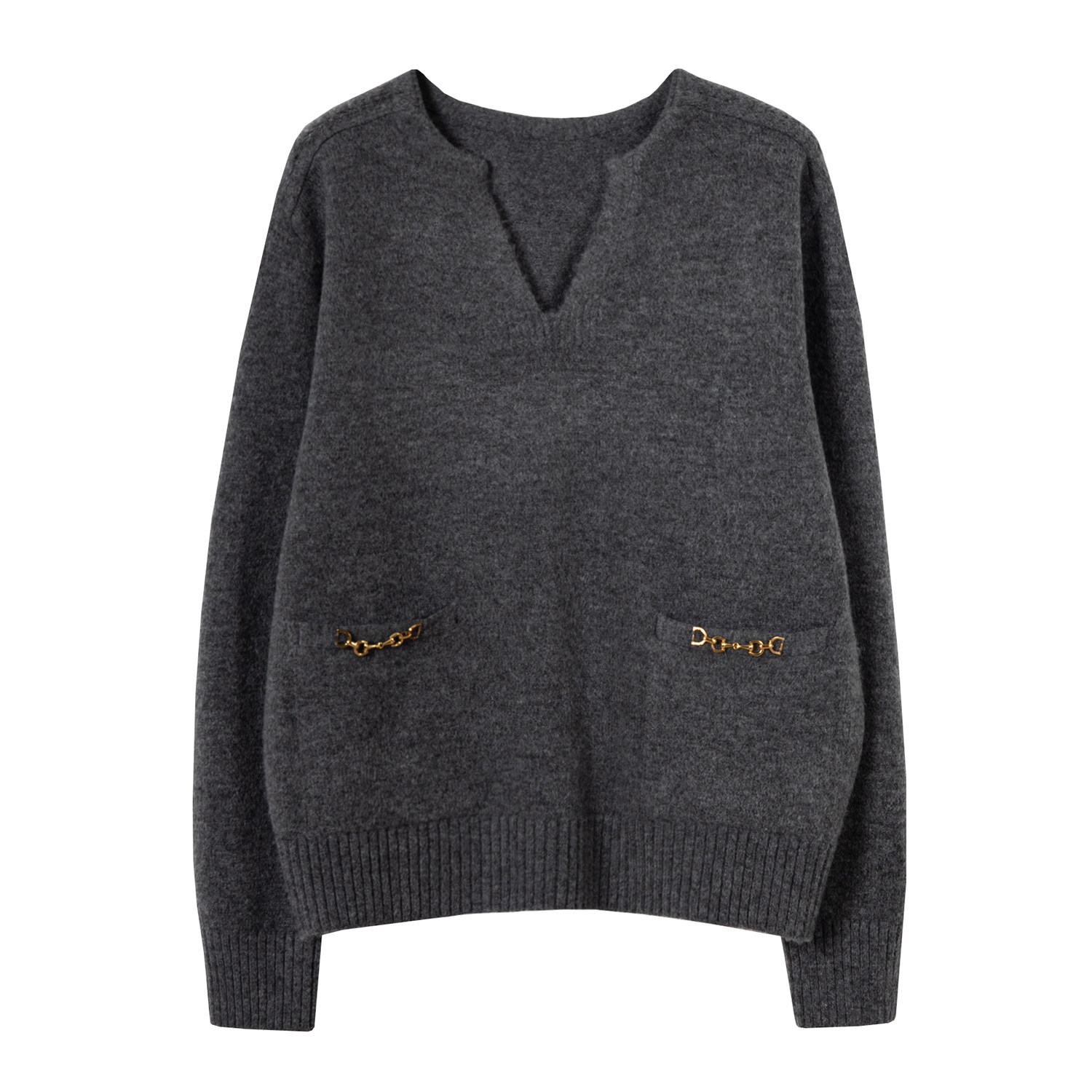 Осенний дизайнерский свитер, V-образный вырез, в корейском стиле, тренд сезона
