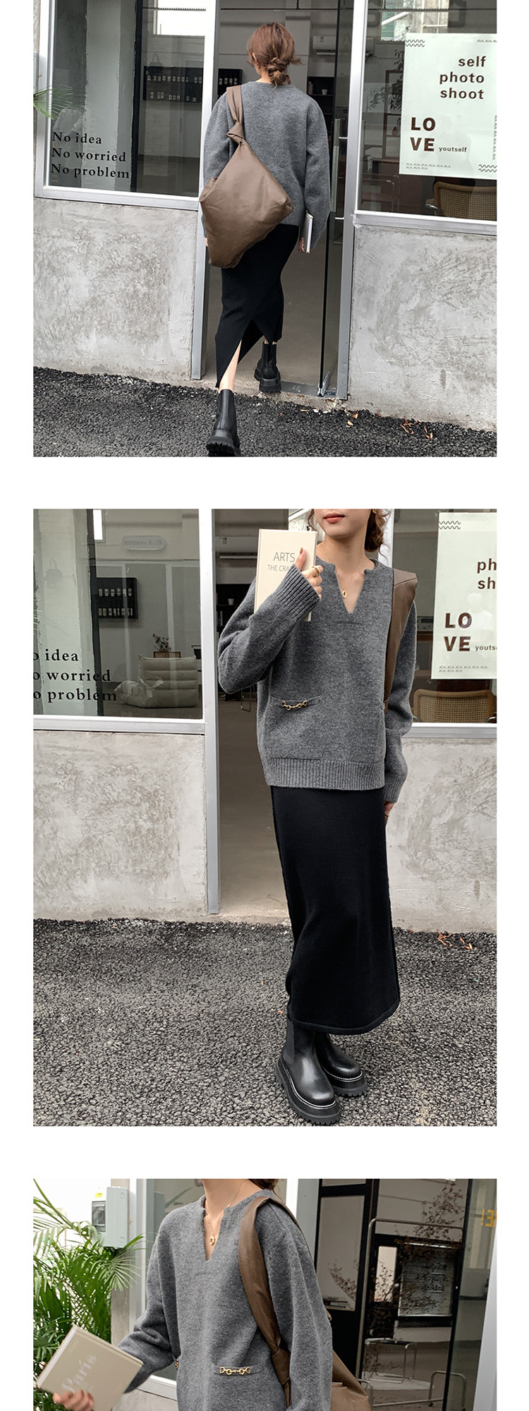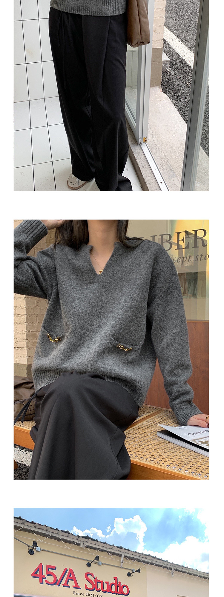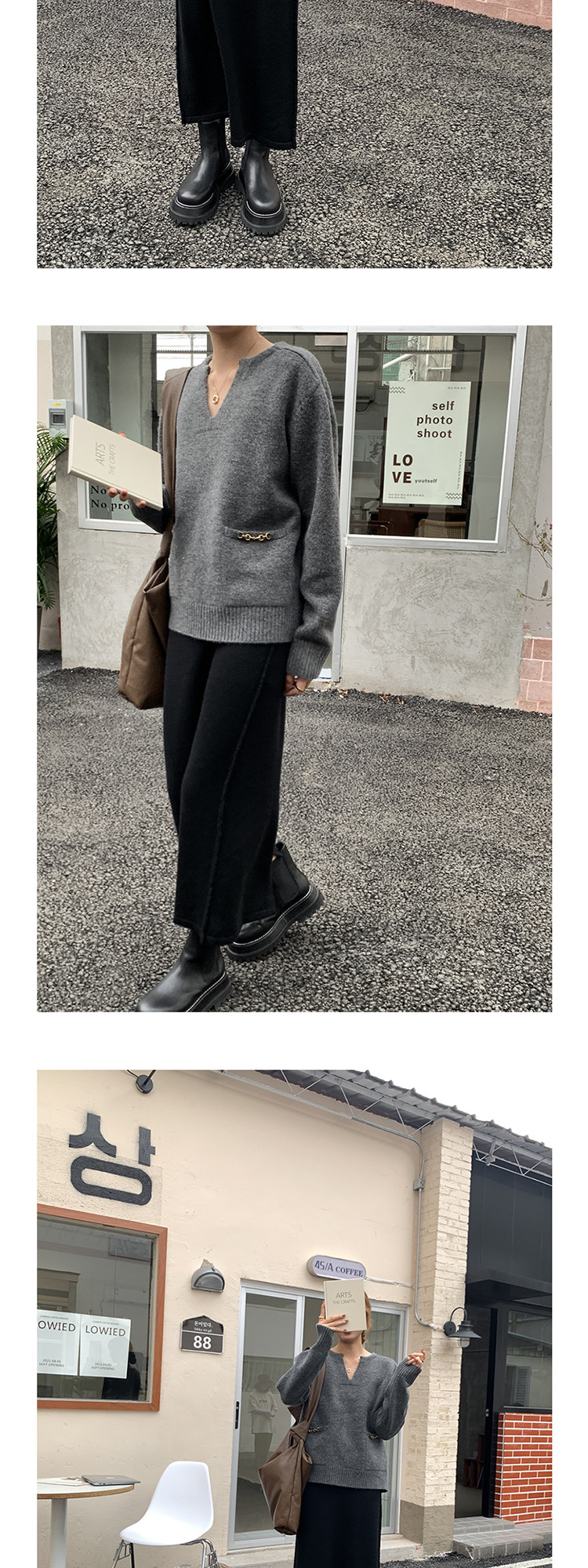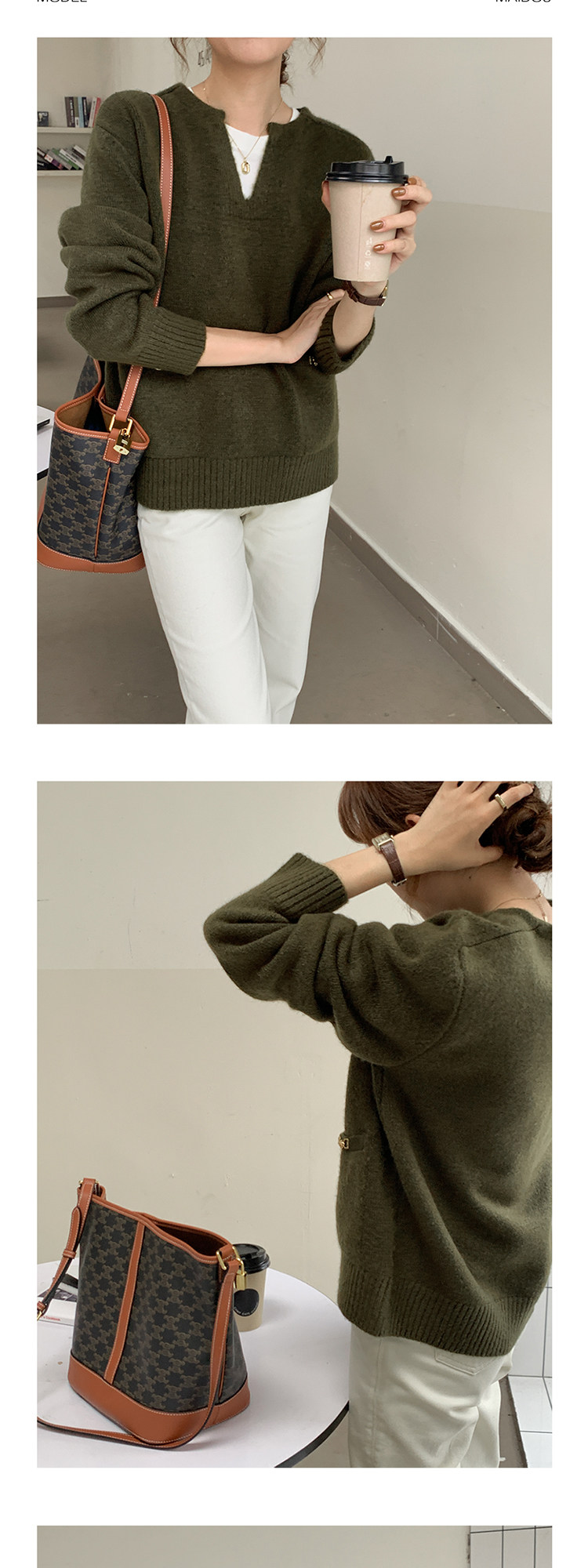 Осенний дизайнерский свитер, V-образный вырез, в корейском стиле, тренд сезона
