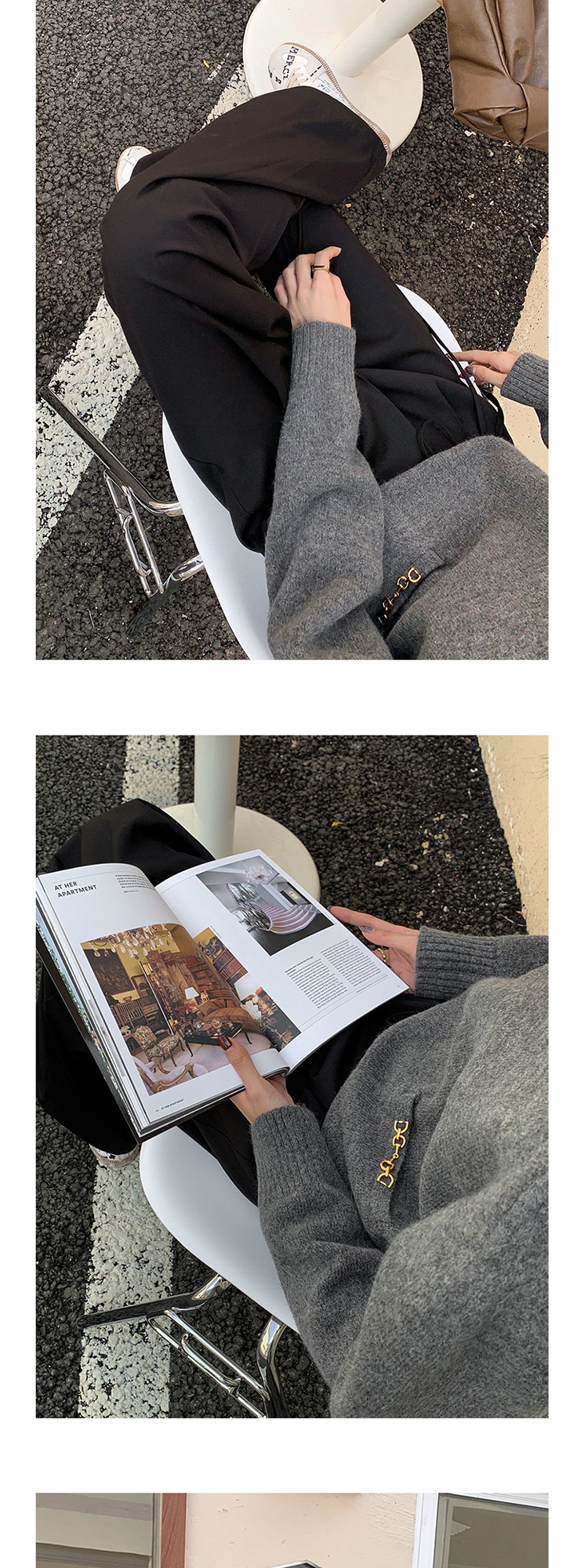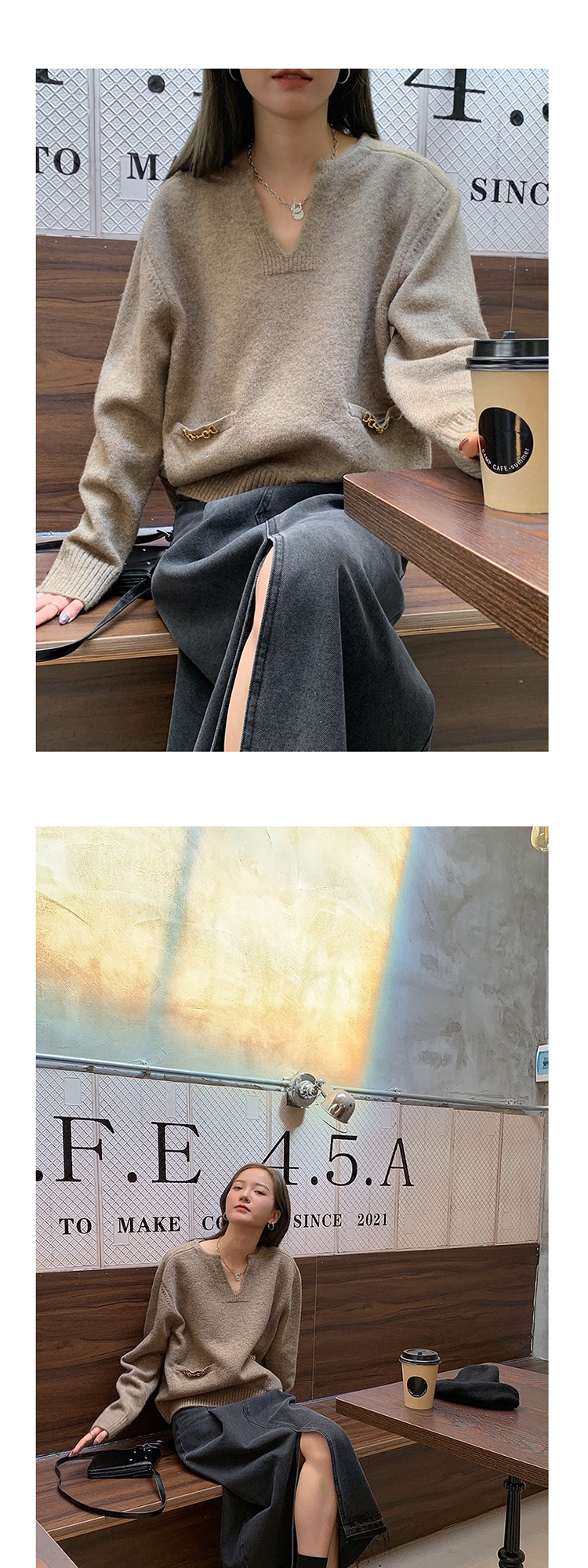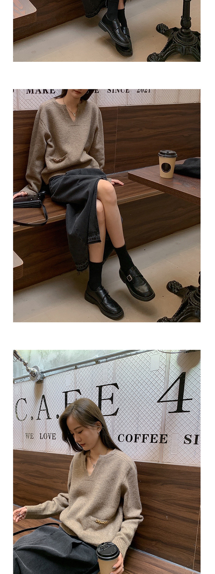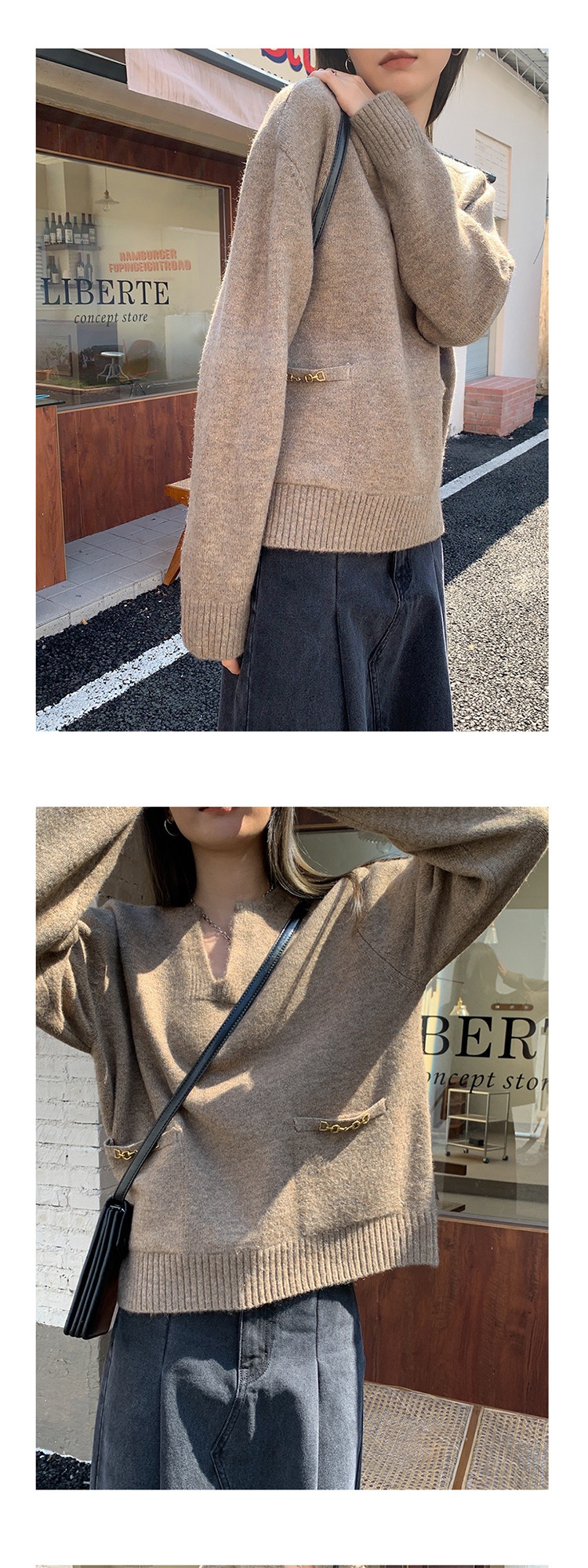 Осенний дизайнерский свитер, V-образный вырез, в корейском стиле, тренд сезона