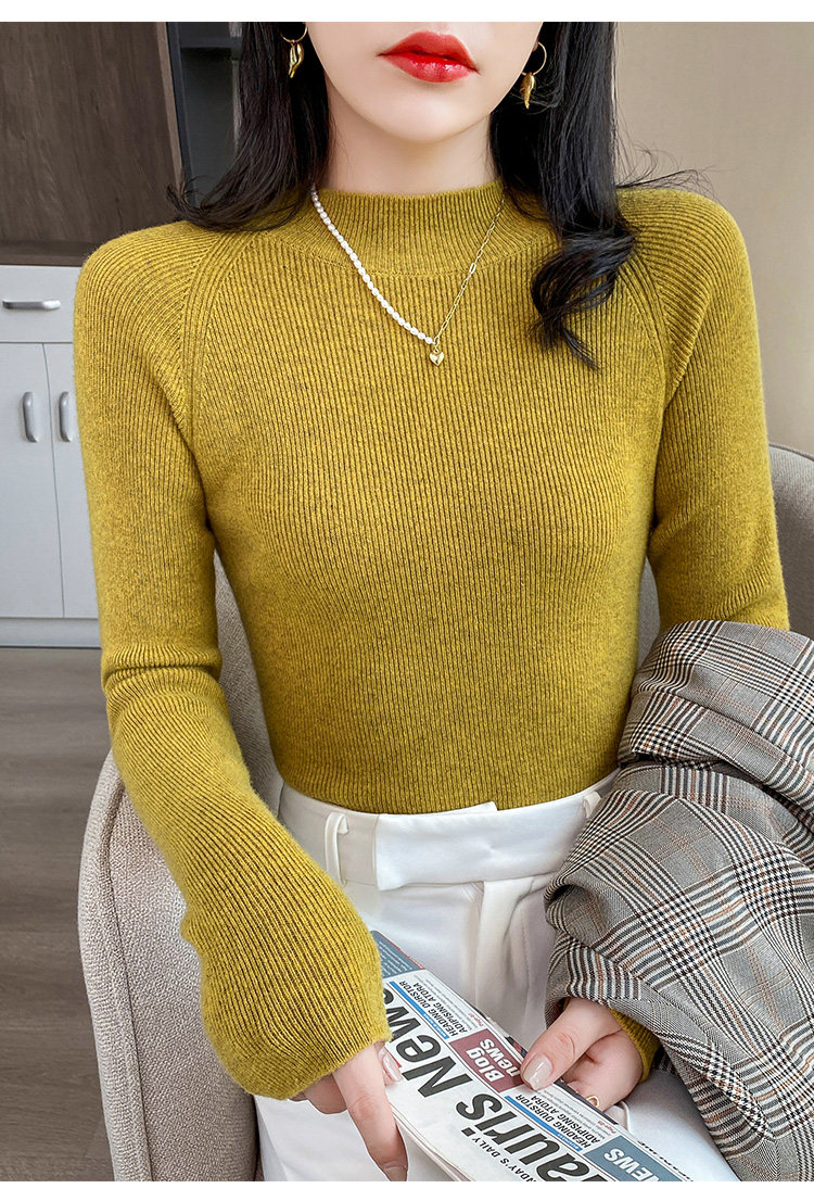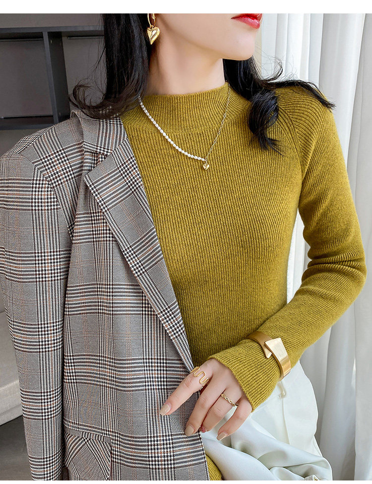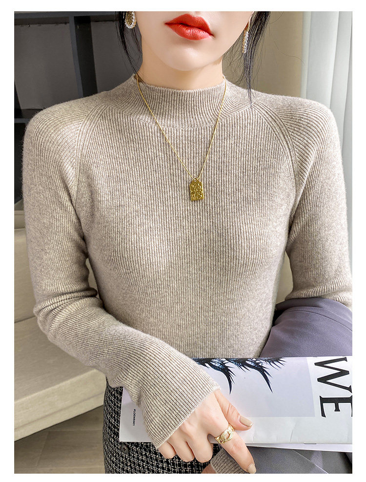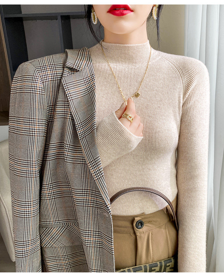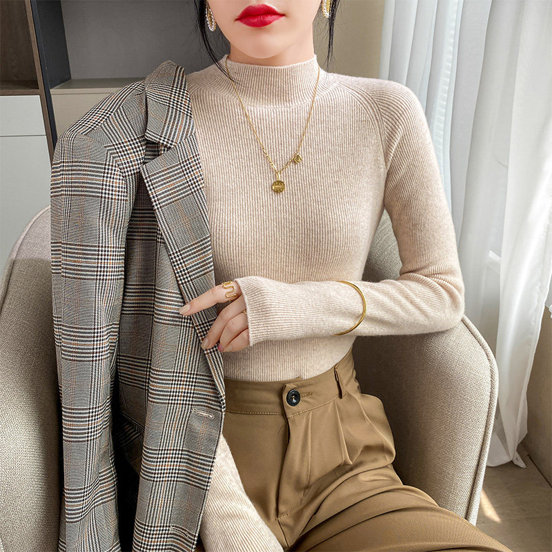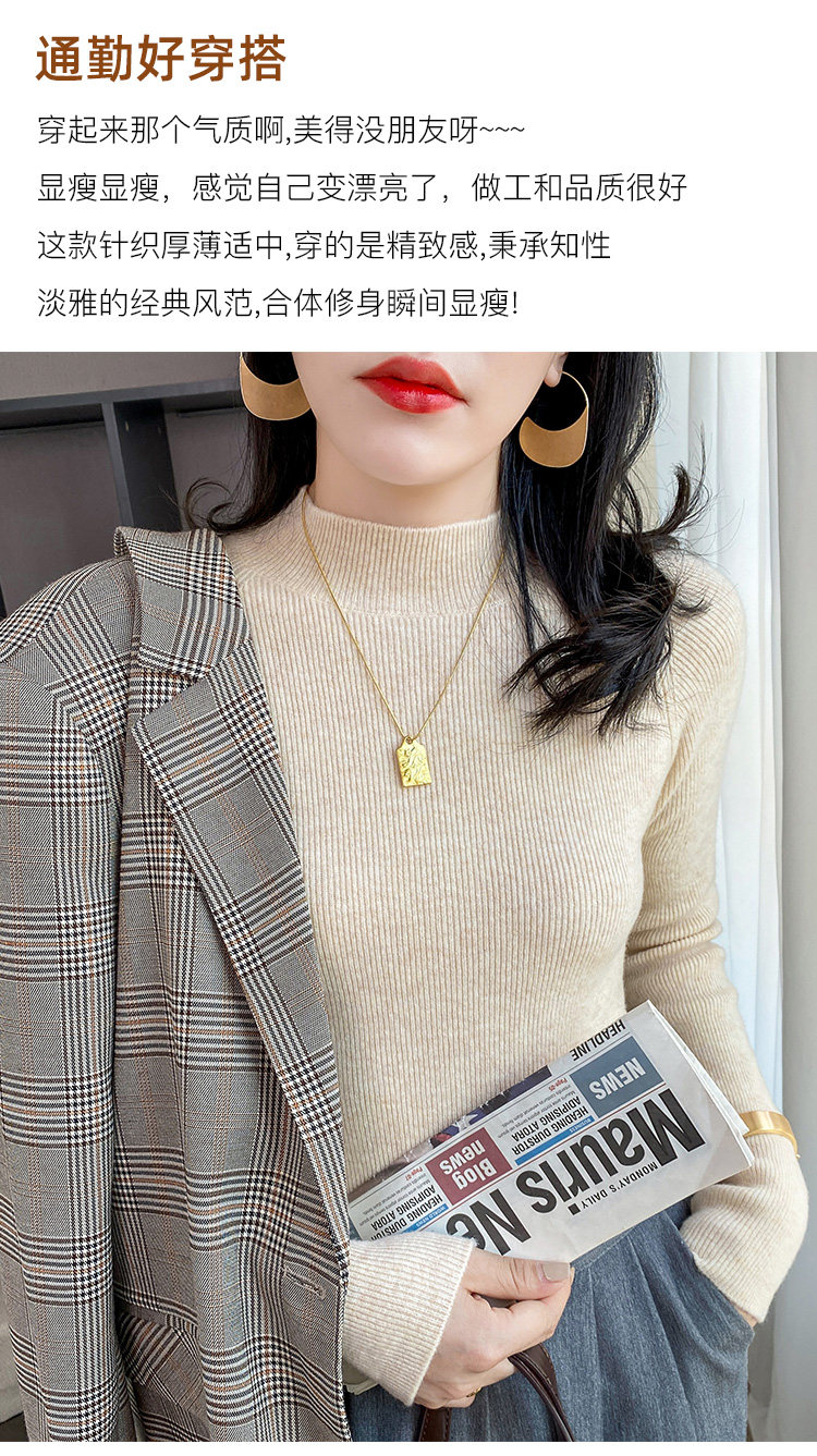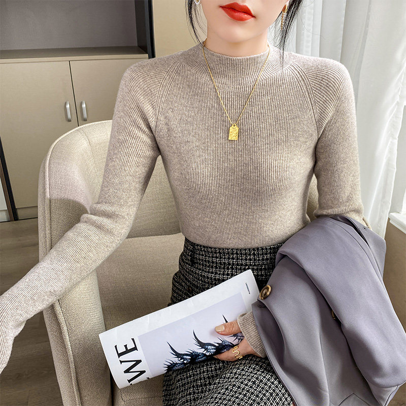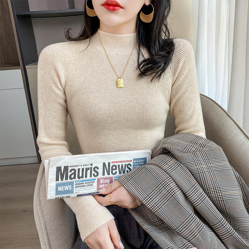 Кашемировый трикотажный осенний базовый приятный телу свитер, высокий воротник, облегающий крой, в западном стиле, в обтяжку