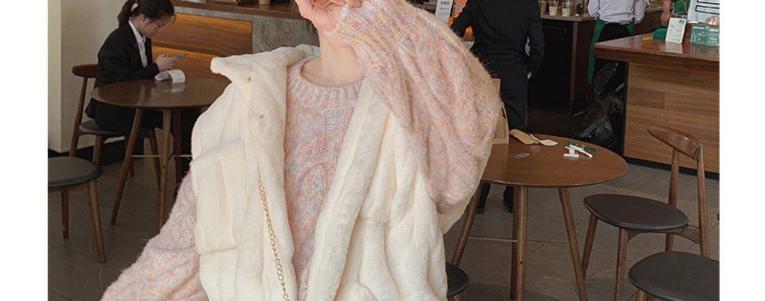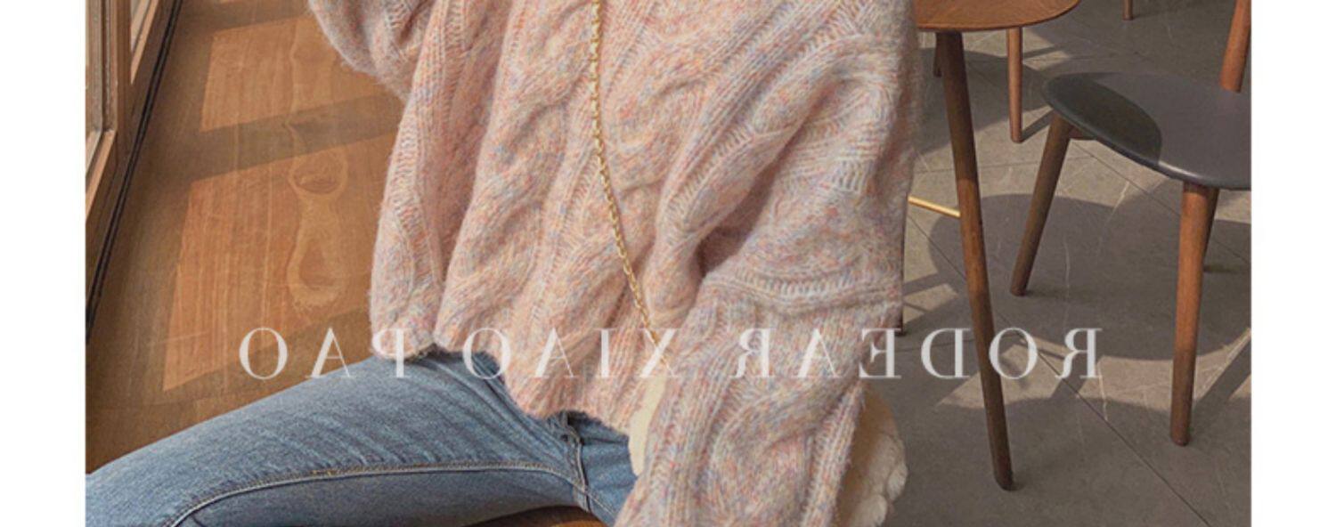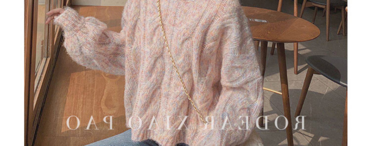 Розовый трикотажный демисезонный свитер, 2024 года, популярно в интернете, изысканный стиль, в корейском стиле