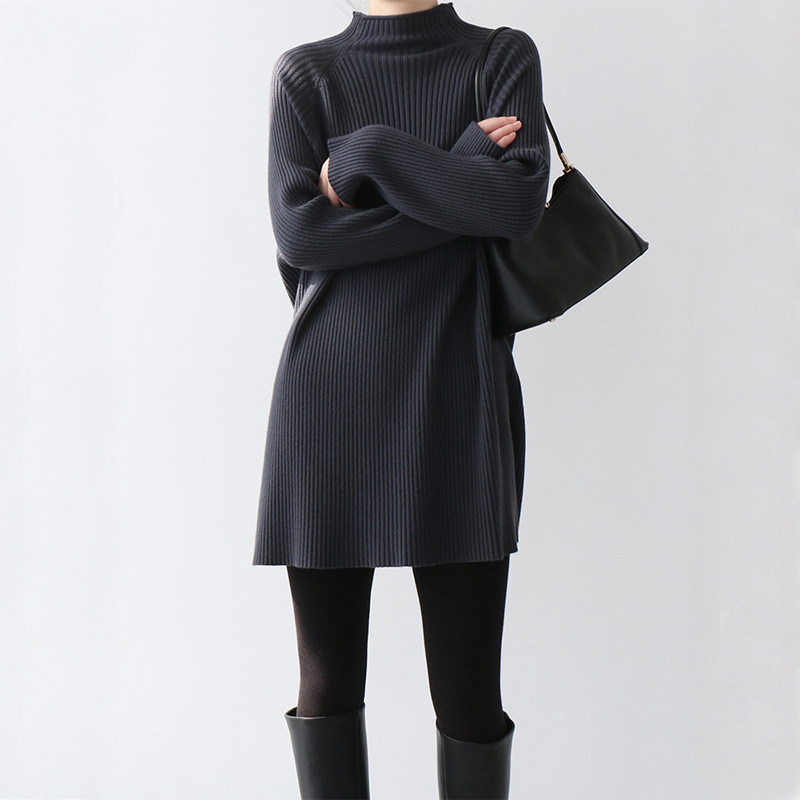 Длинное шерстяное платье, юбка, трикотажный свитер, средней длины, увеличенная толщина