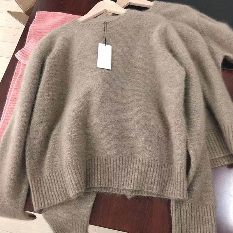 Кашемировый демисезонный базовый шерстяной свитер с круглым воротником, оверсайз, увеличенная толщина