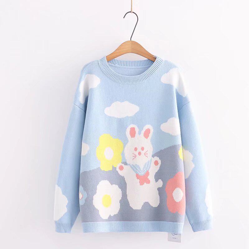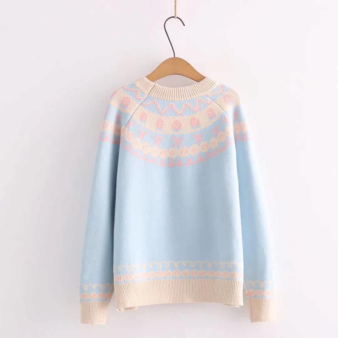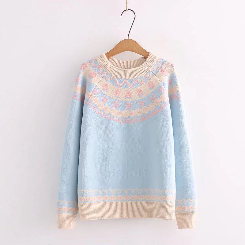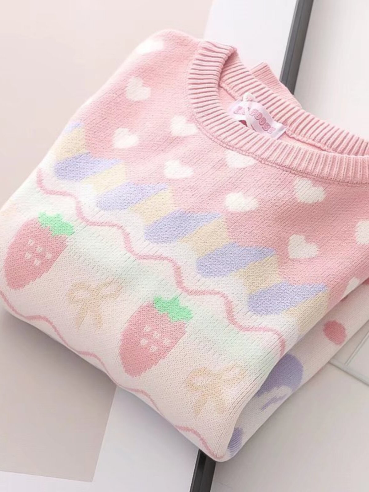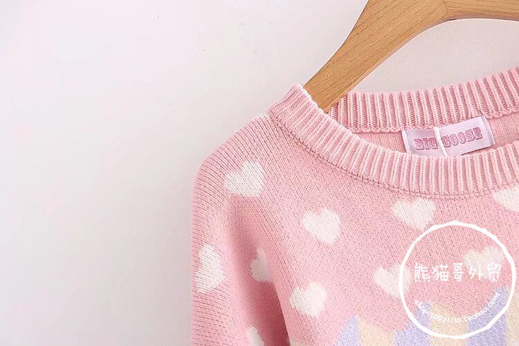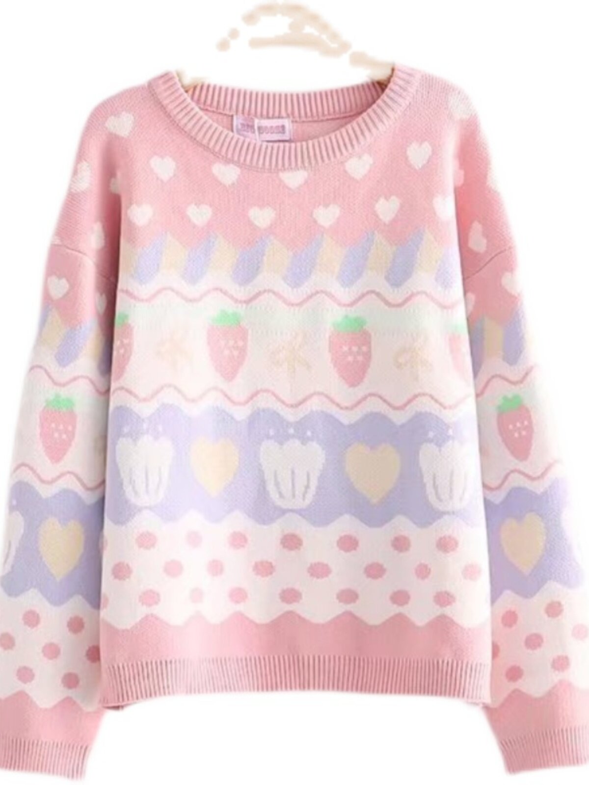 Японская школьная юбка, милая розовая свежая клубника, милый трикотажный свитер, лонгслив