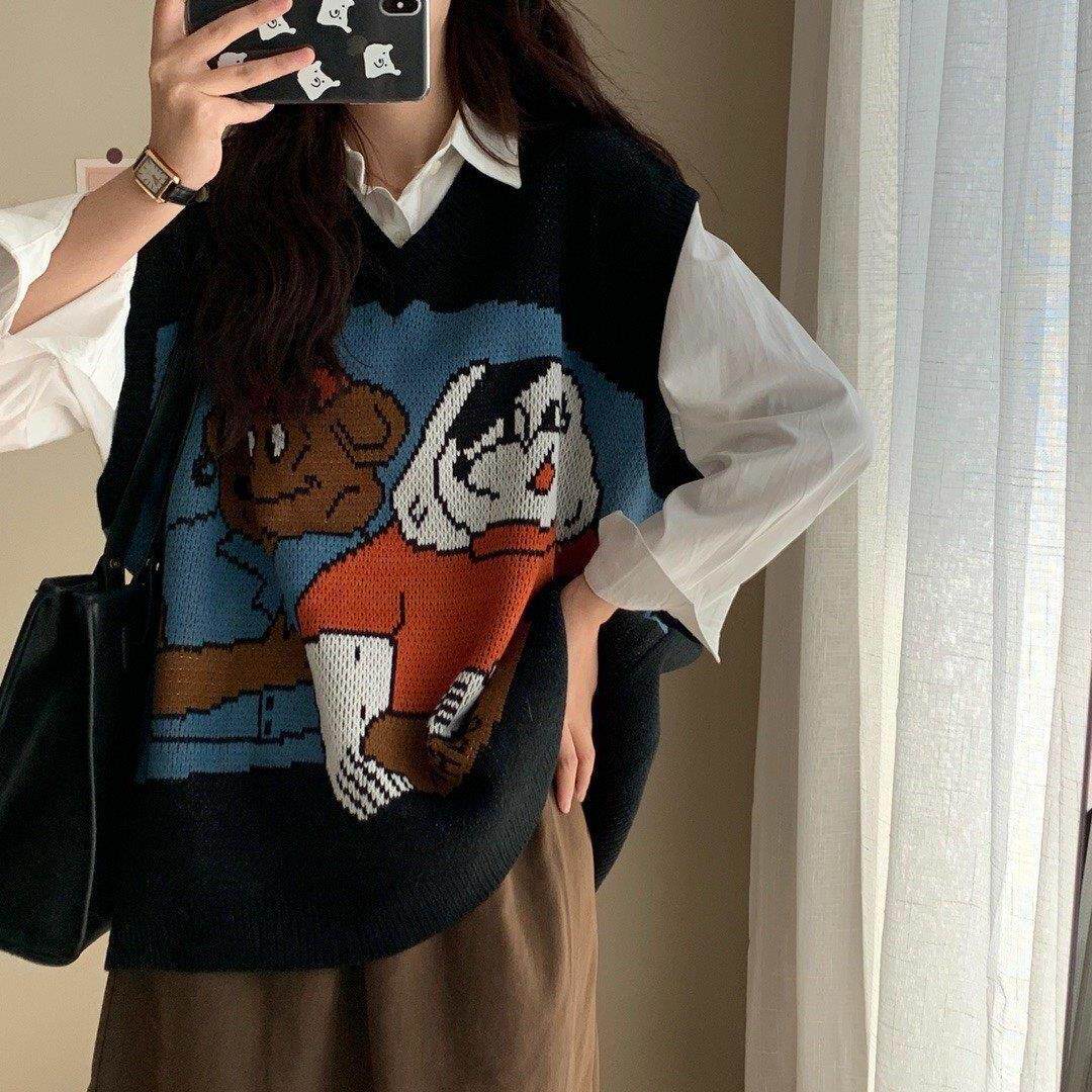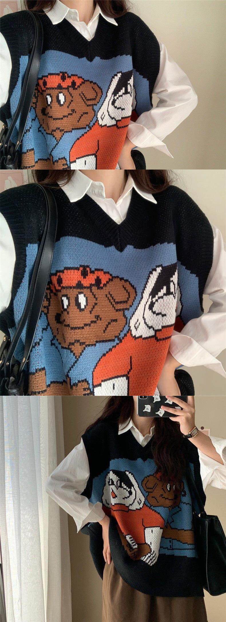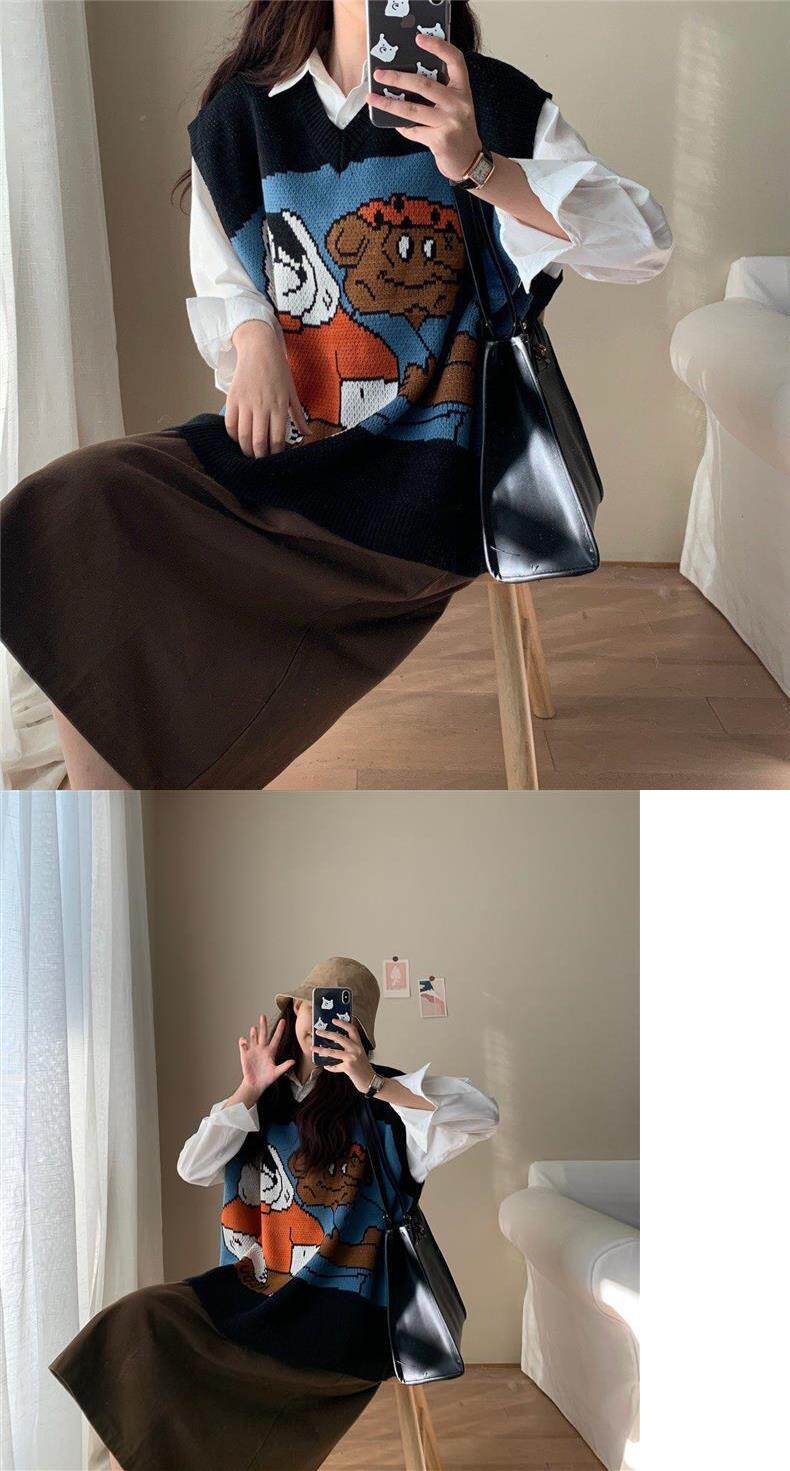 Осенний трикотажный комплект, свитер, жилет для школьников, рубашка, оверсайз