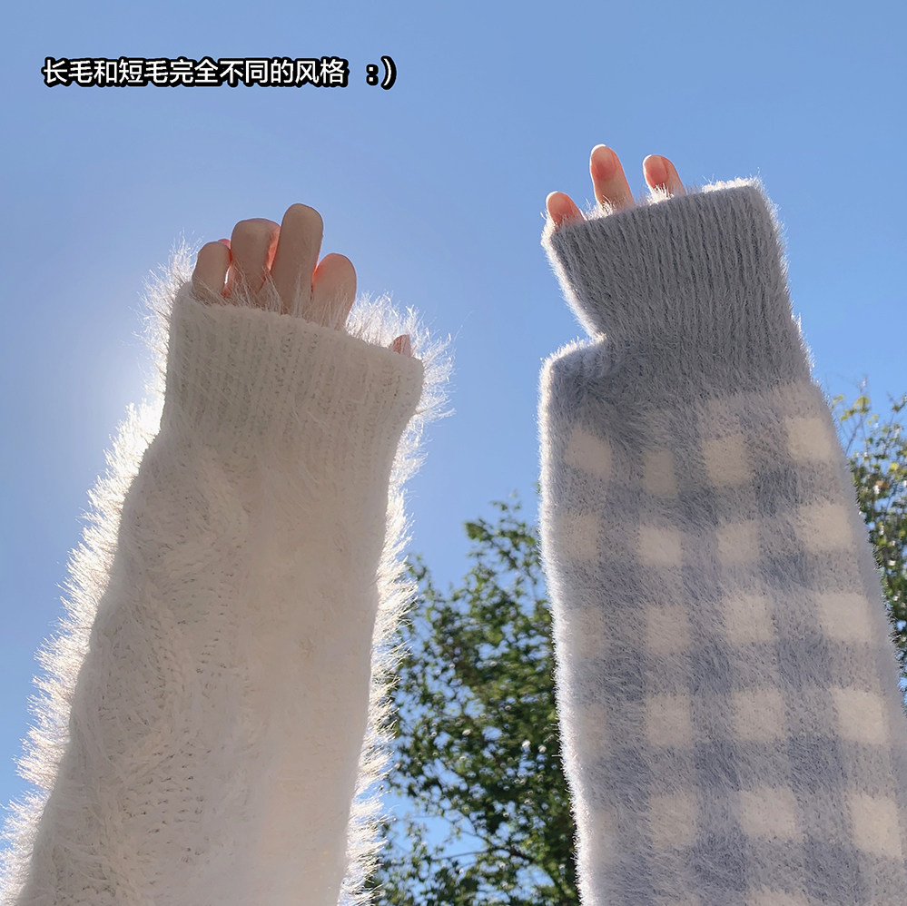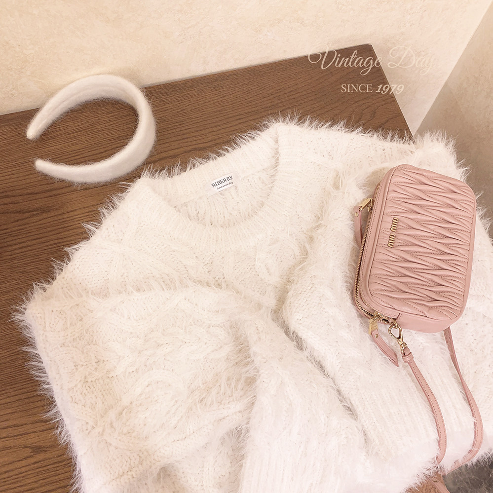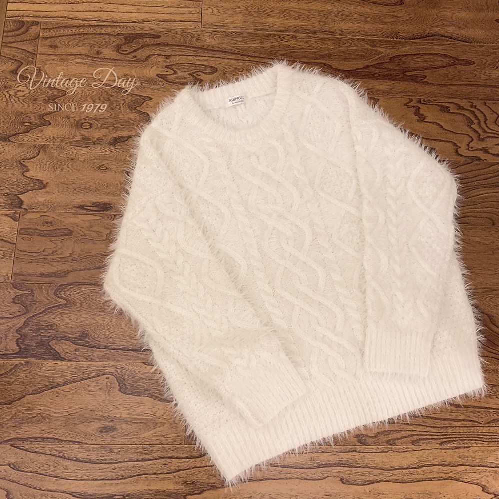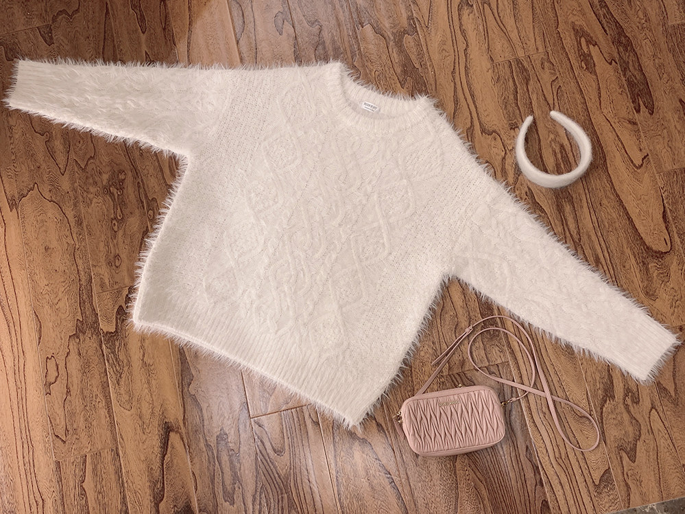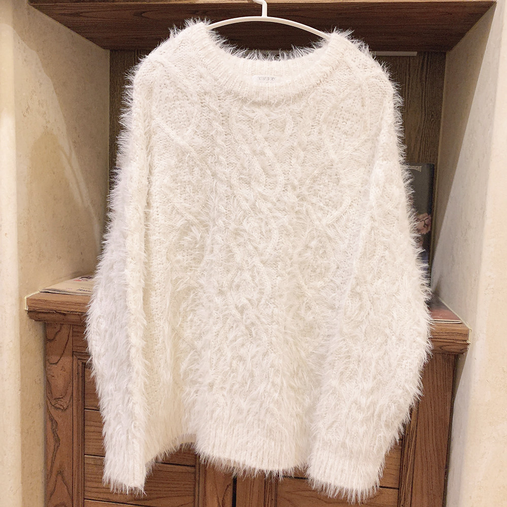 Бархатный ретро трехмерный белый трикотажный свитер, искусственный мех