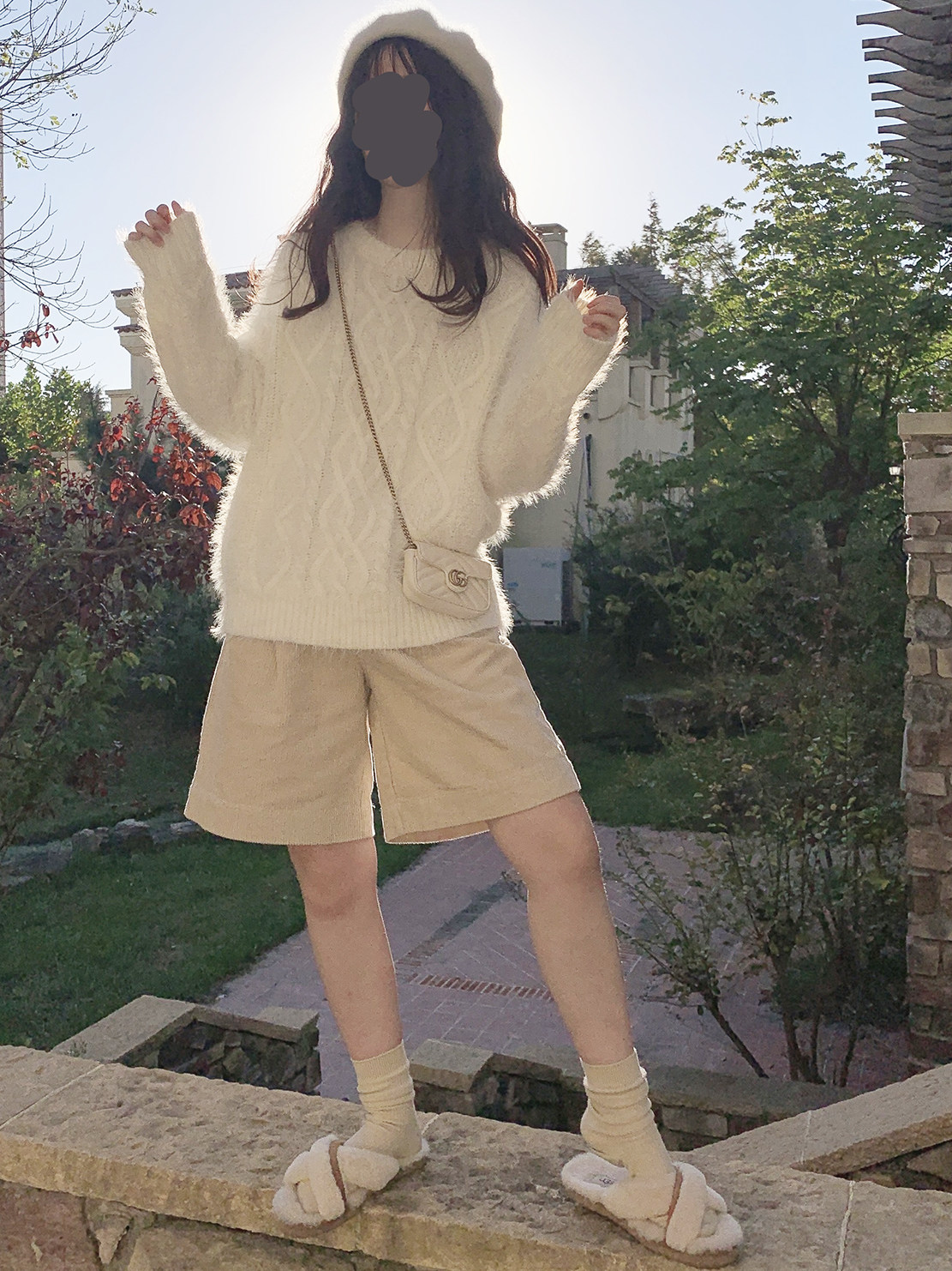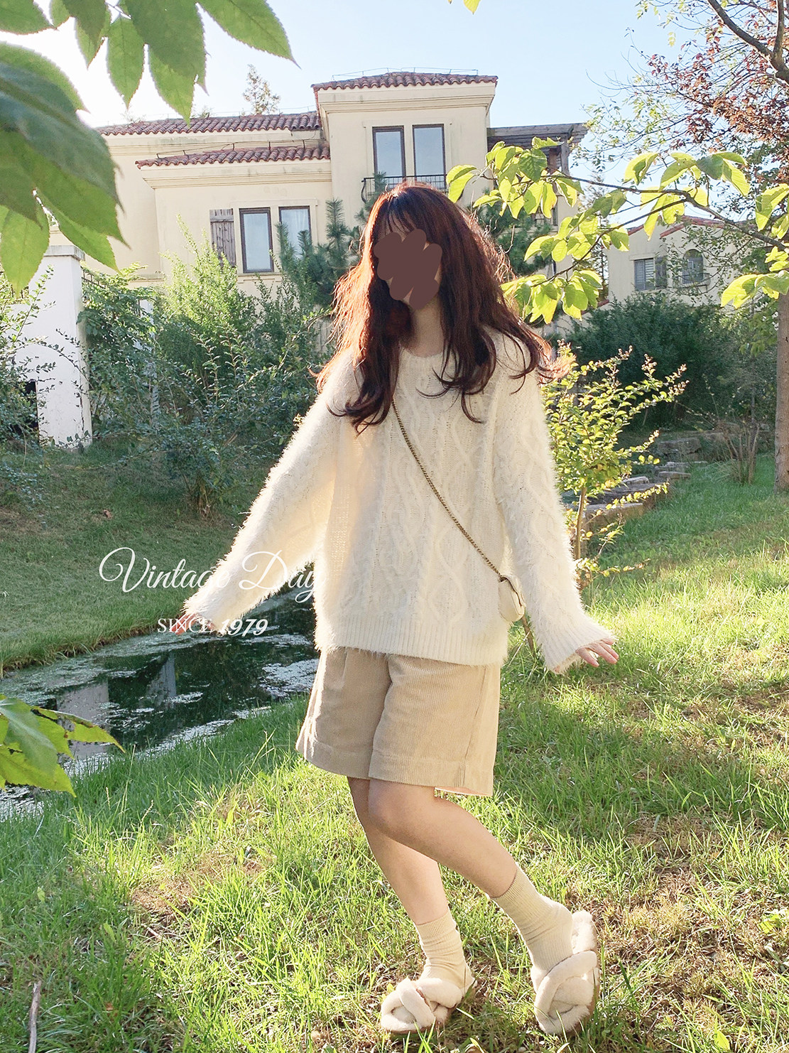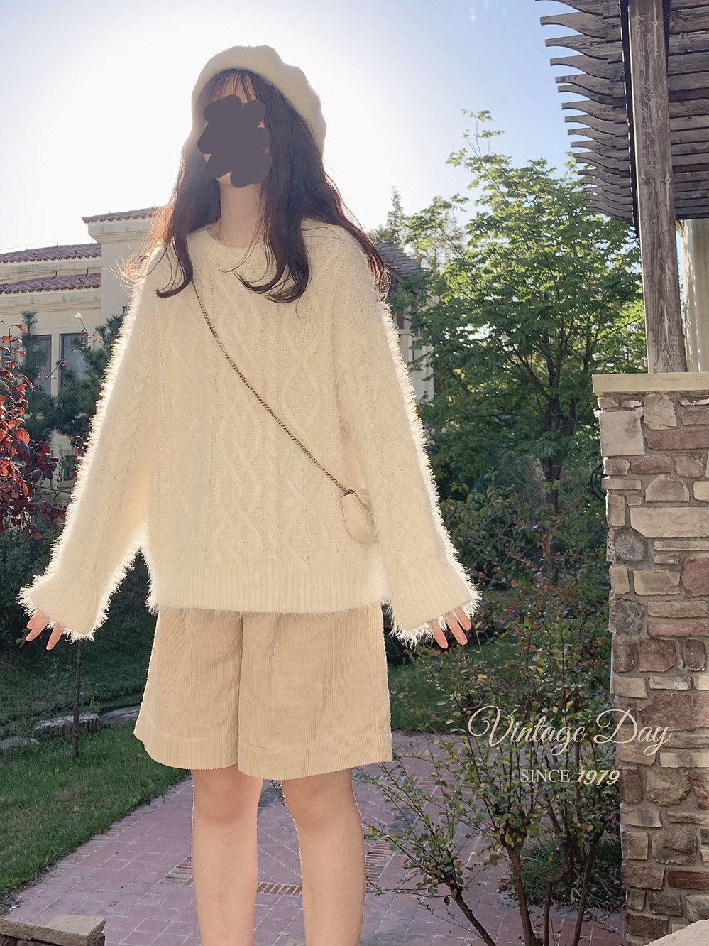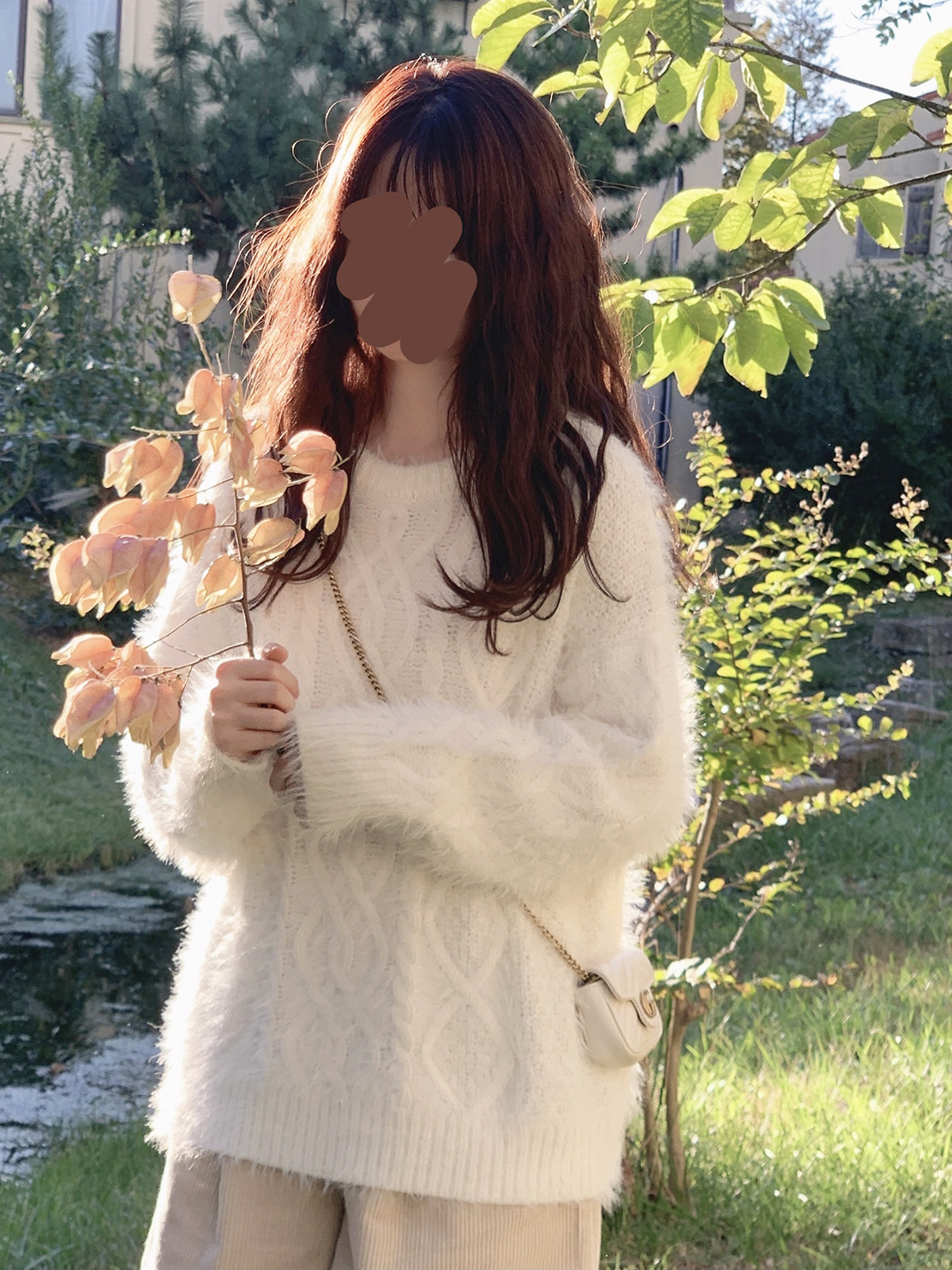 Бархатный ретро трехмерный белый трикотажный свитер, искусственный мех