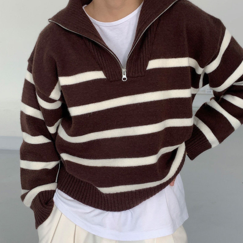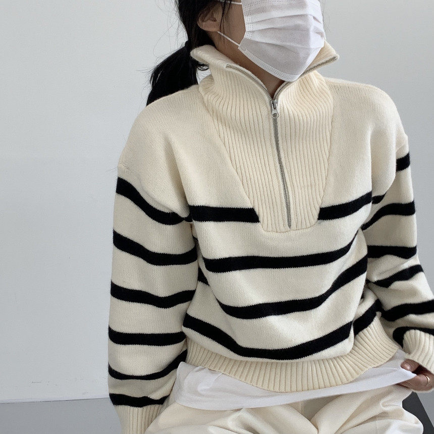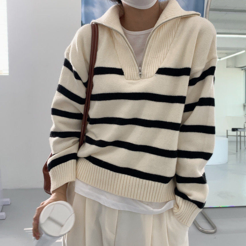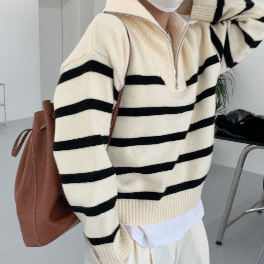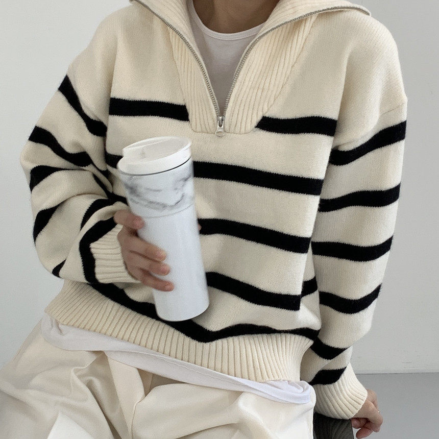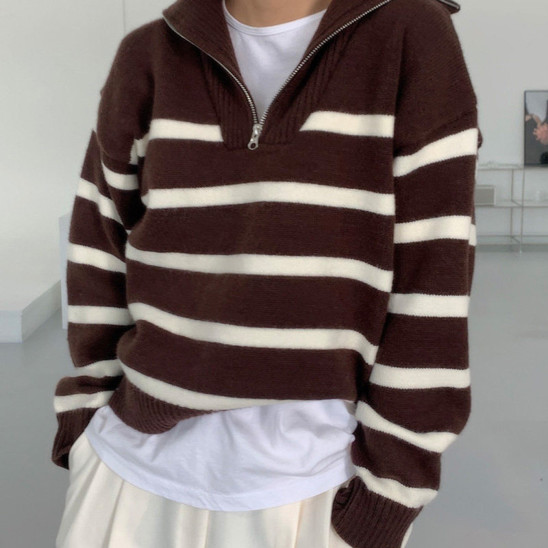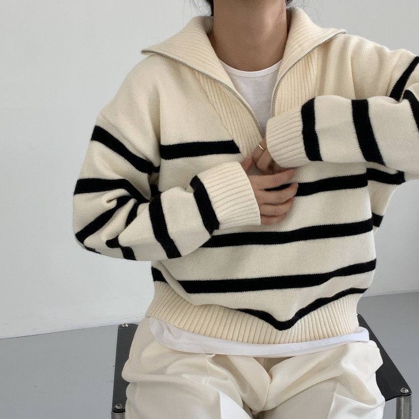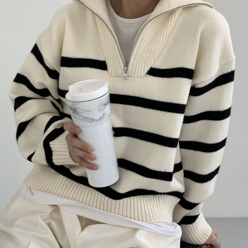 Демисезонная дизайнерская цепь с молнией, трикотажный лонгслив, нарукавники, свитер, в корейском стиле, оверсайз