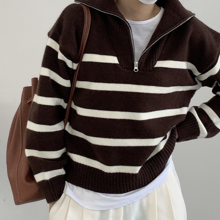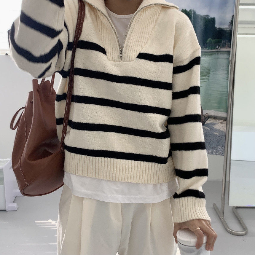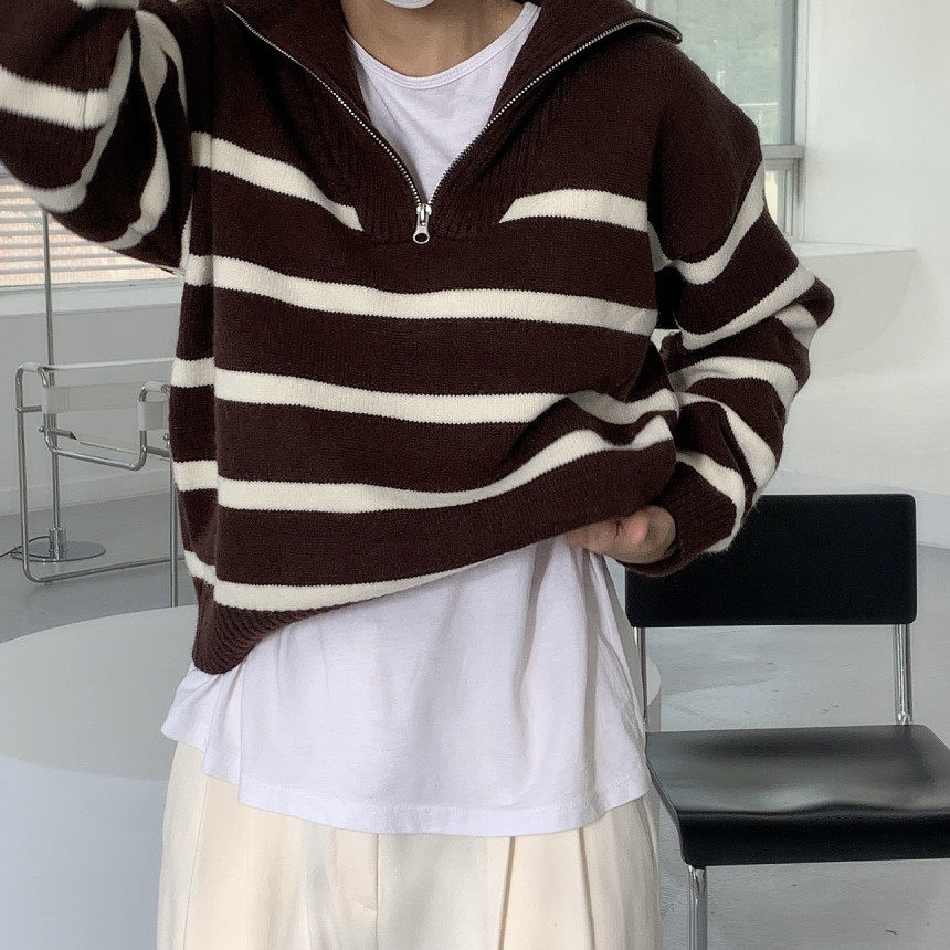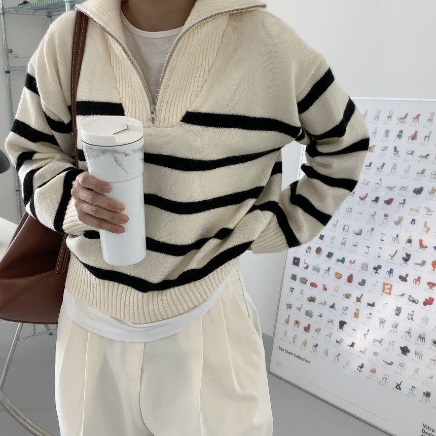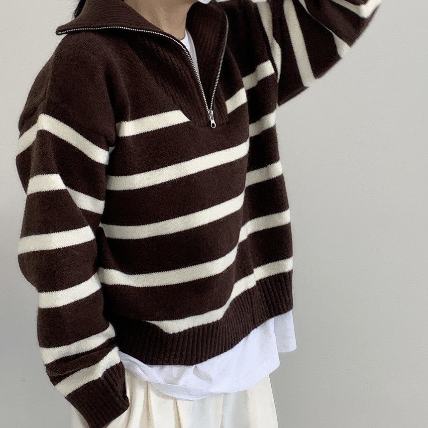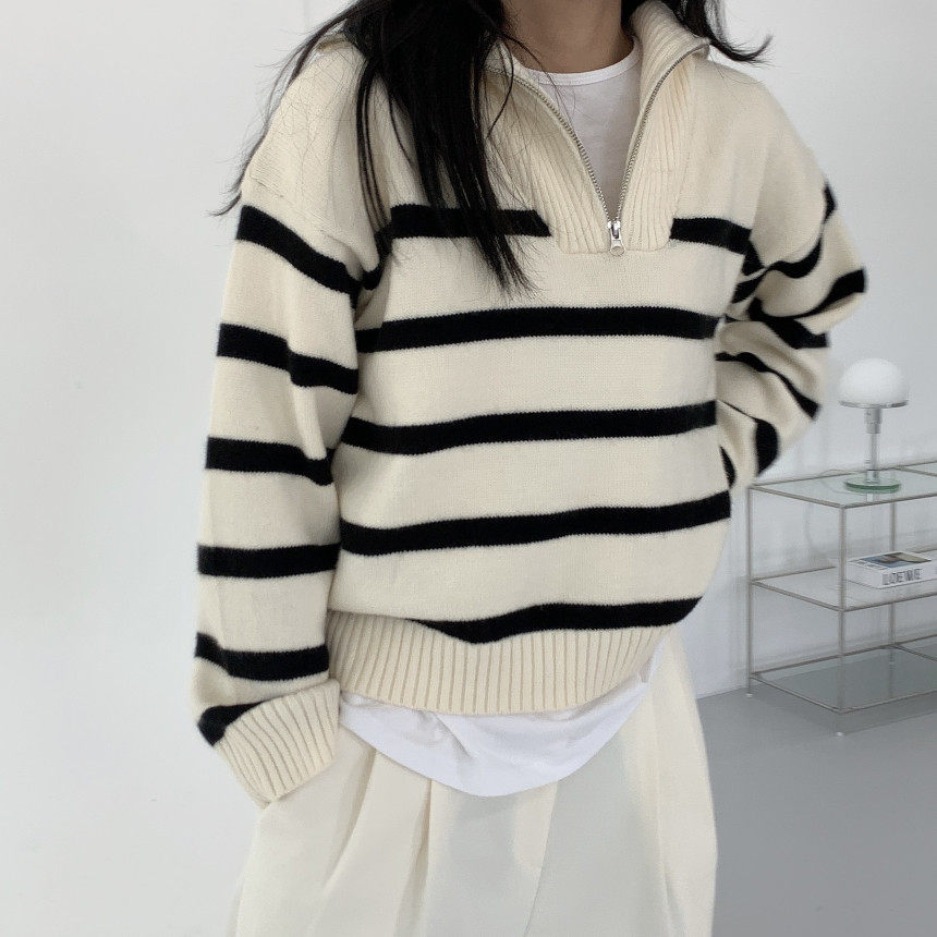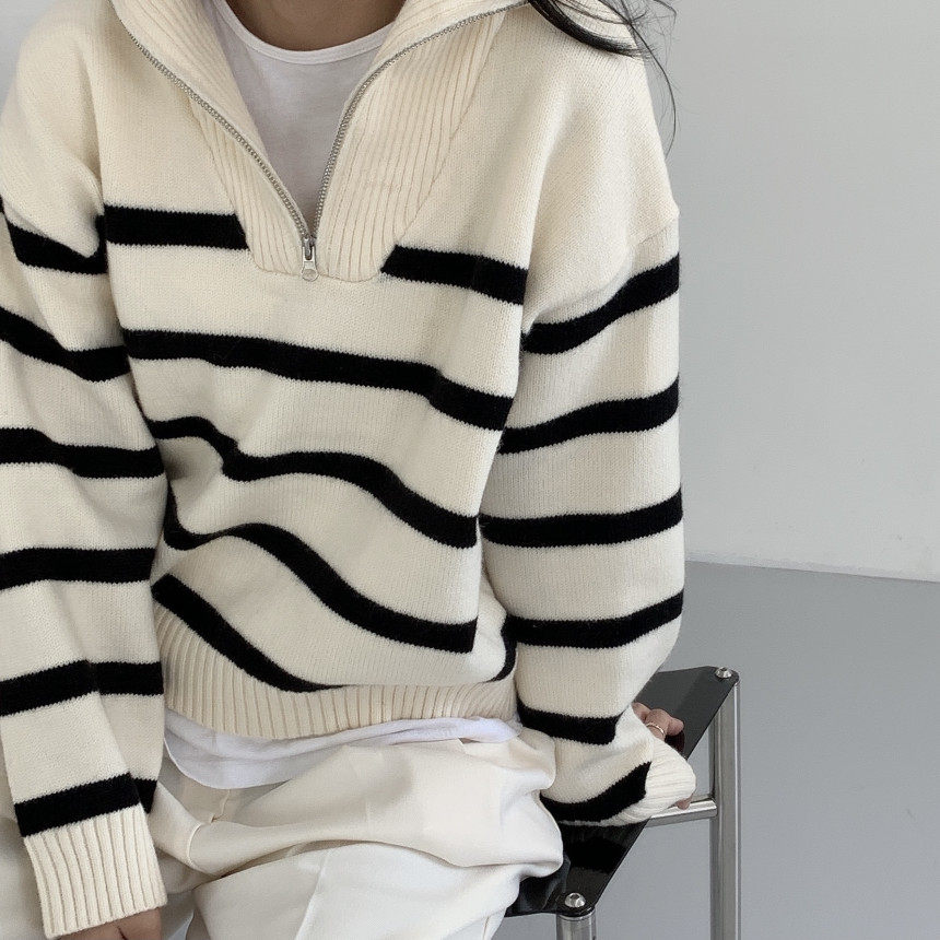 Демисезонная дизайнерская цепь с молнией, трикотажный лонгслив, нарукавники, свитер, в корейском стиле, оверсайз