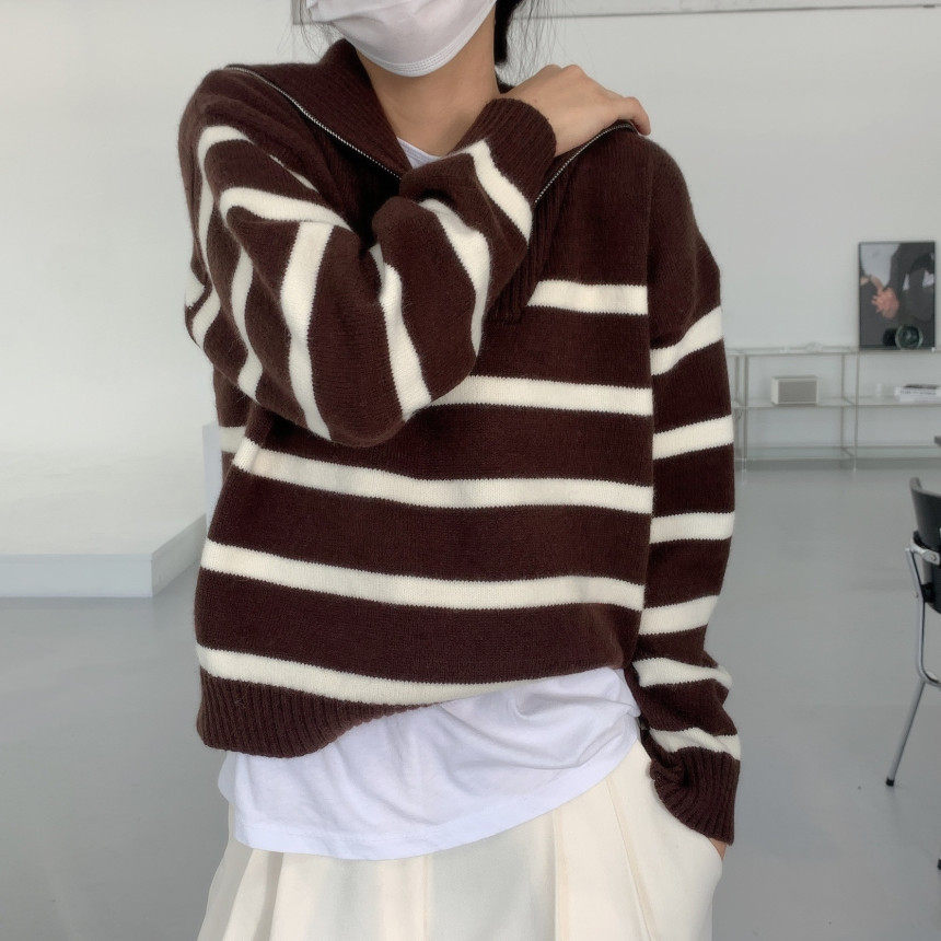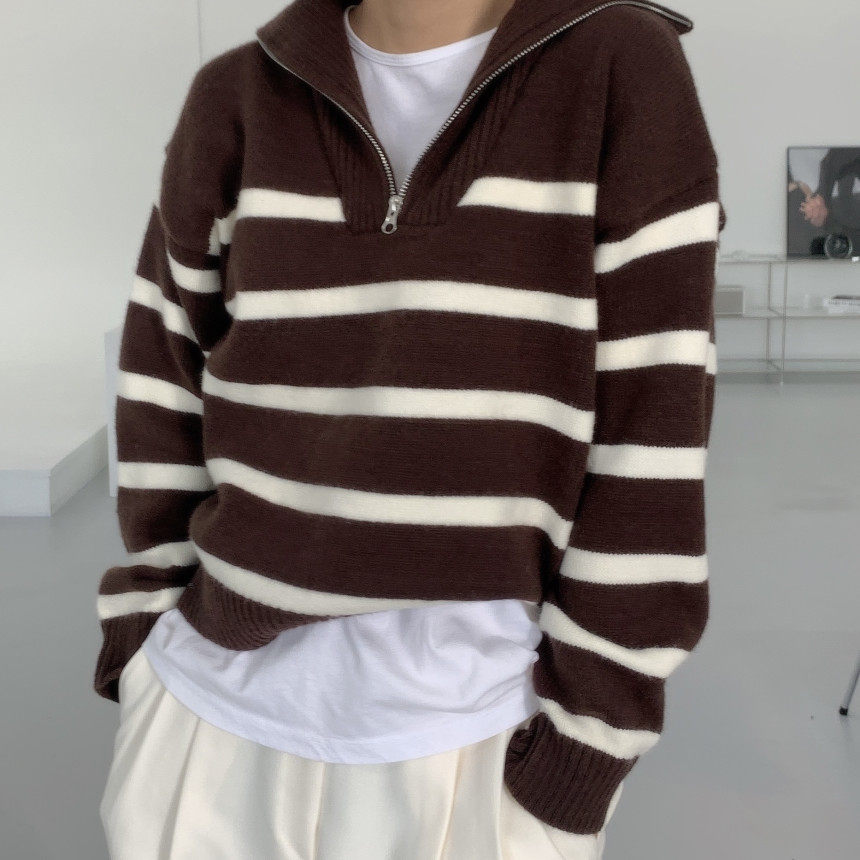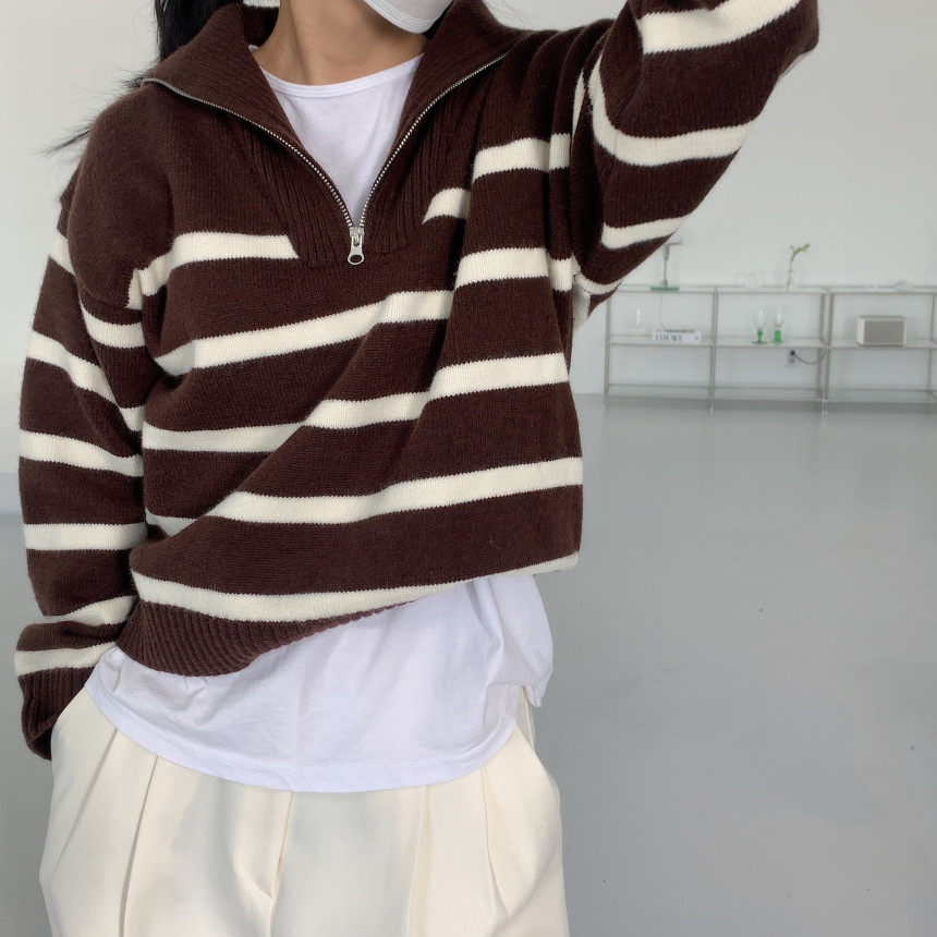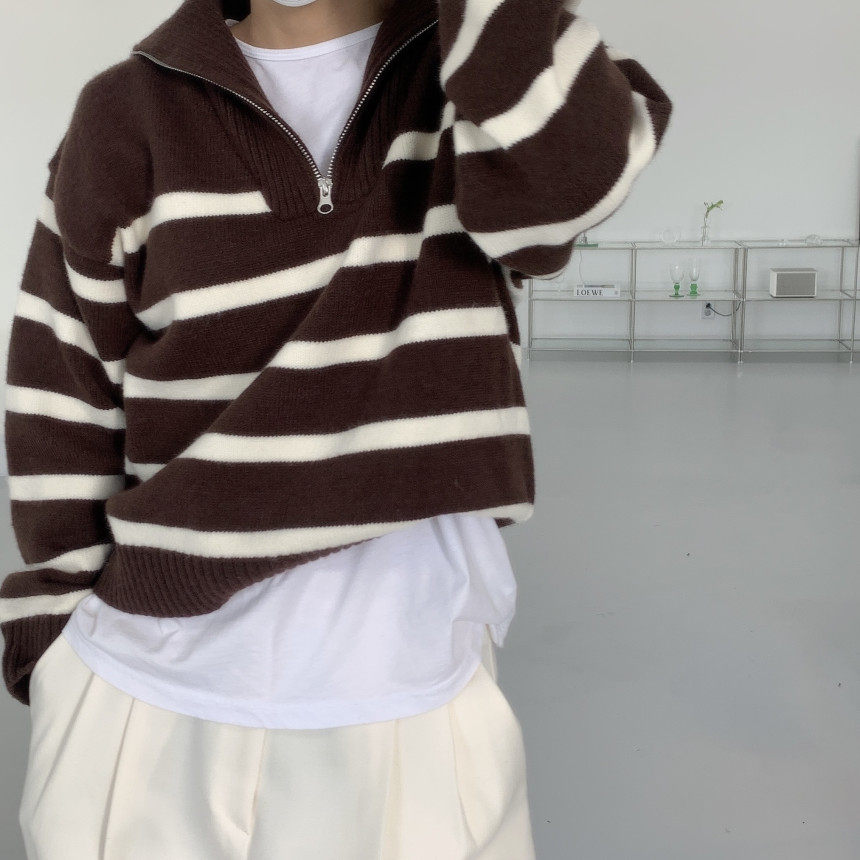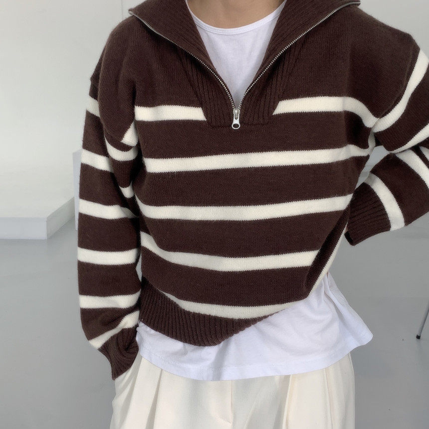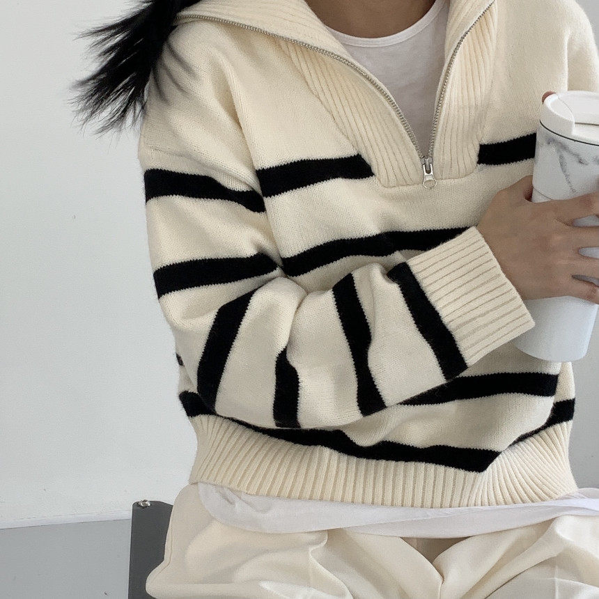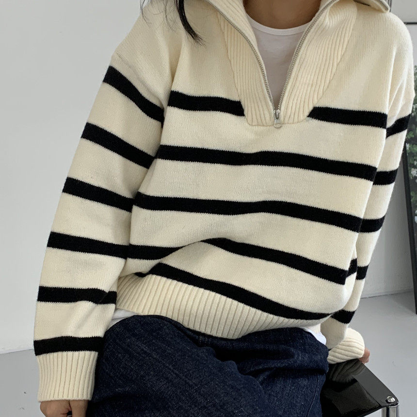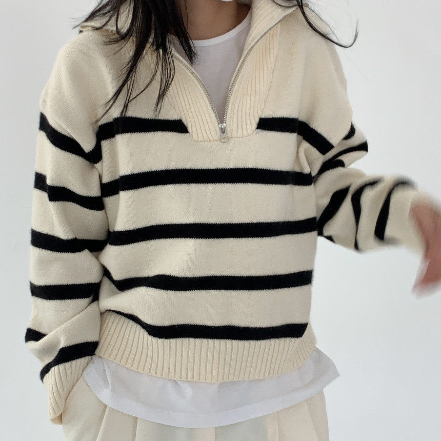 Демисезонная дизайнерская цепь с молнией, трикотажный лонгслив, нарукавники, свитер, в корейском стиле, оверсайз