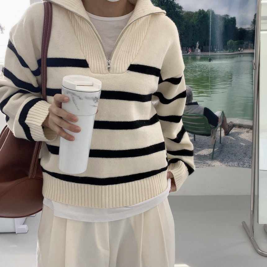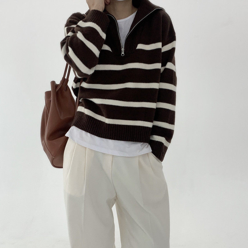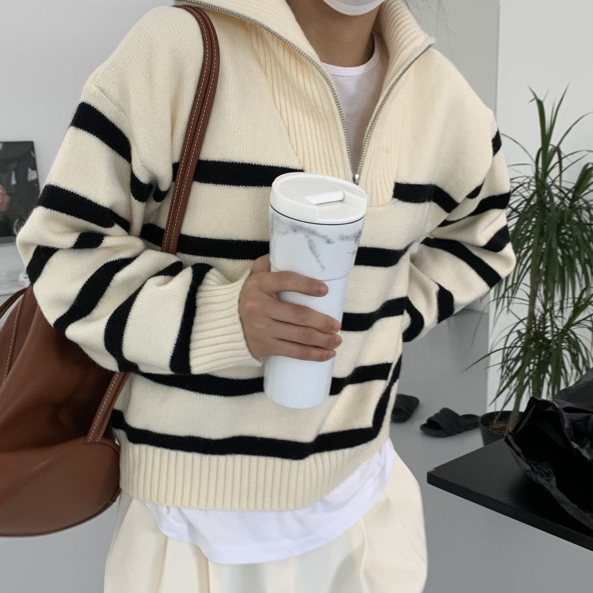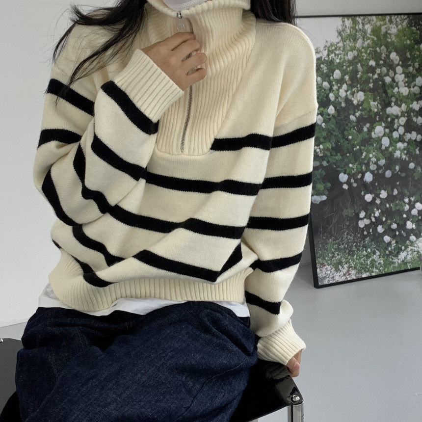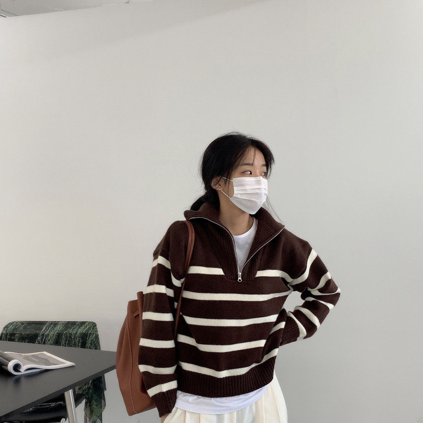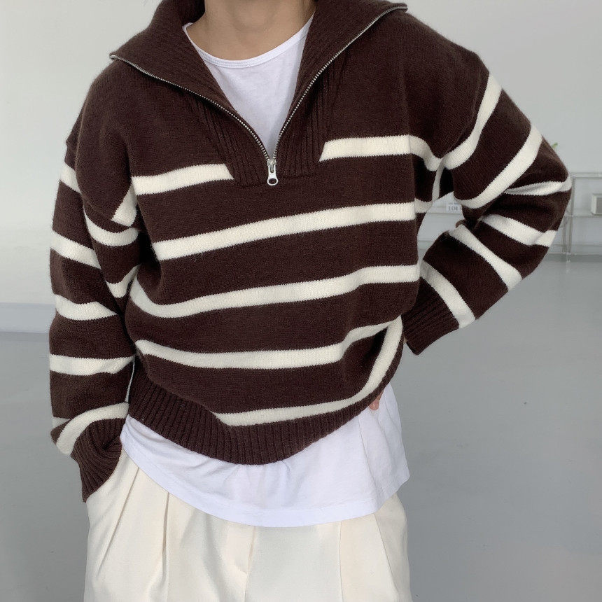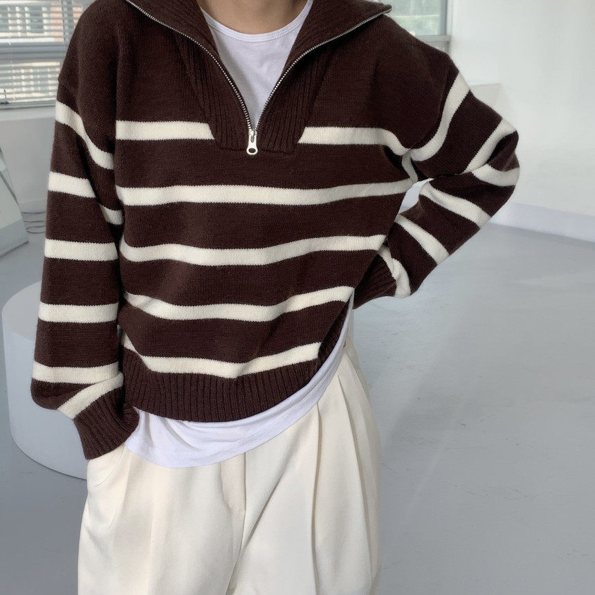 Демисезонная дизайнерская цепь с молнией, трикотажный лонгслив, нарукавники, свитер, в корейском стиле, оверсайз